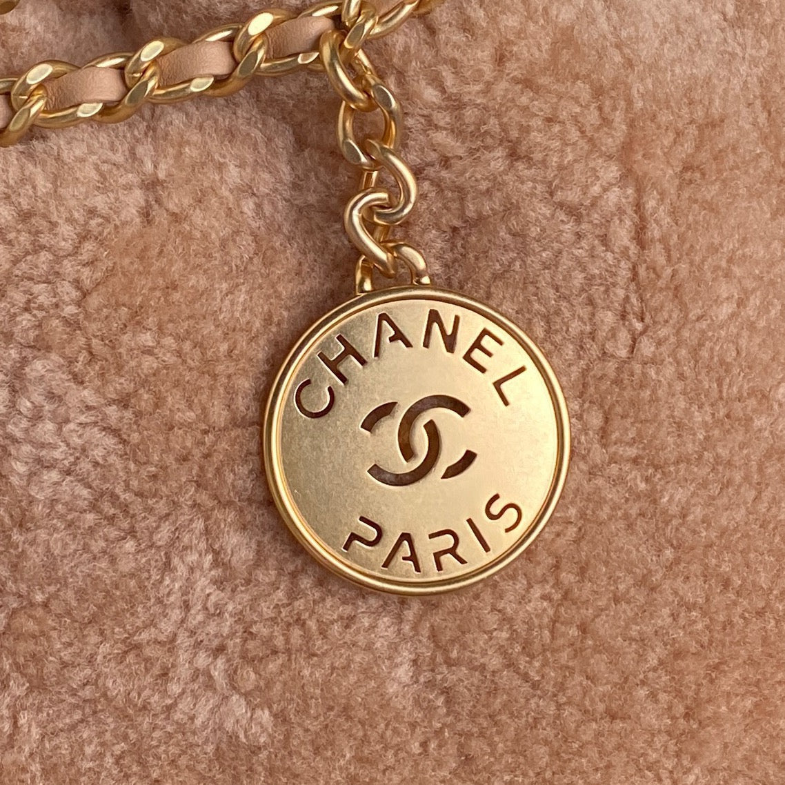 CHANEL 24K Hobo 22 Bag 20cm Brown Wool Fur