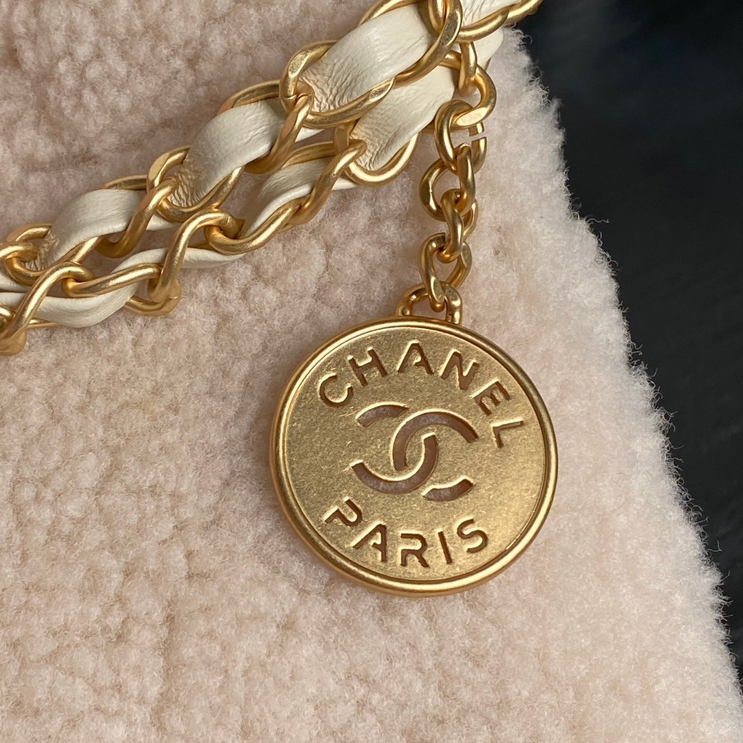 CHANEL 24K Hobo 22 Bag 35cm Beige Wool Fur