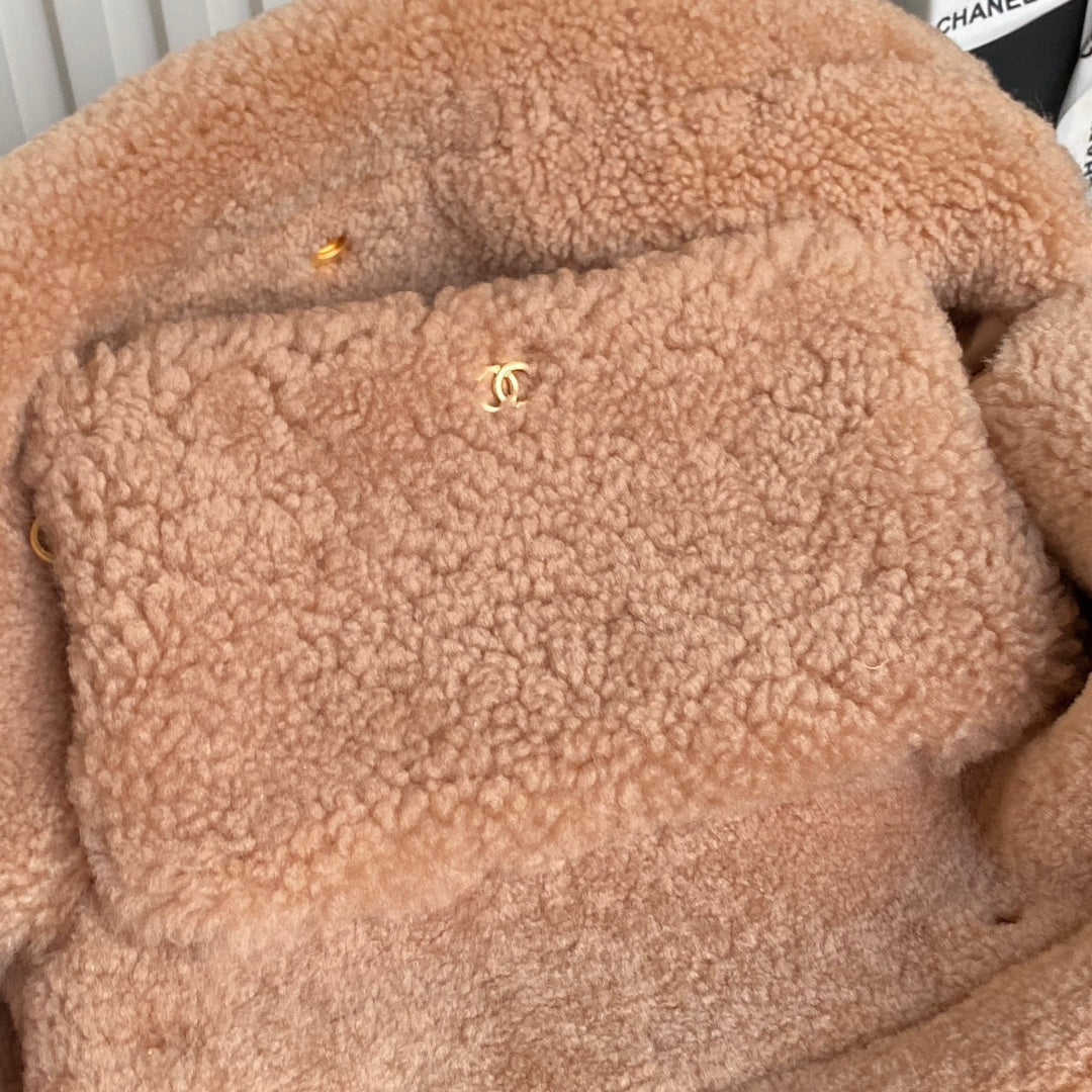 CHANEL 24K Hobo 22 Bag 39cm Brown Wool Fur