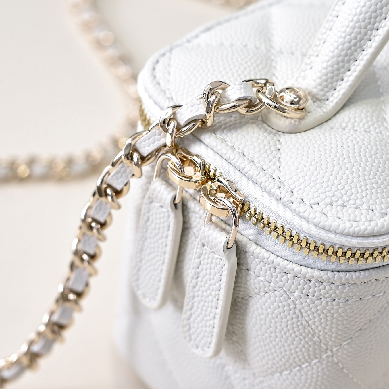 CHANEL 25C Vanity Top Handle 17cm White Grained Calfskin Light Gold Hardware