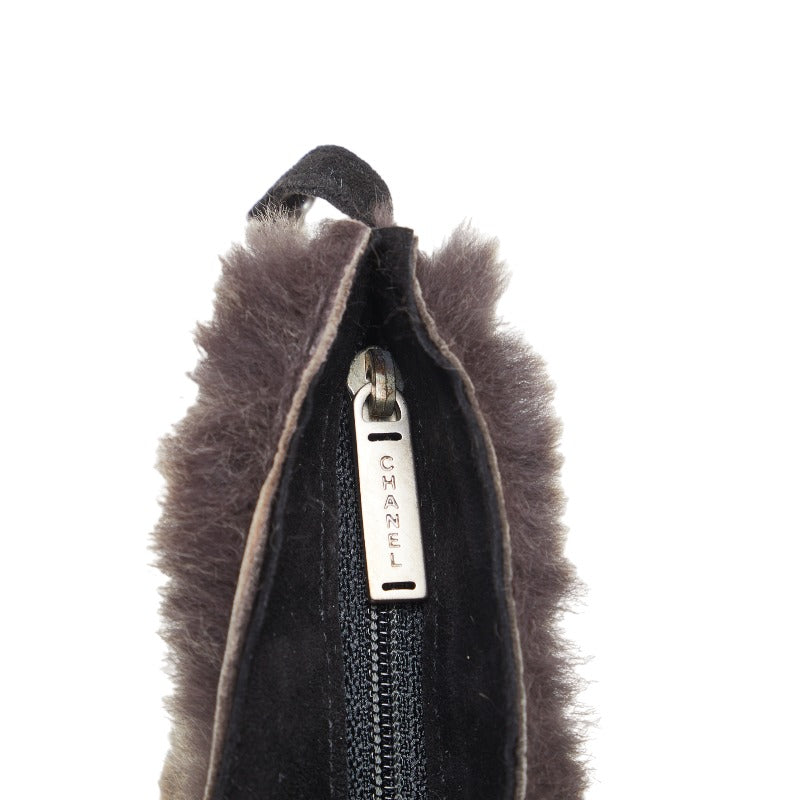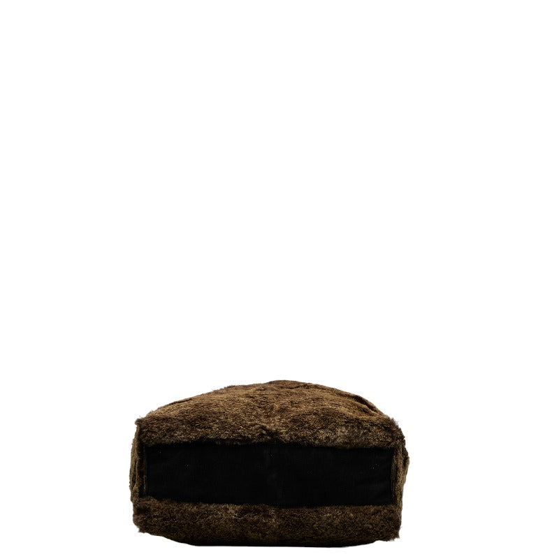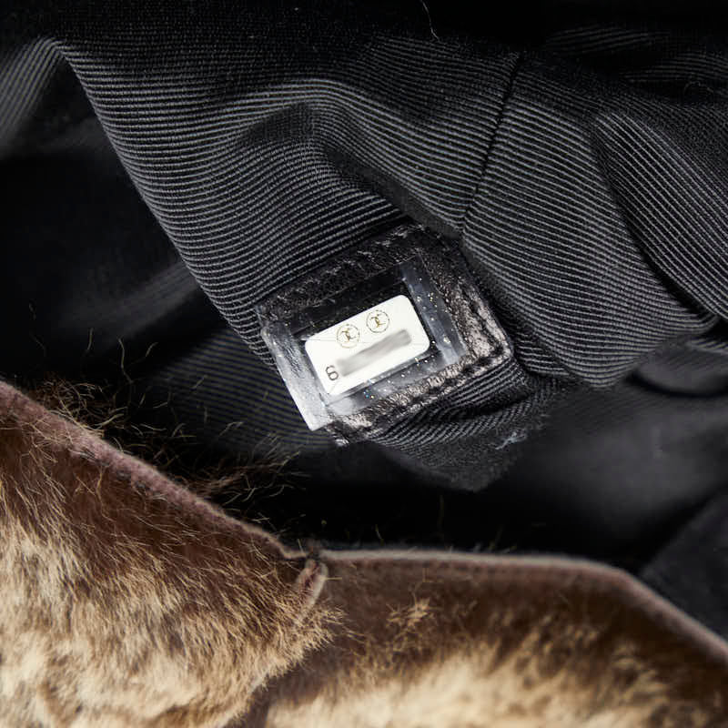 Chanel Coco Mark Rabbit Fur Handbag Tote Brown Black