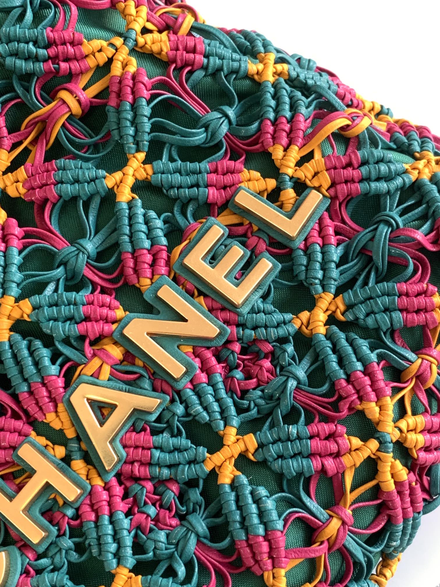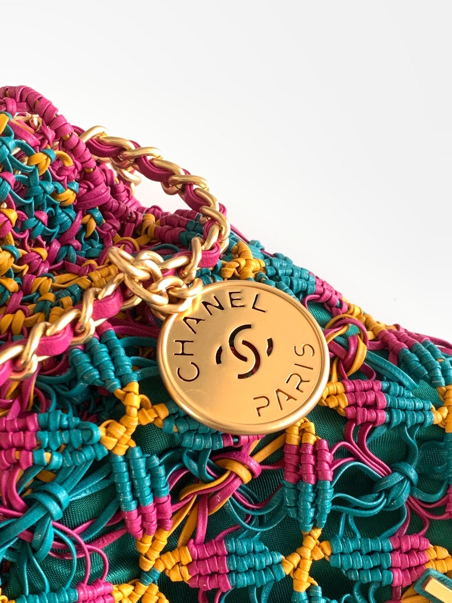 CHANEL Mini Macrame 22 Hobo Bag 19cm Multicolor Green Calfskin Gold Hardware