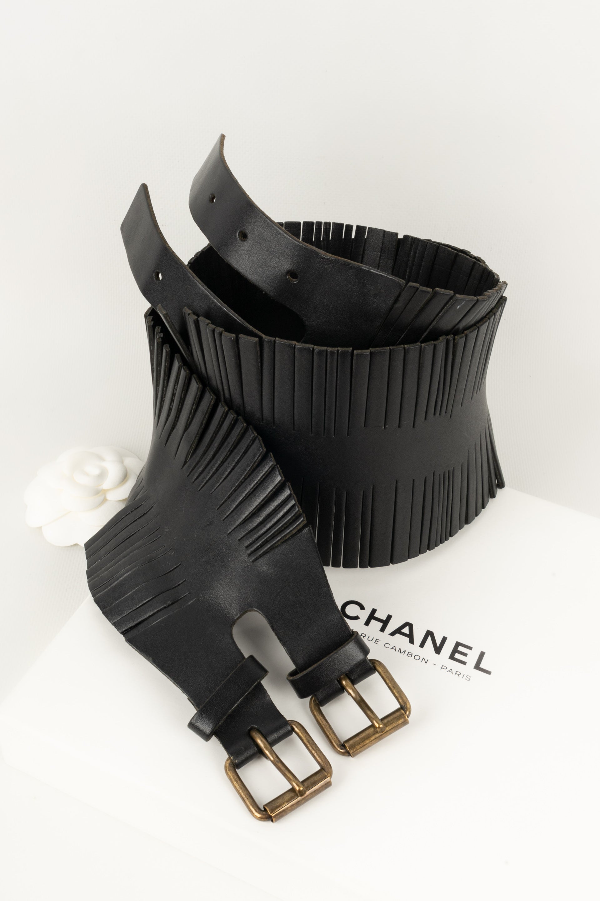 CHANEL - (Made in France) Ceinture en cuir et mtal dor fonc. Taille indique 90/36. Collection Automne-Hiver 1999.