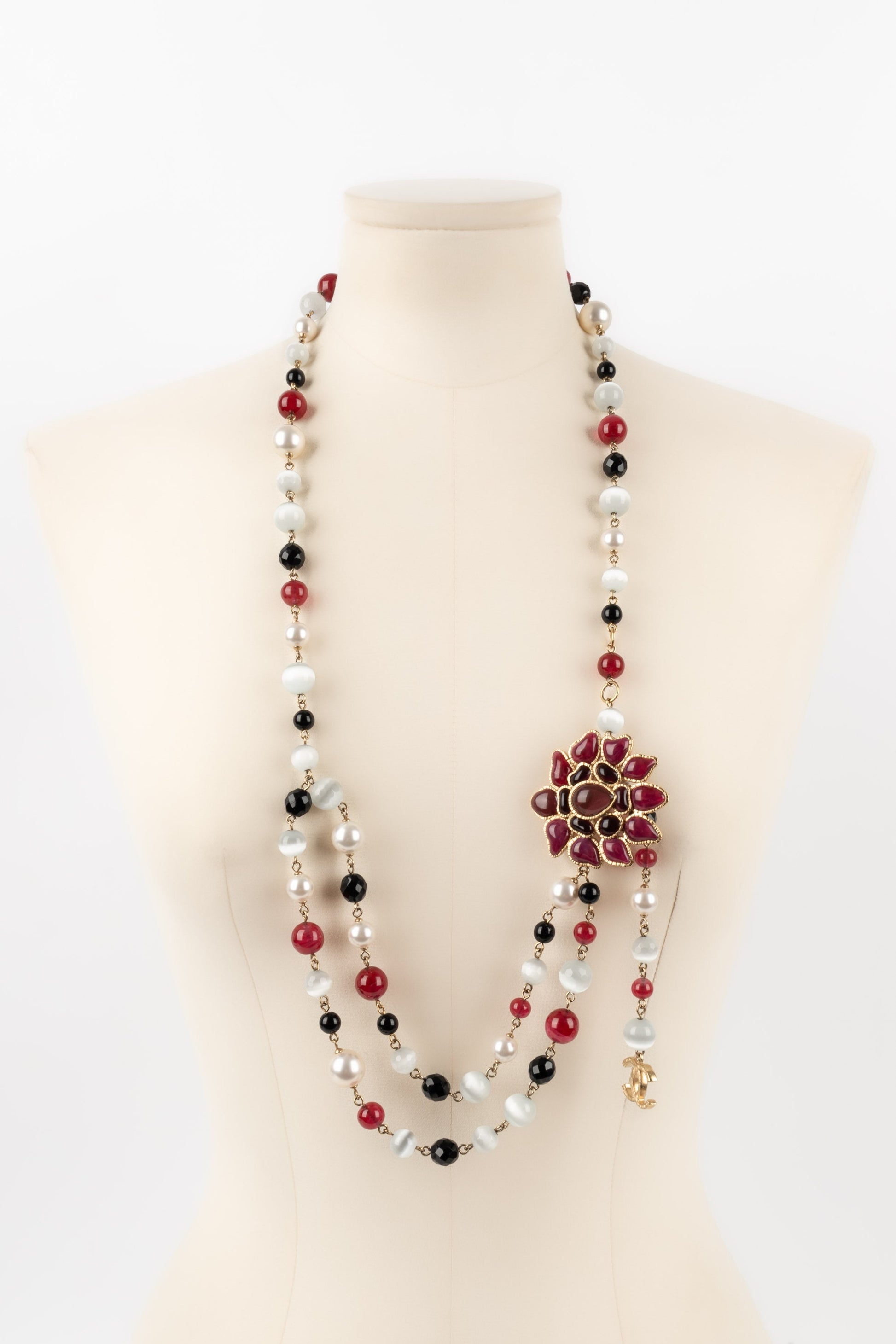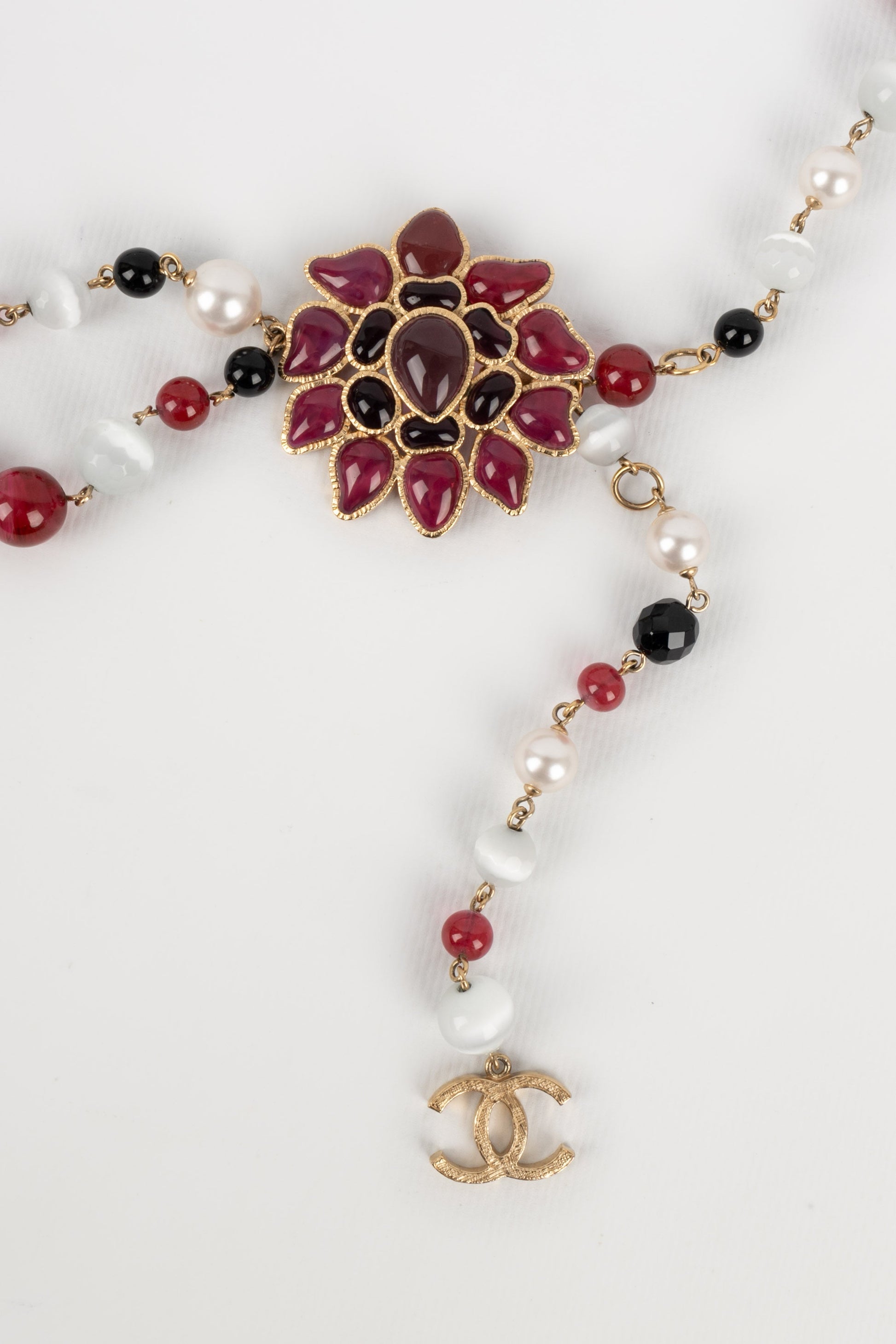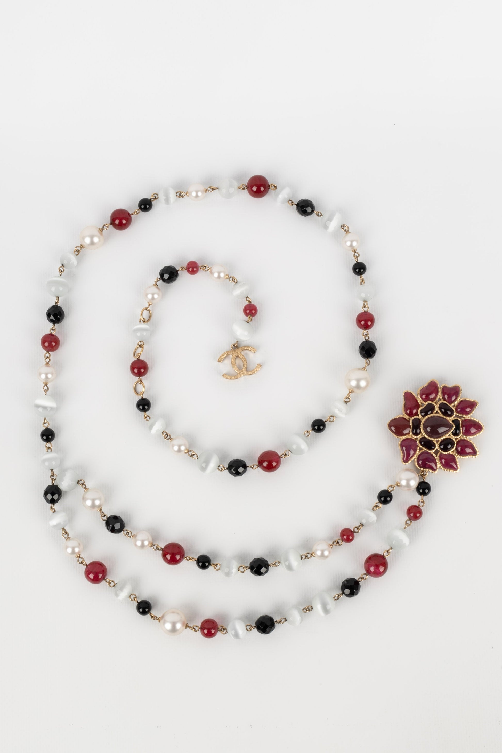CHANEL - (Made in France) Ceinture de perles fantaisies et sa boucle fleur en pte de verre. Collection Automne-Hiver 2007.