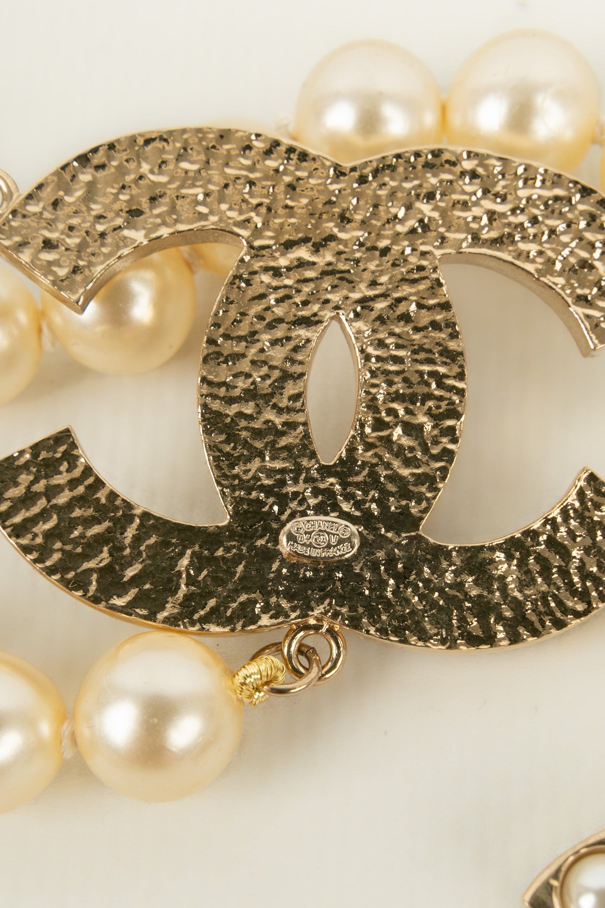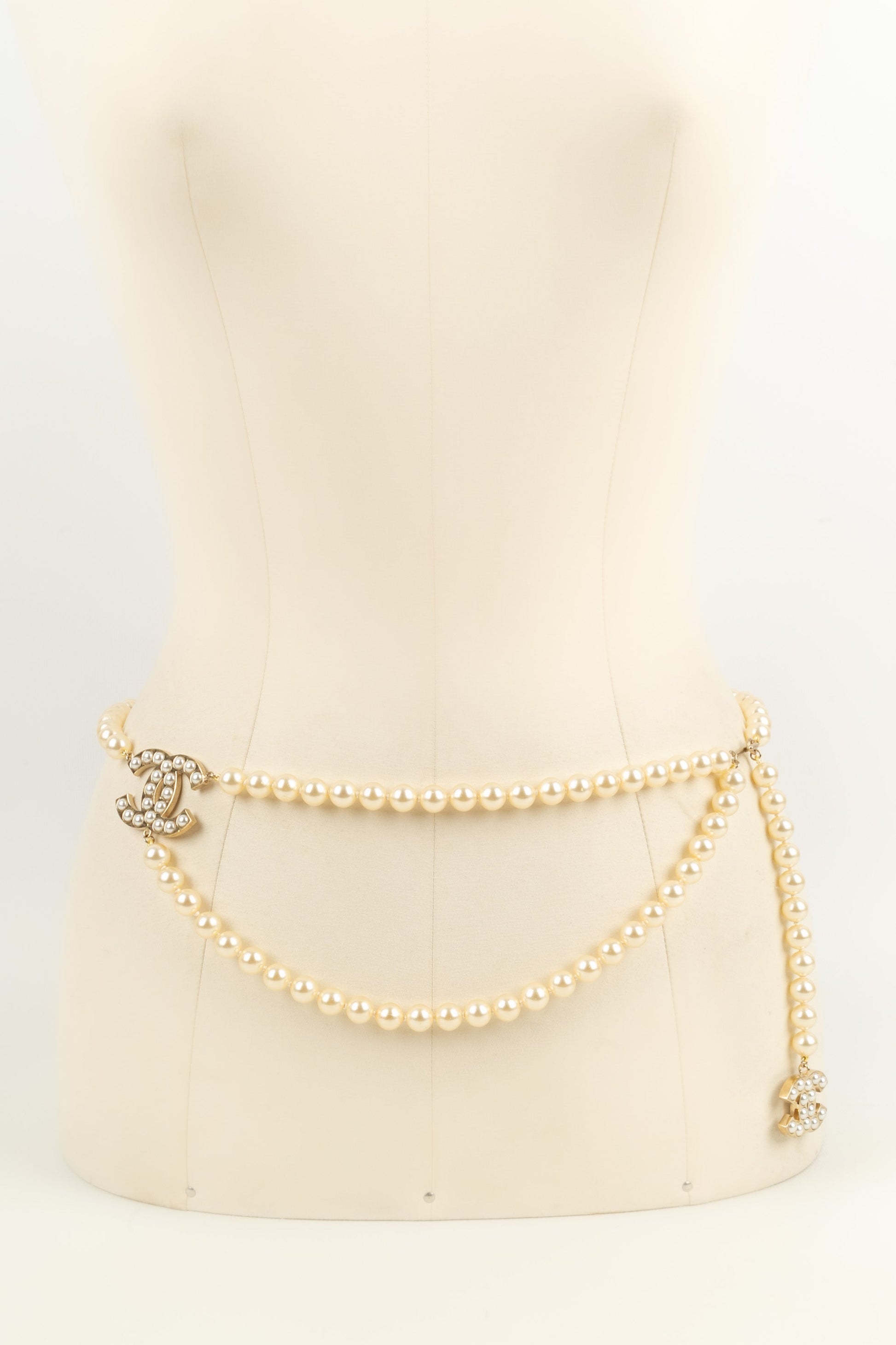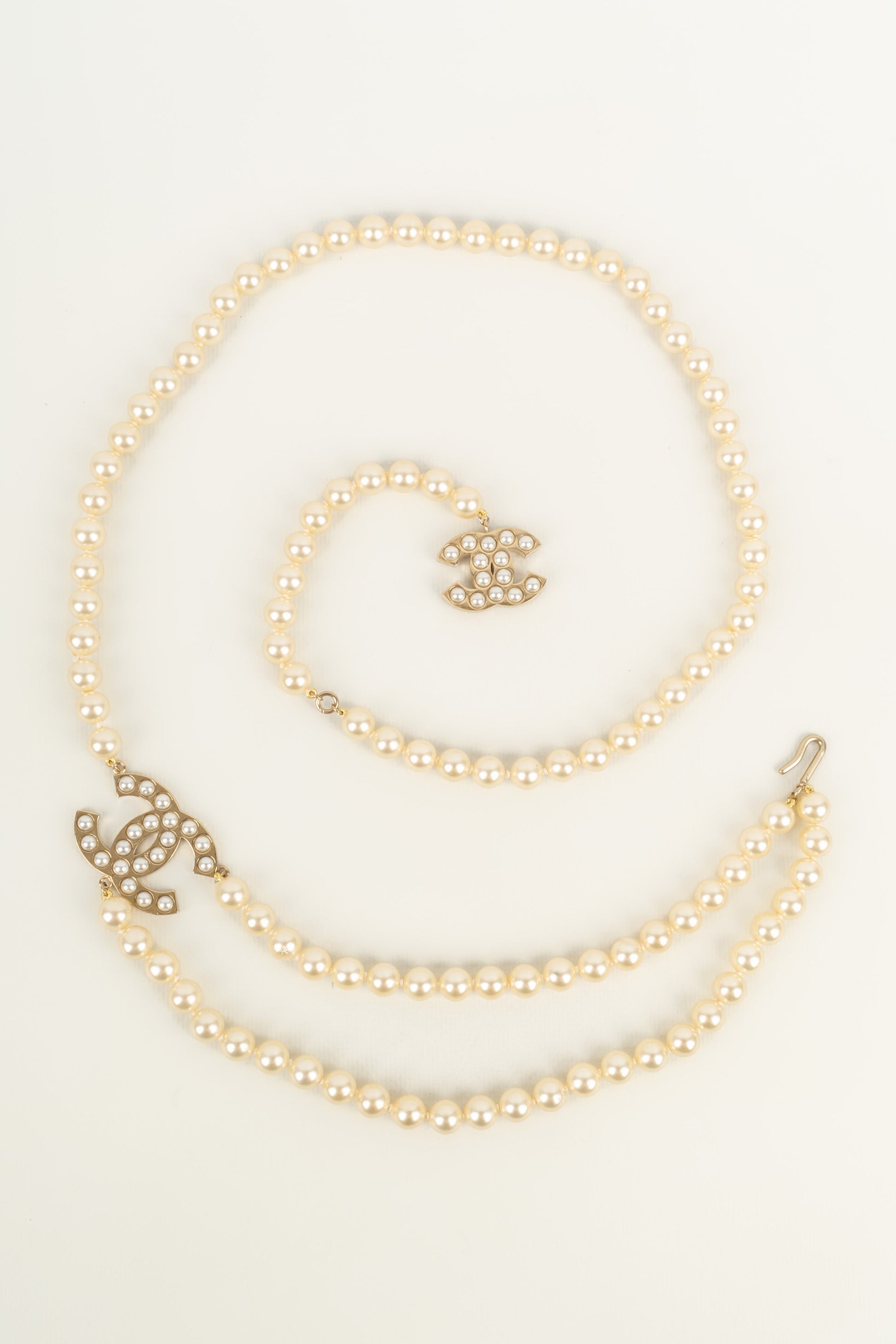 CHANEL - (Made in France) Ceinture de perles nacres et logos cc pavs de petits cabochons. Collection 2004.