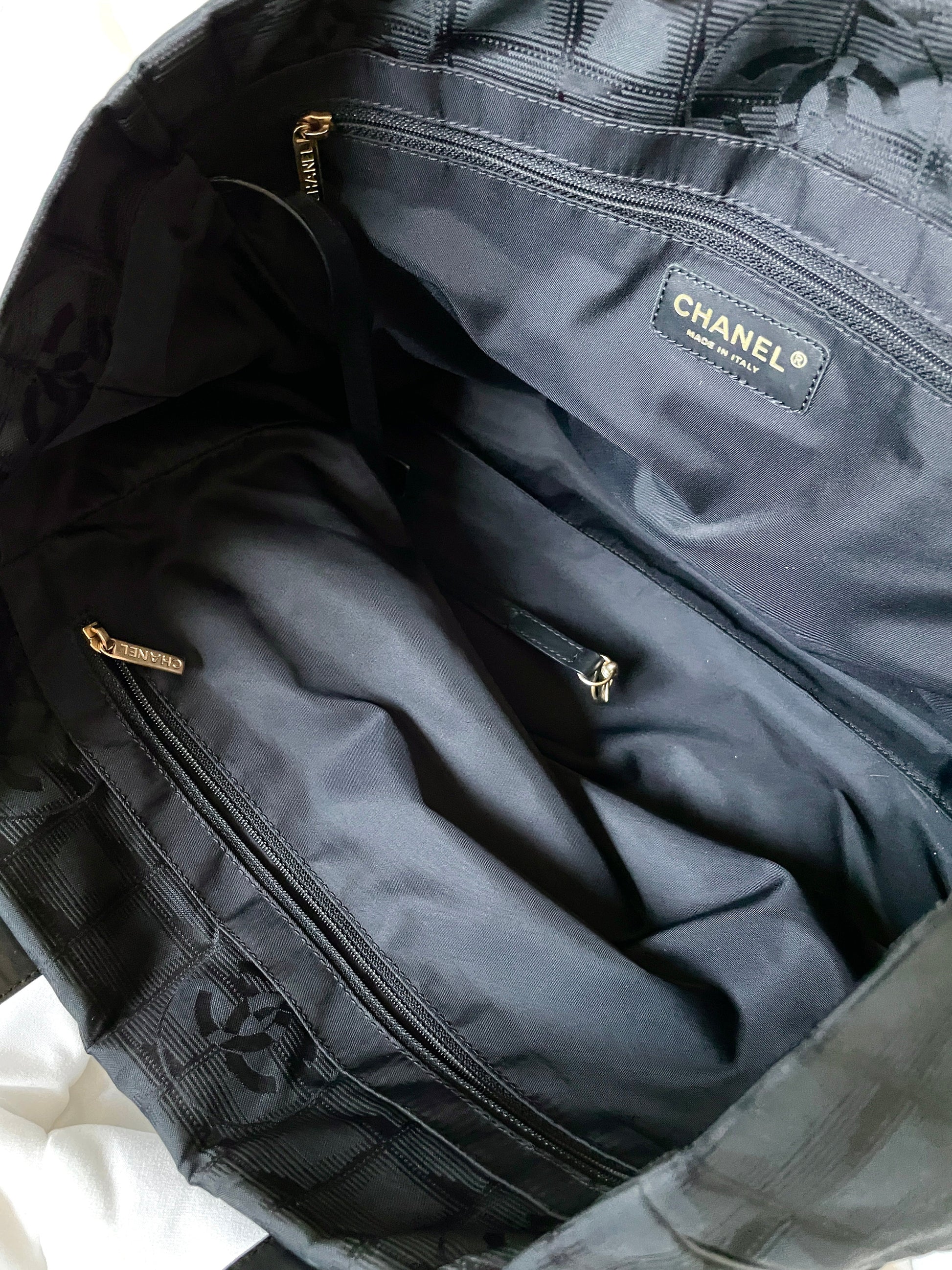 A beautiful Chanel tote crafted in a jacquard canvas with the iconic CC's around the entirety of the tote. Large size allows for maximum storage.