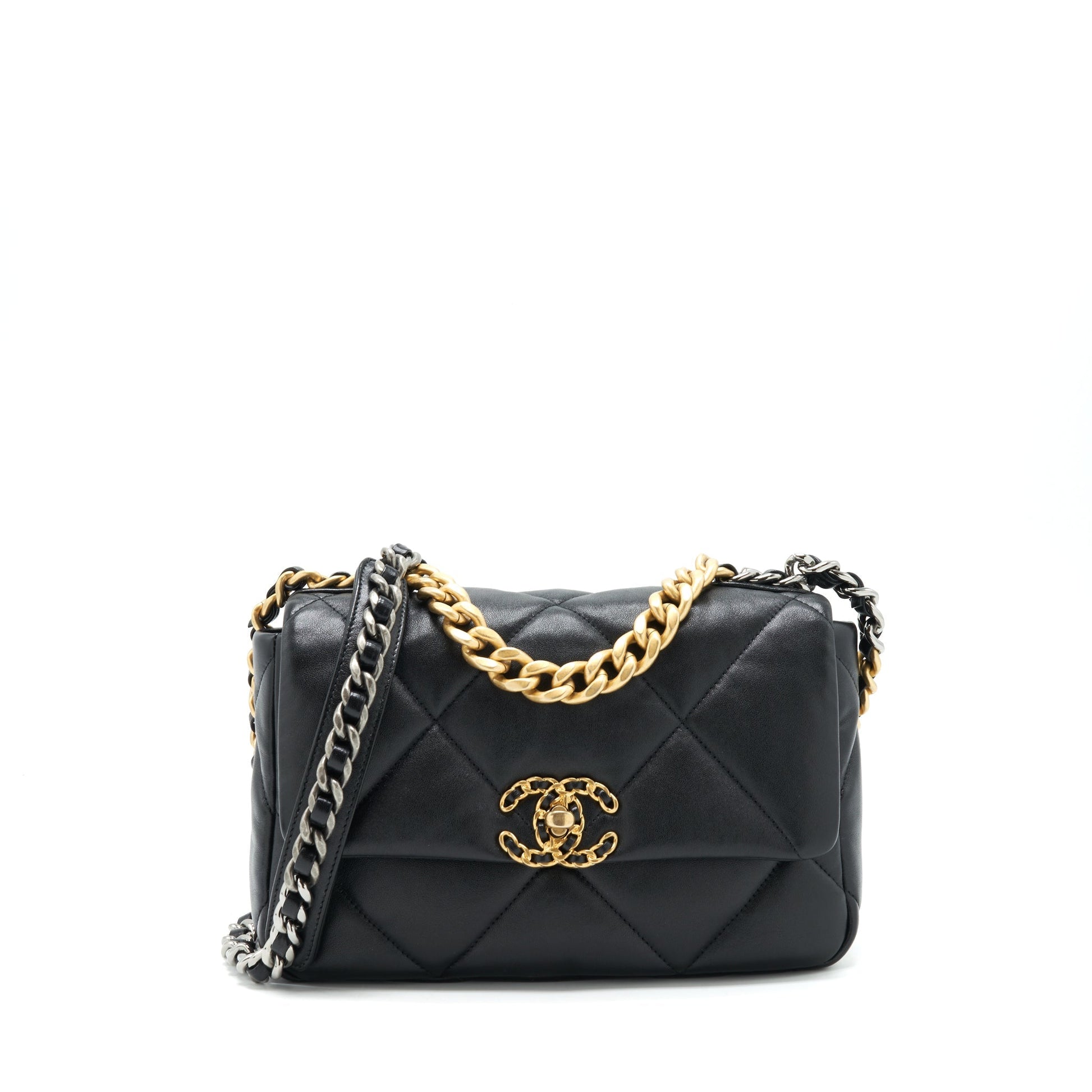 Chanel 19 flap Bag Small Lambskin Black Gold/Sliver Hardware