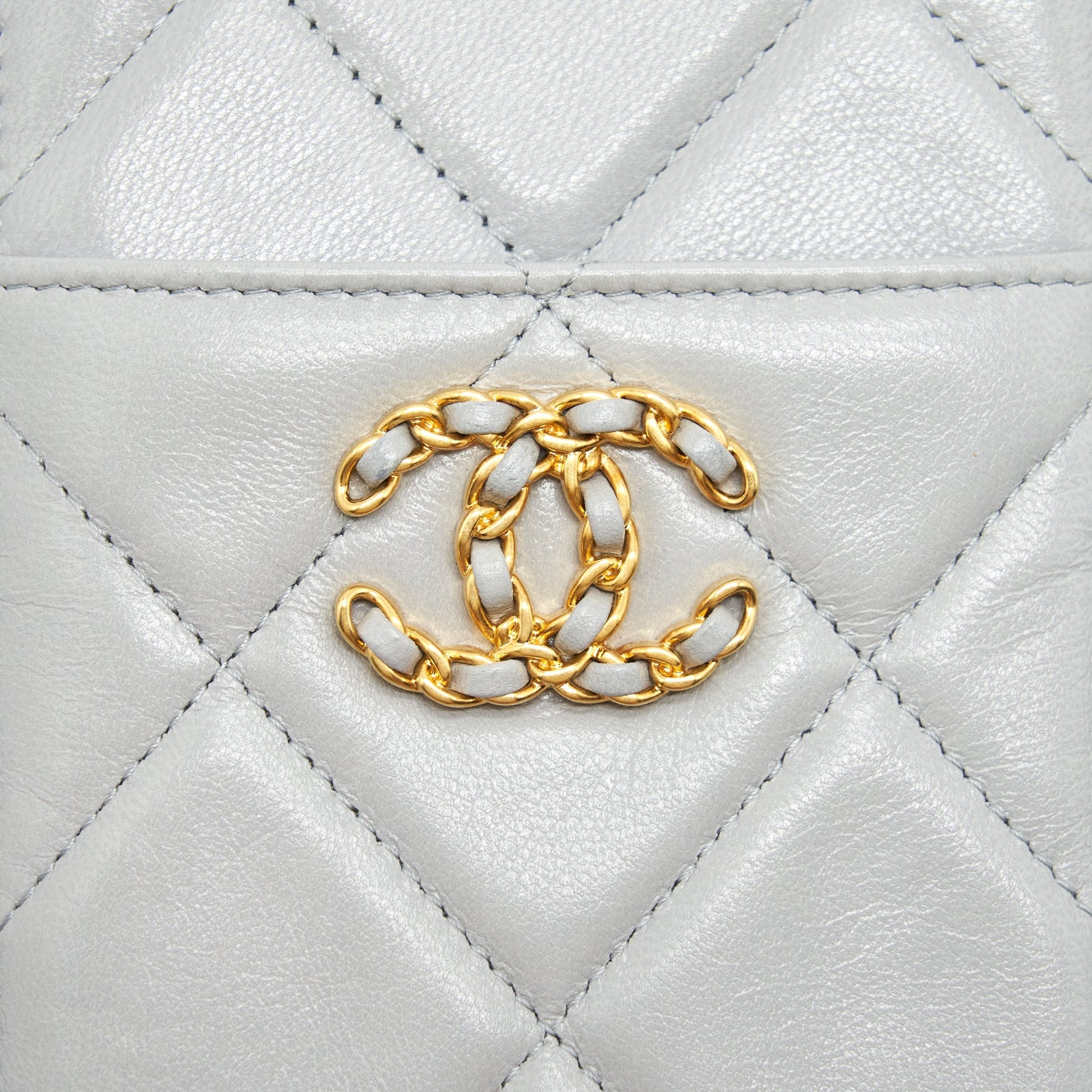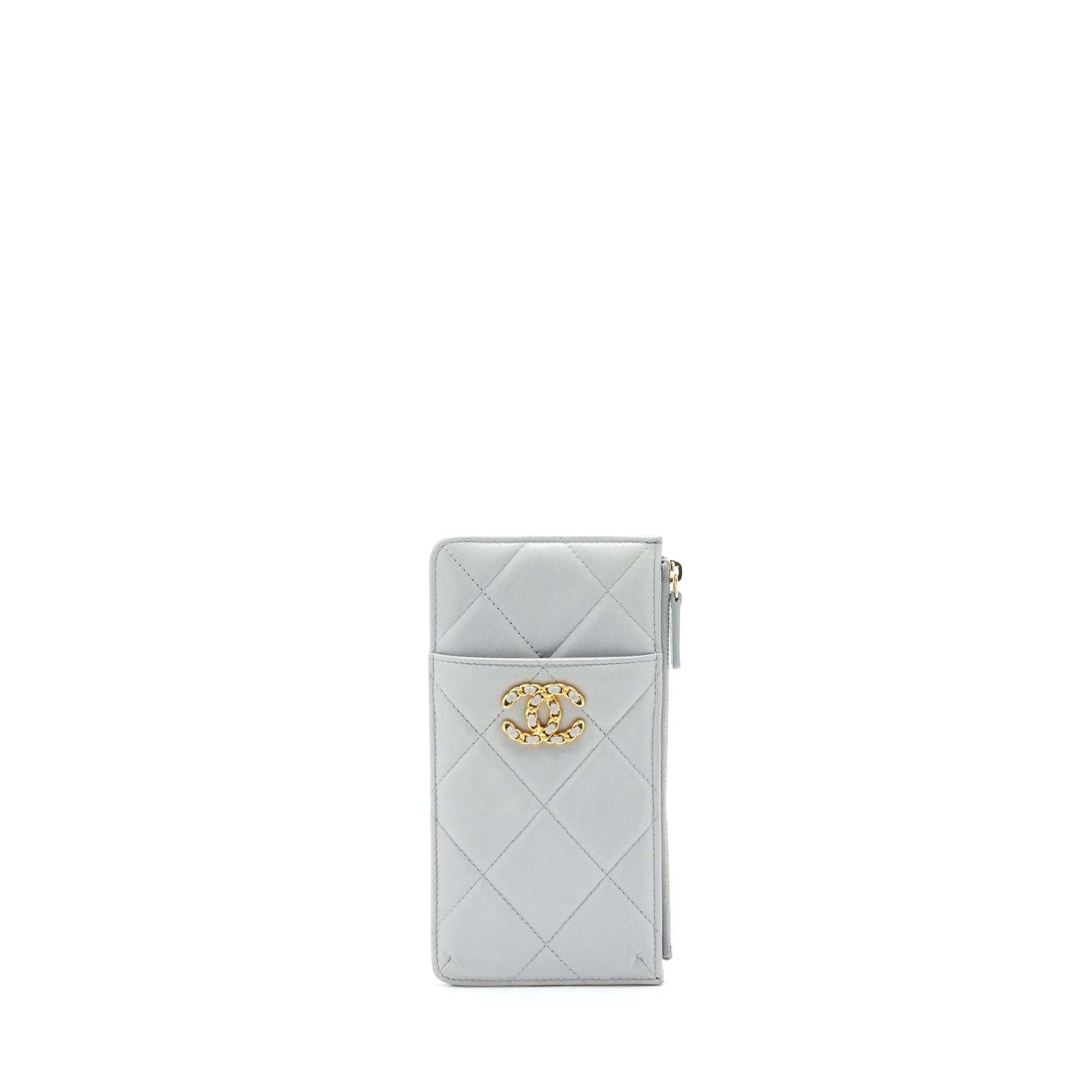 Chanel 19 Phone And Card Holder Small pouch Lambskin Grey GHW