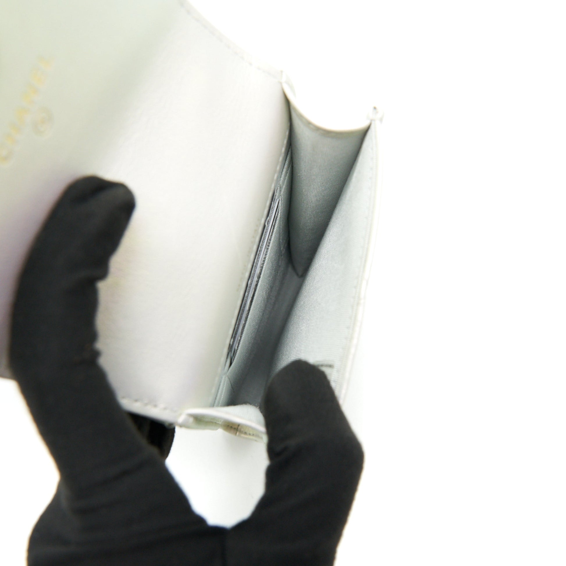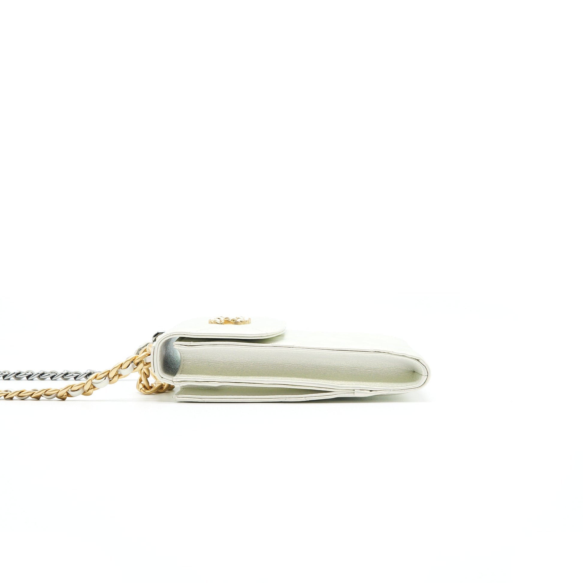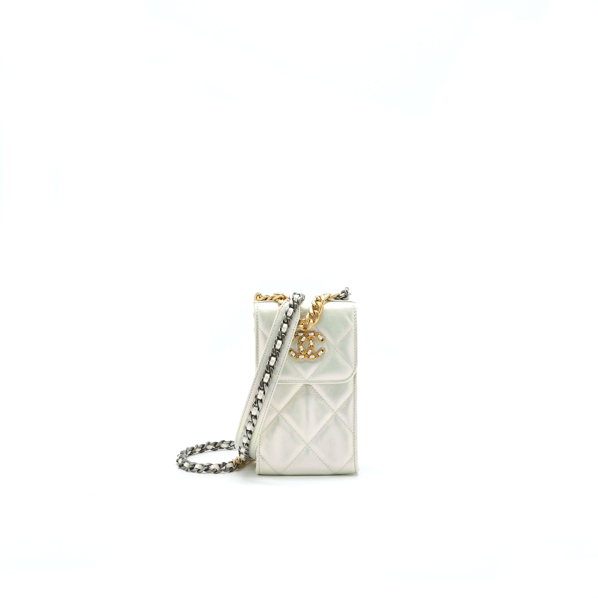 Chanel 19 Phone case with Chain iridescent White