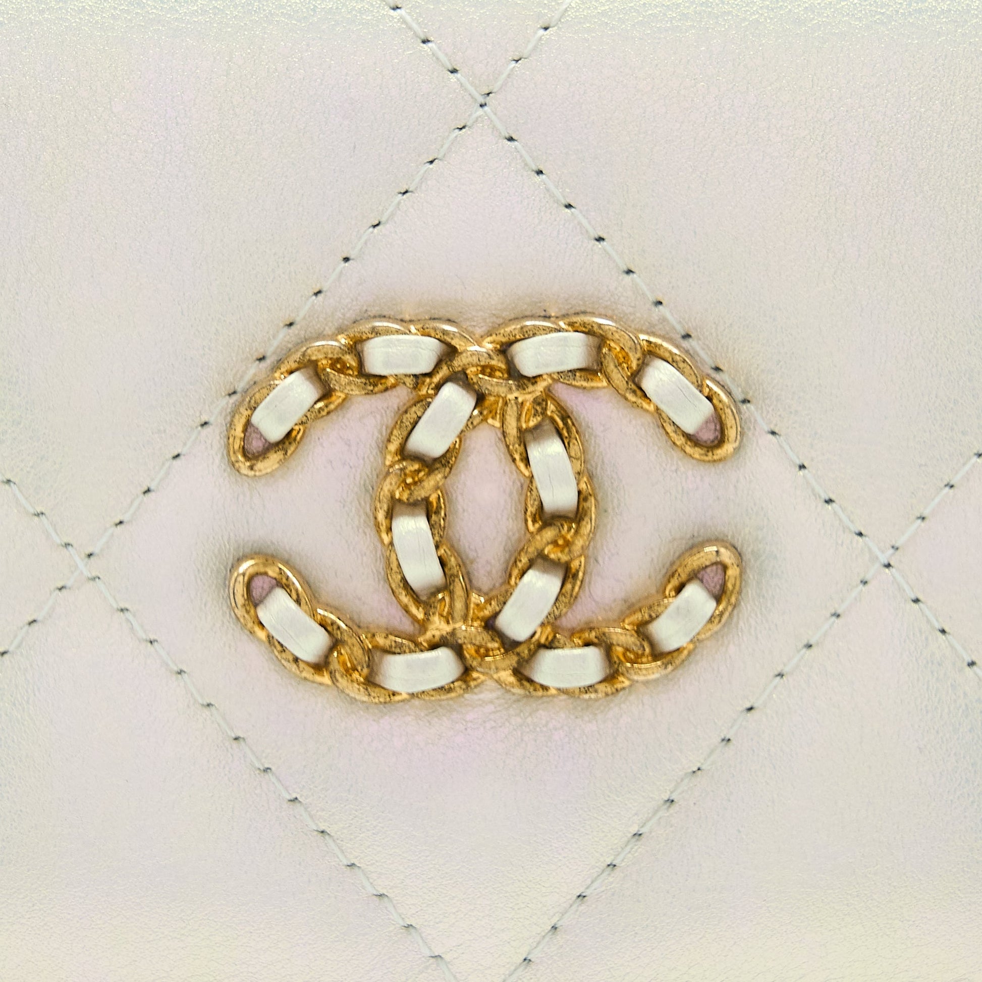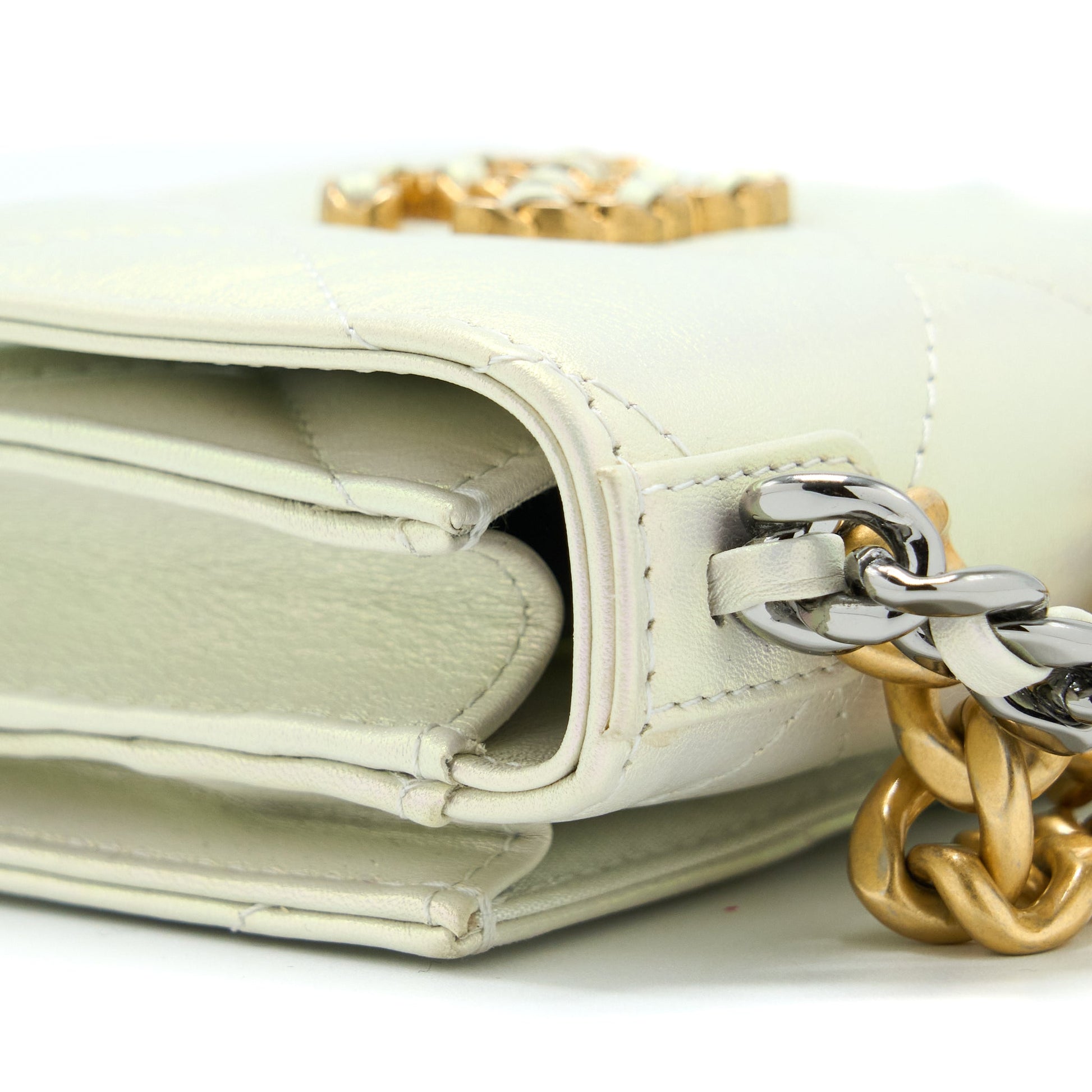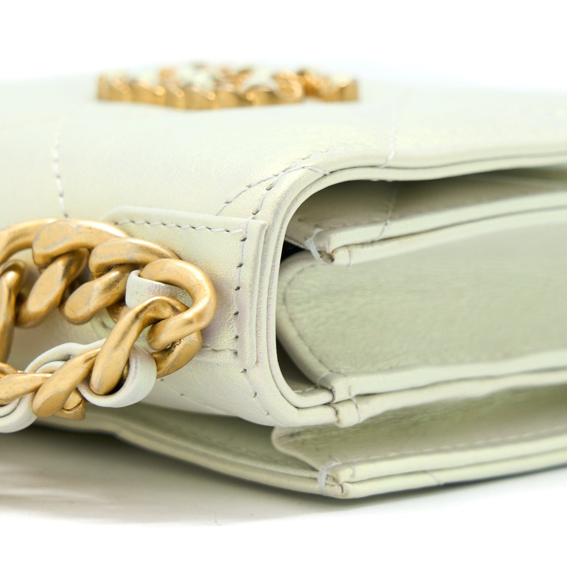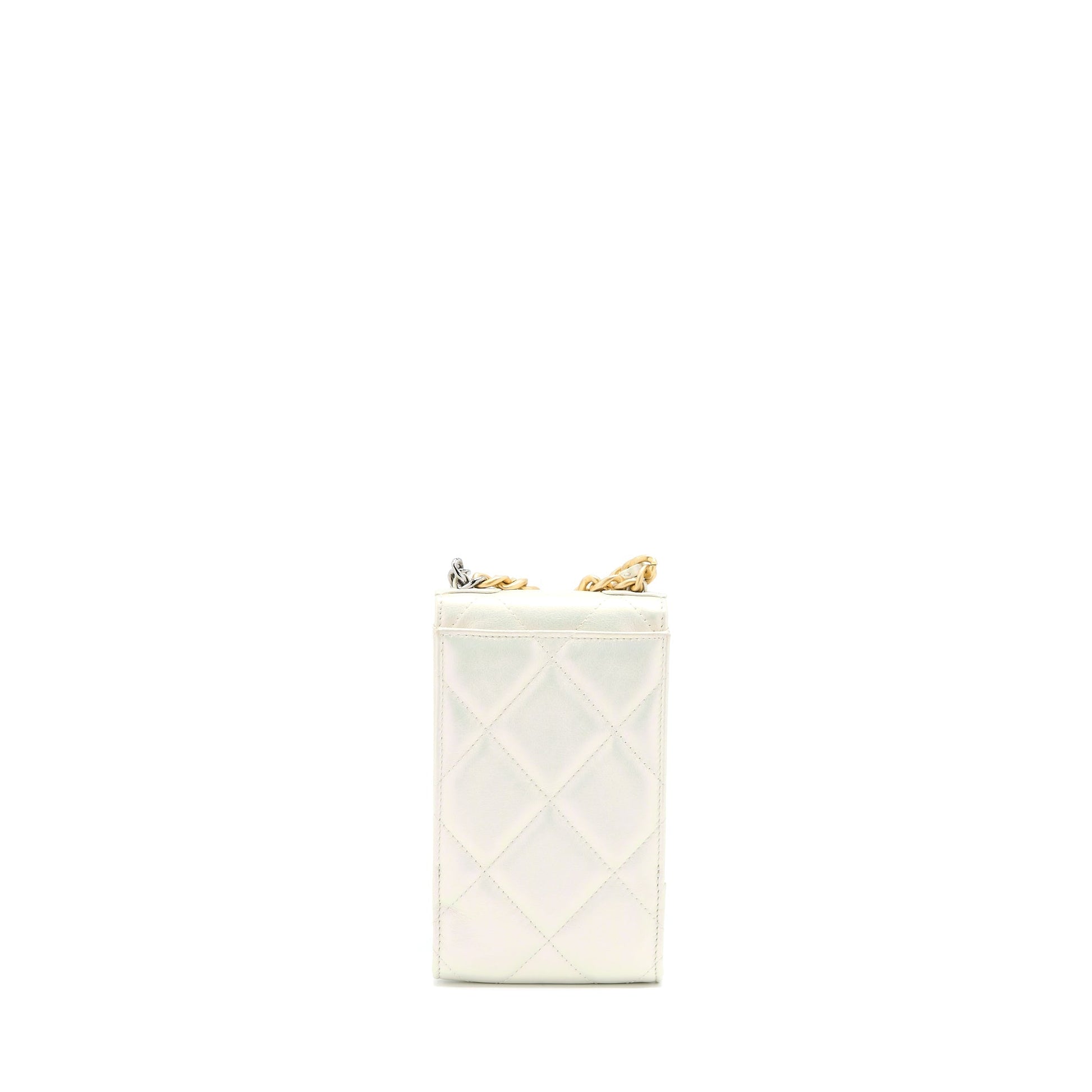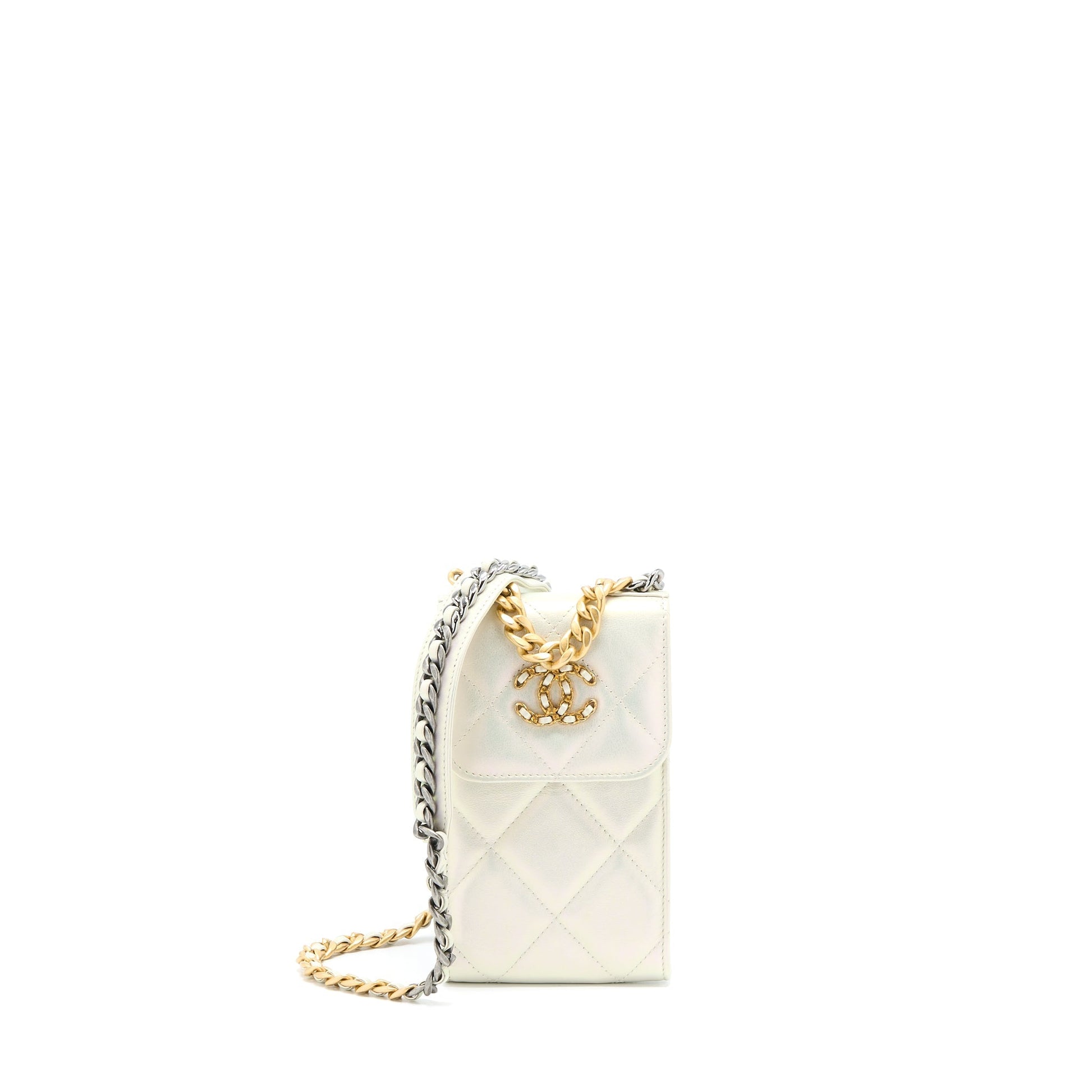 Chanel 19 Phone Pouch With Chain Iridescent White GHW