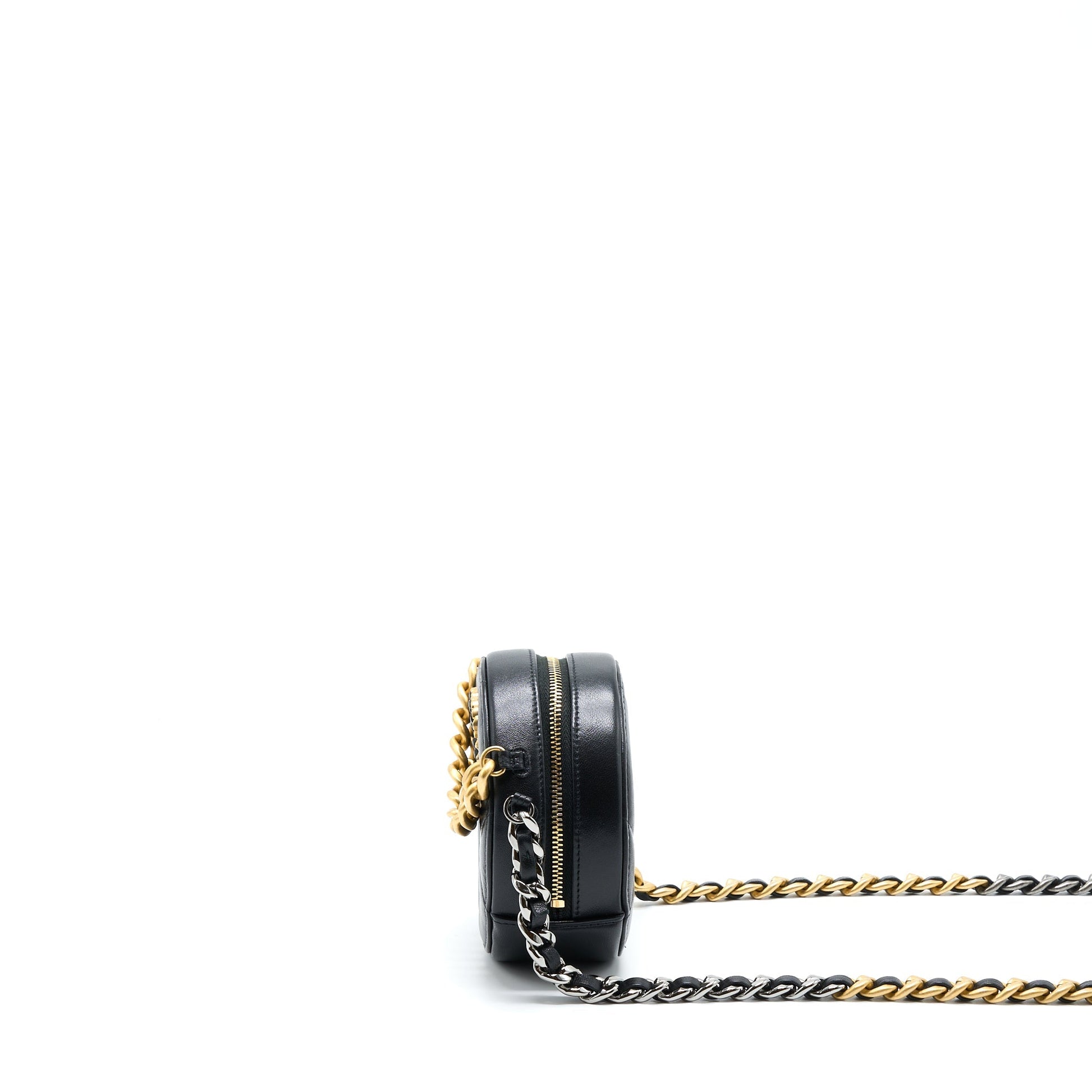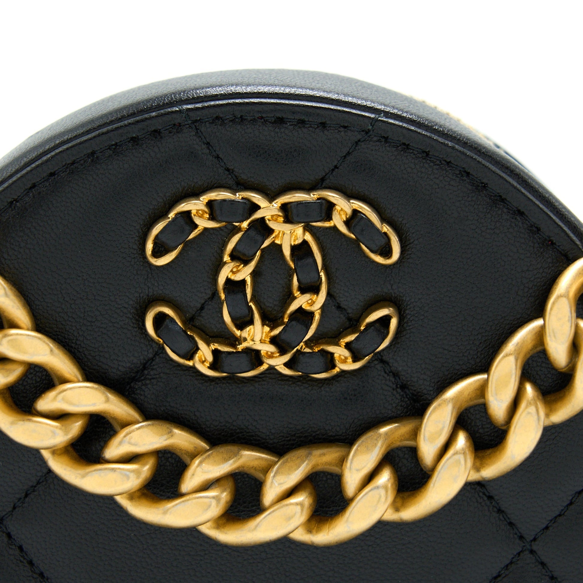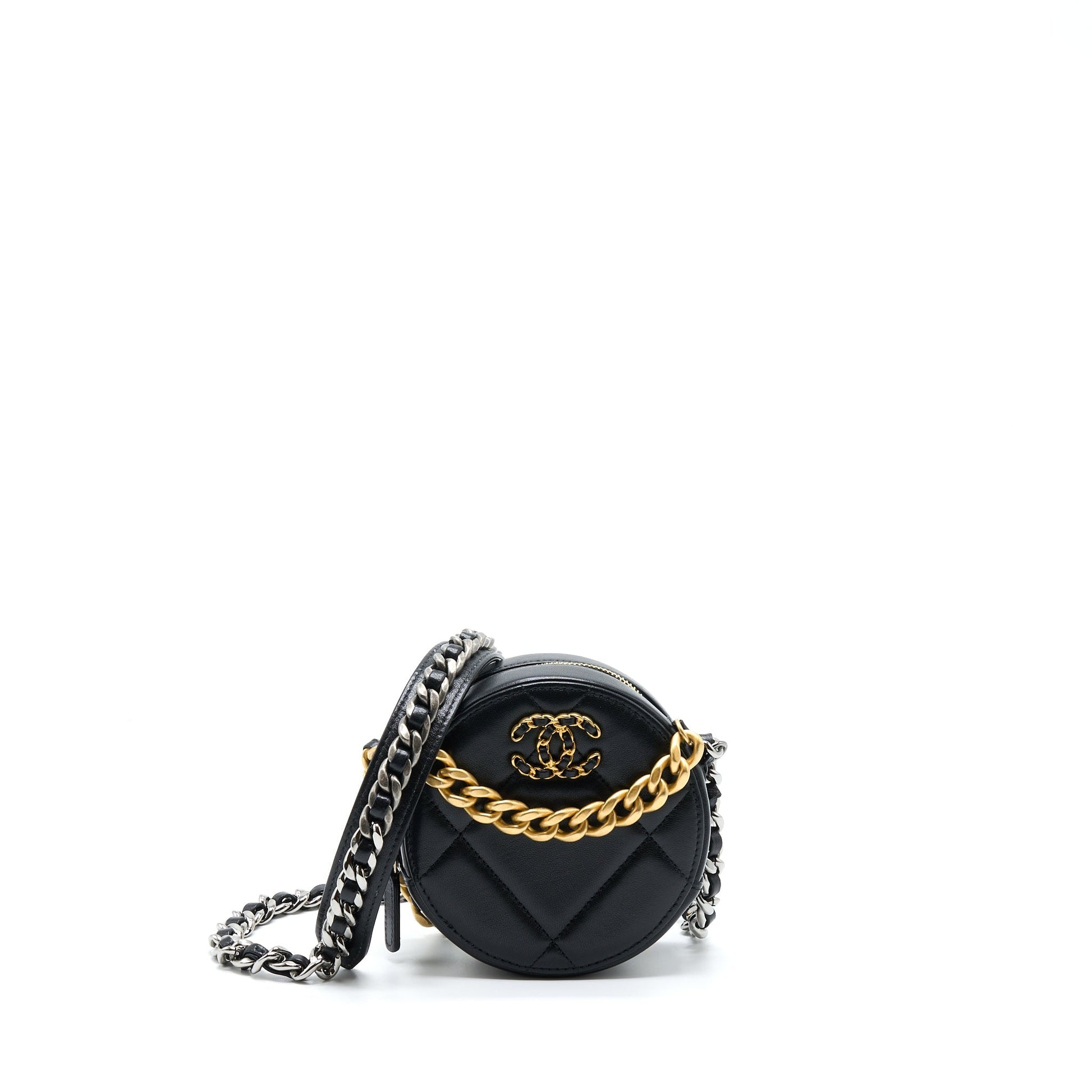 Chanel 19 Round Clutch With Chain Lambskin Gold/Silver Hardware