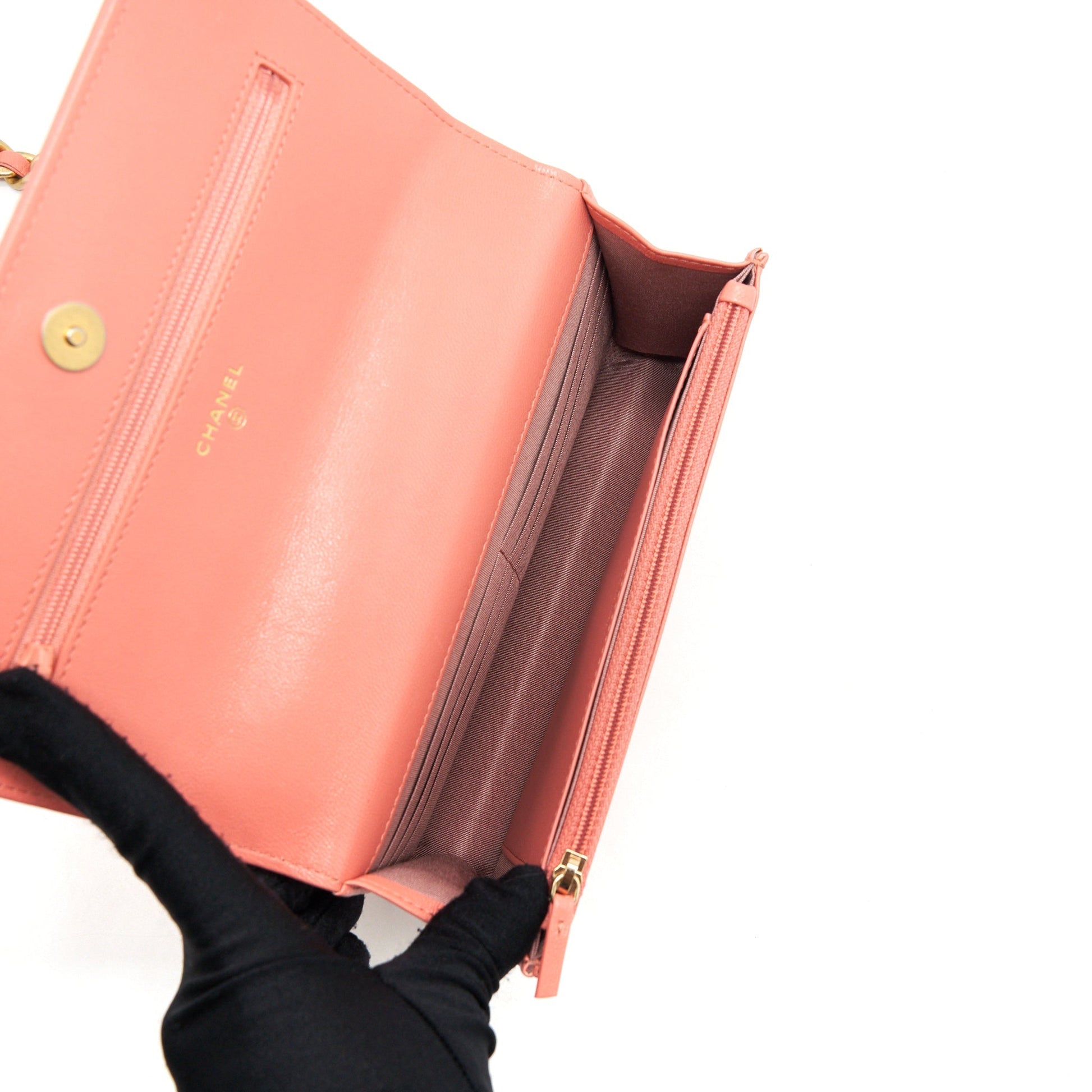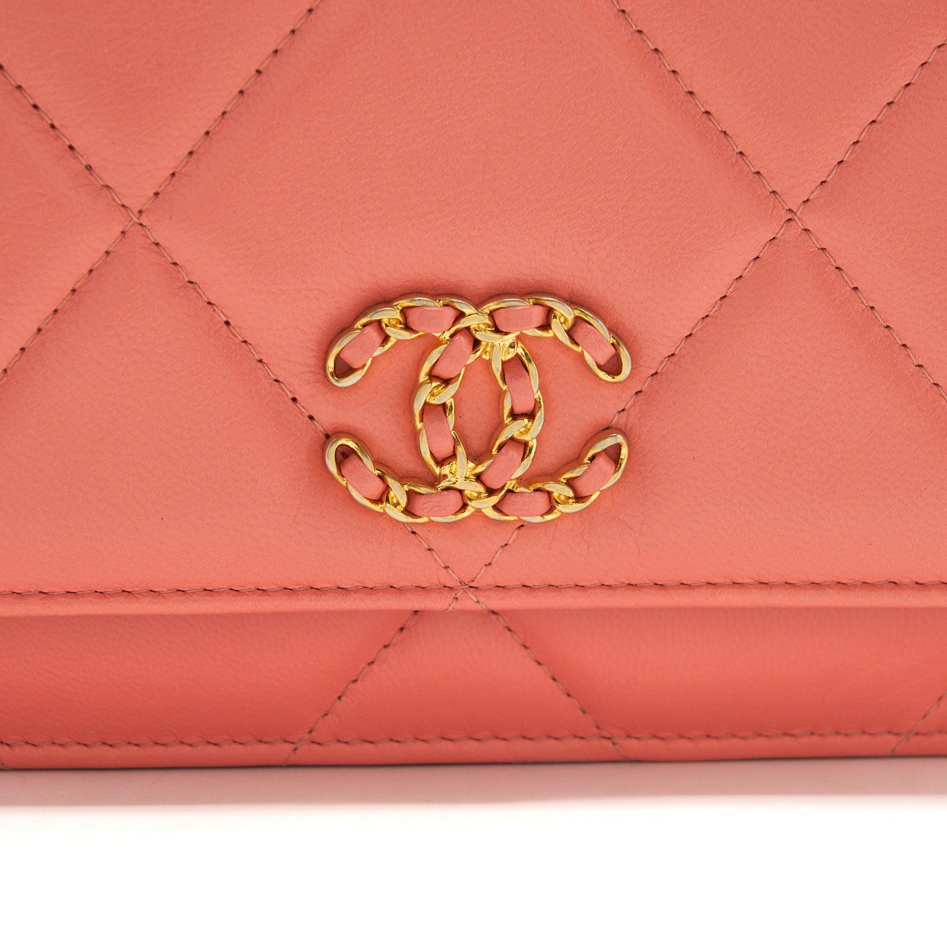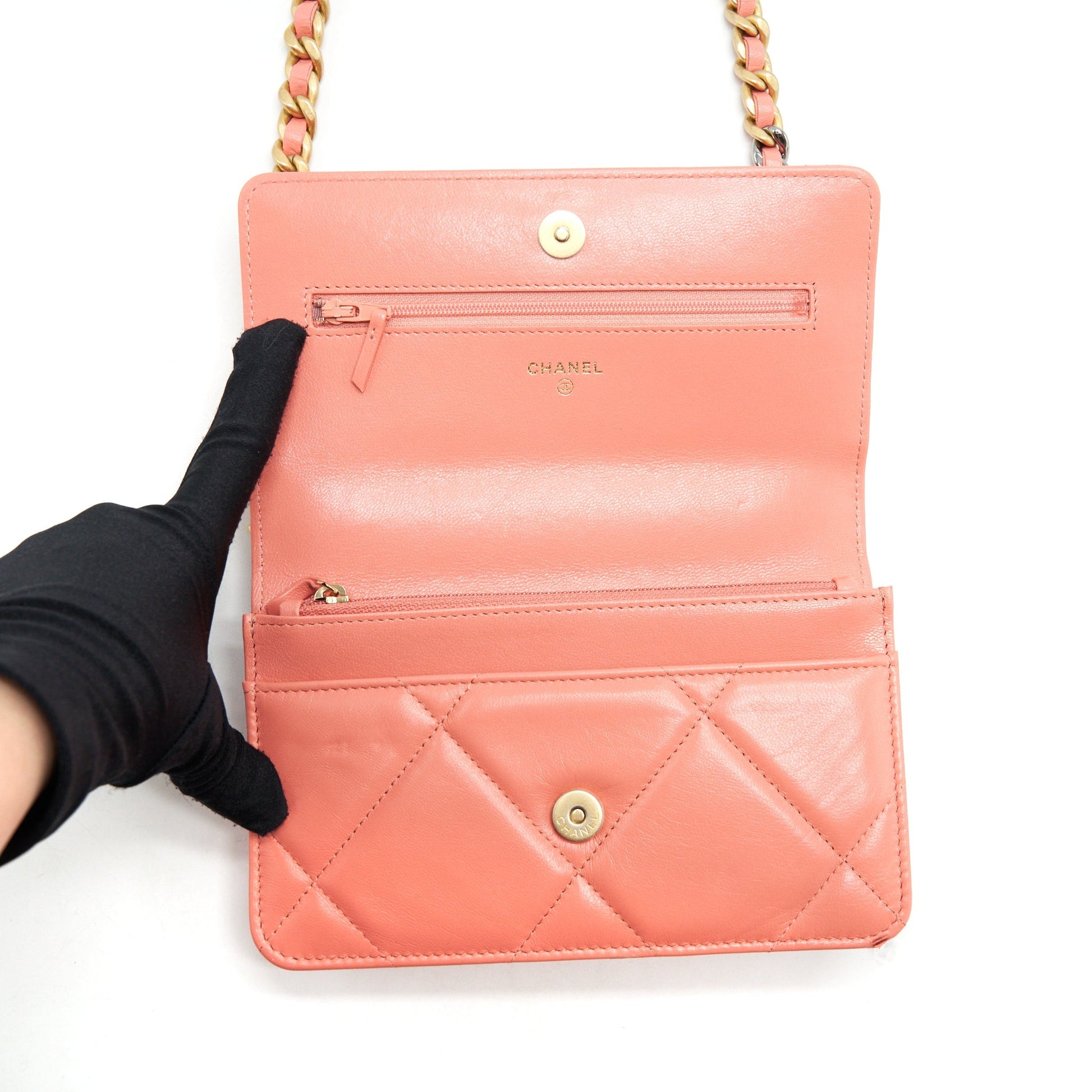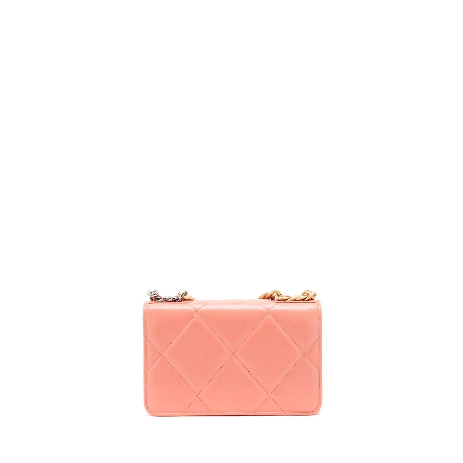 Chanel 19 Wallet on chain Goatskin Pink with Gold and silver hardware