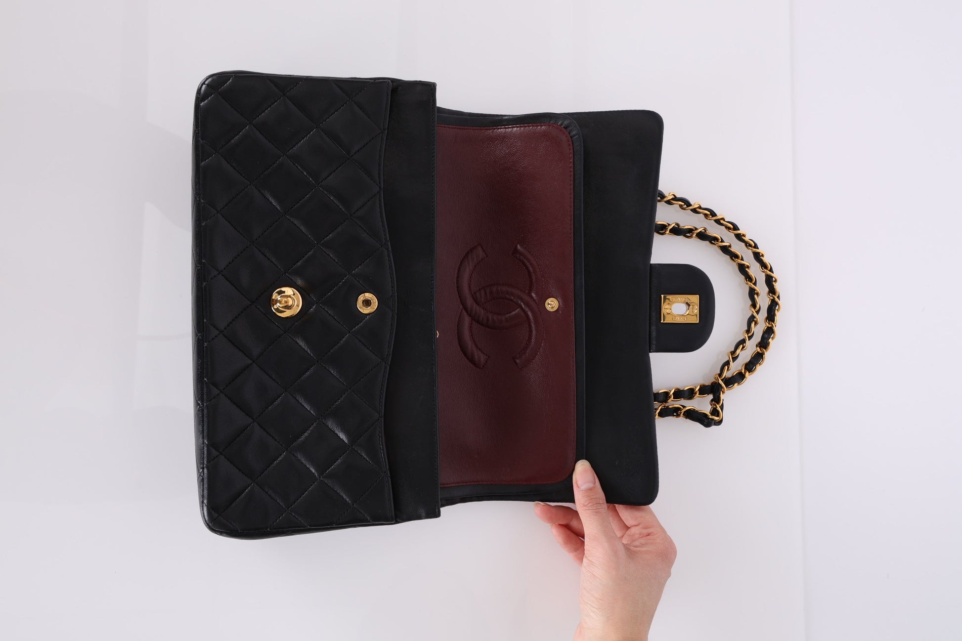 Dropping in the shop is a stunning, soft classic Chanel Lambskin Medium Double Flap in black with gold hardware! An New investment piece that can be loved for years to come. Don't miss out on this gorgeous find!