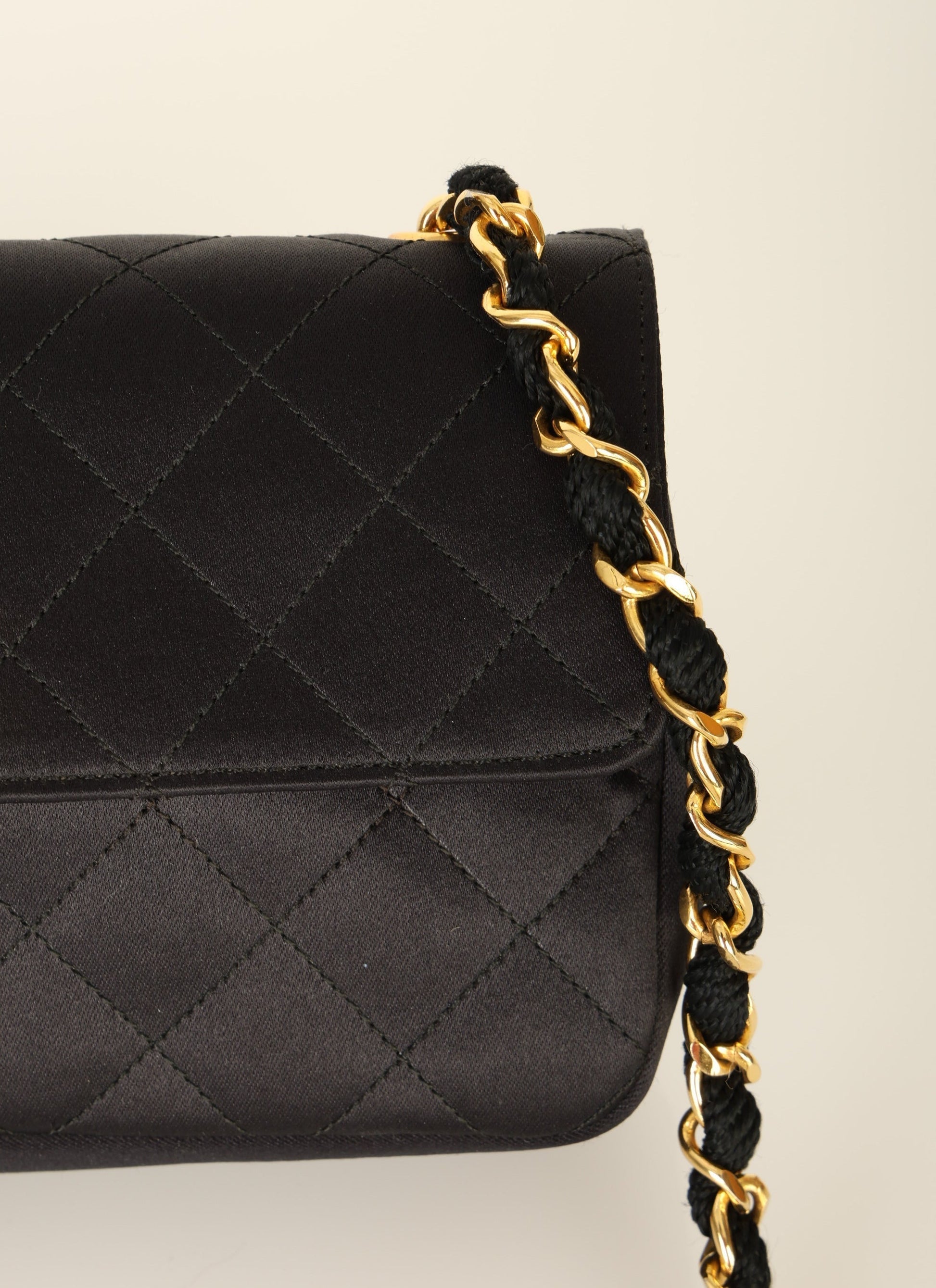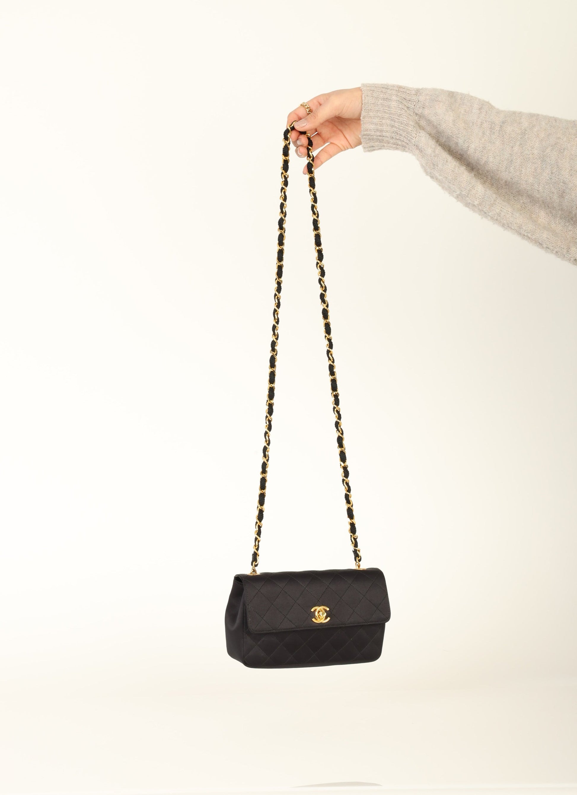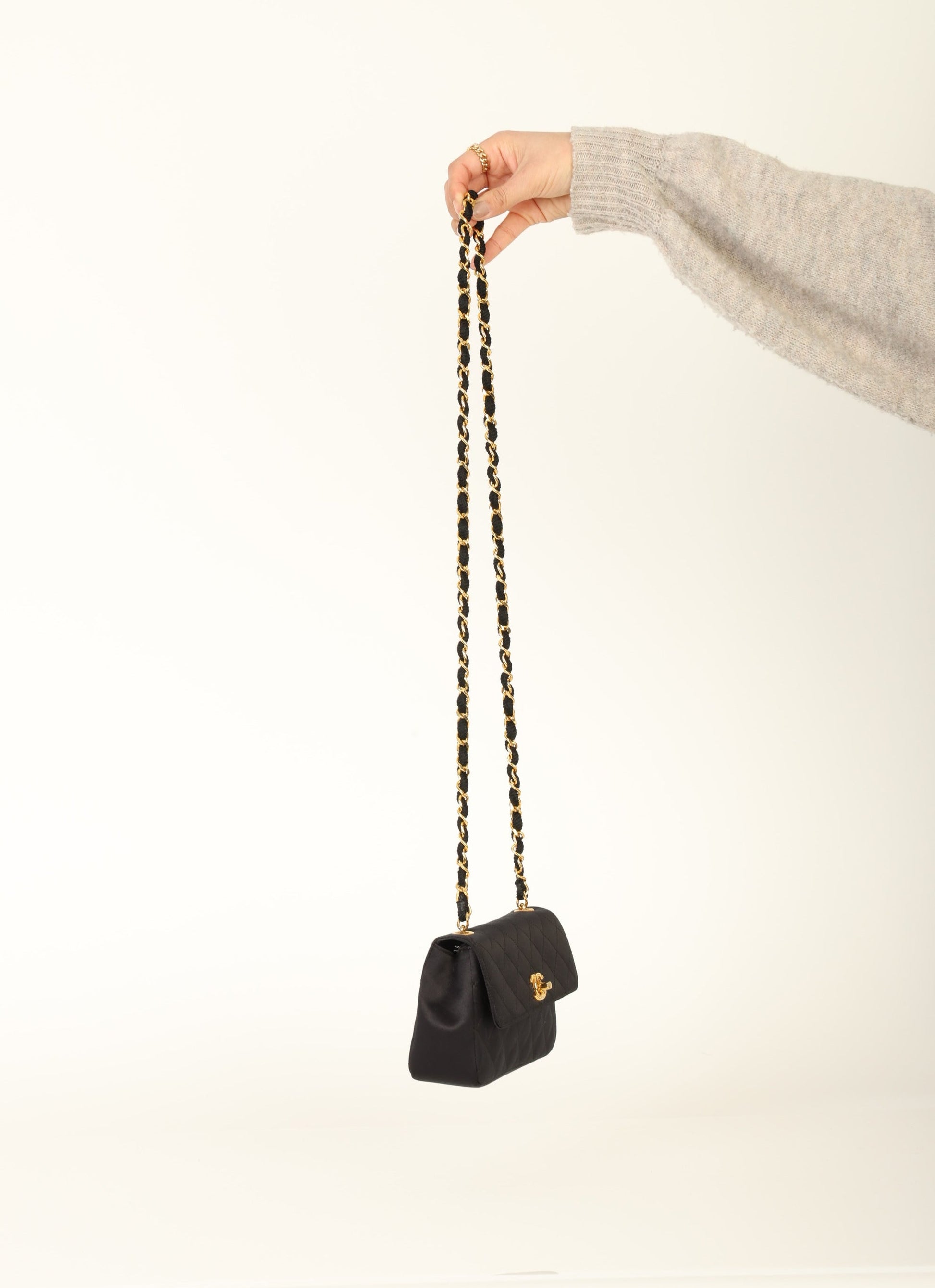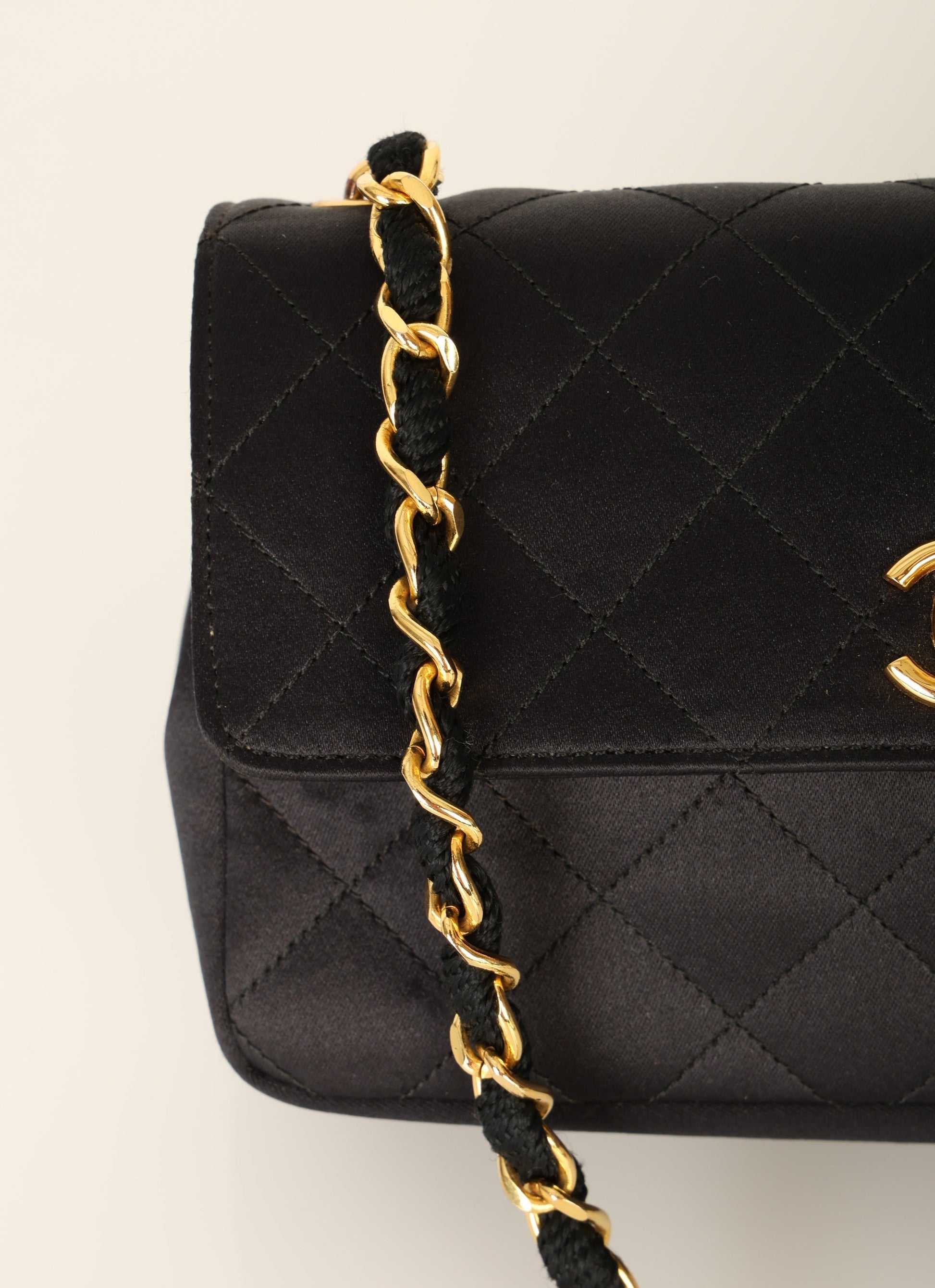 Dropping in the shop is a Chanel Satin Mini Flap Bag in black with 24k gold plated hardware. This piece is perfect for those who don't carry too much in their bags! You can wear?it as a long-shoulder bag or play with the straps to turn it into a short-shoulder bag. A?great?bag to take on a night out!?You can fit your phone, card holder, keys, and a lippie.