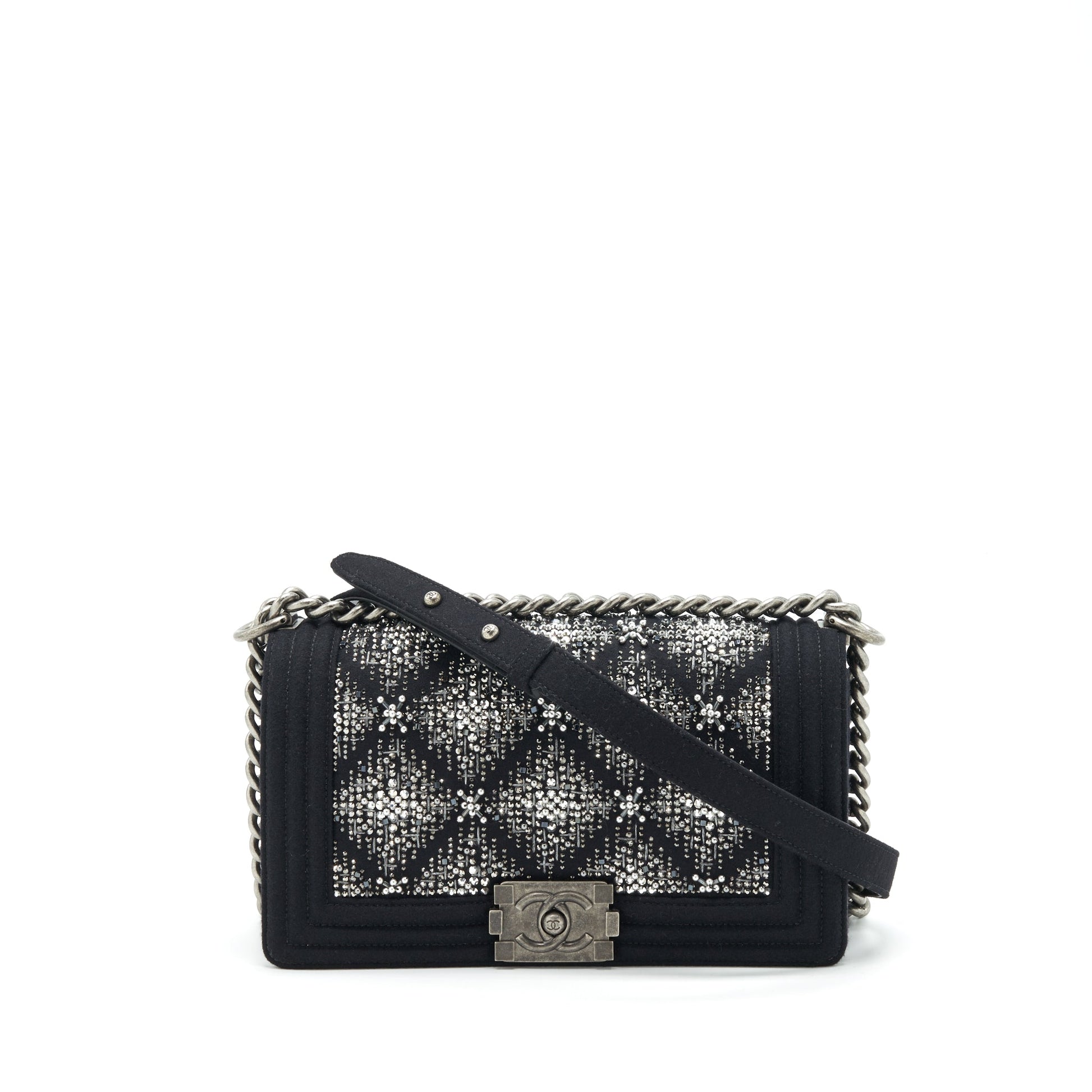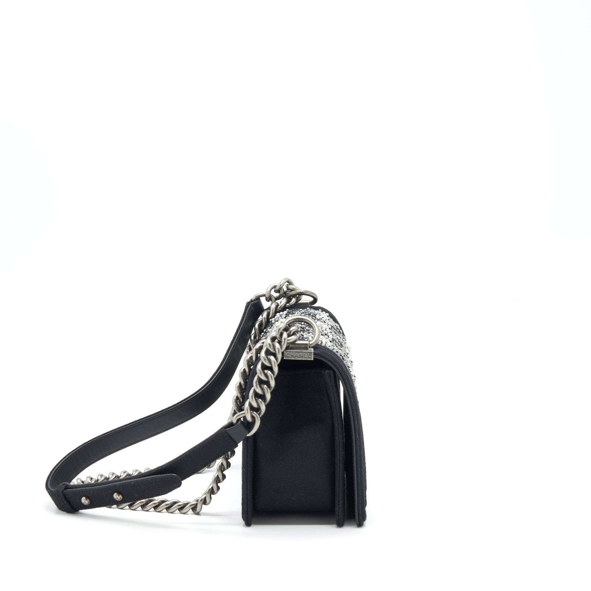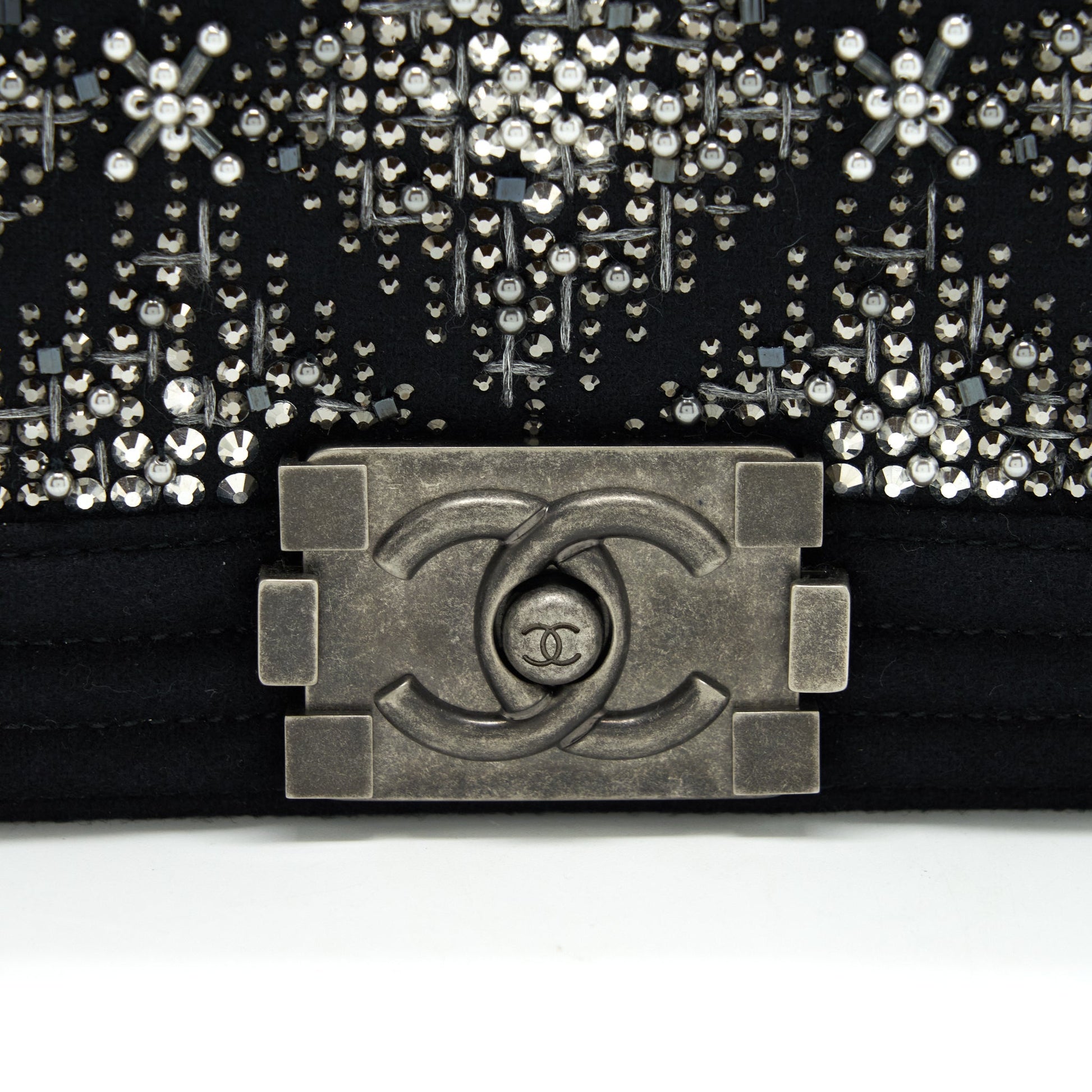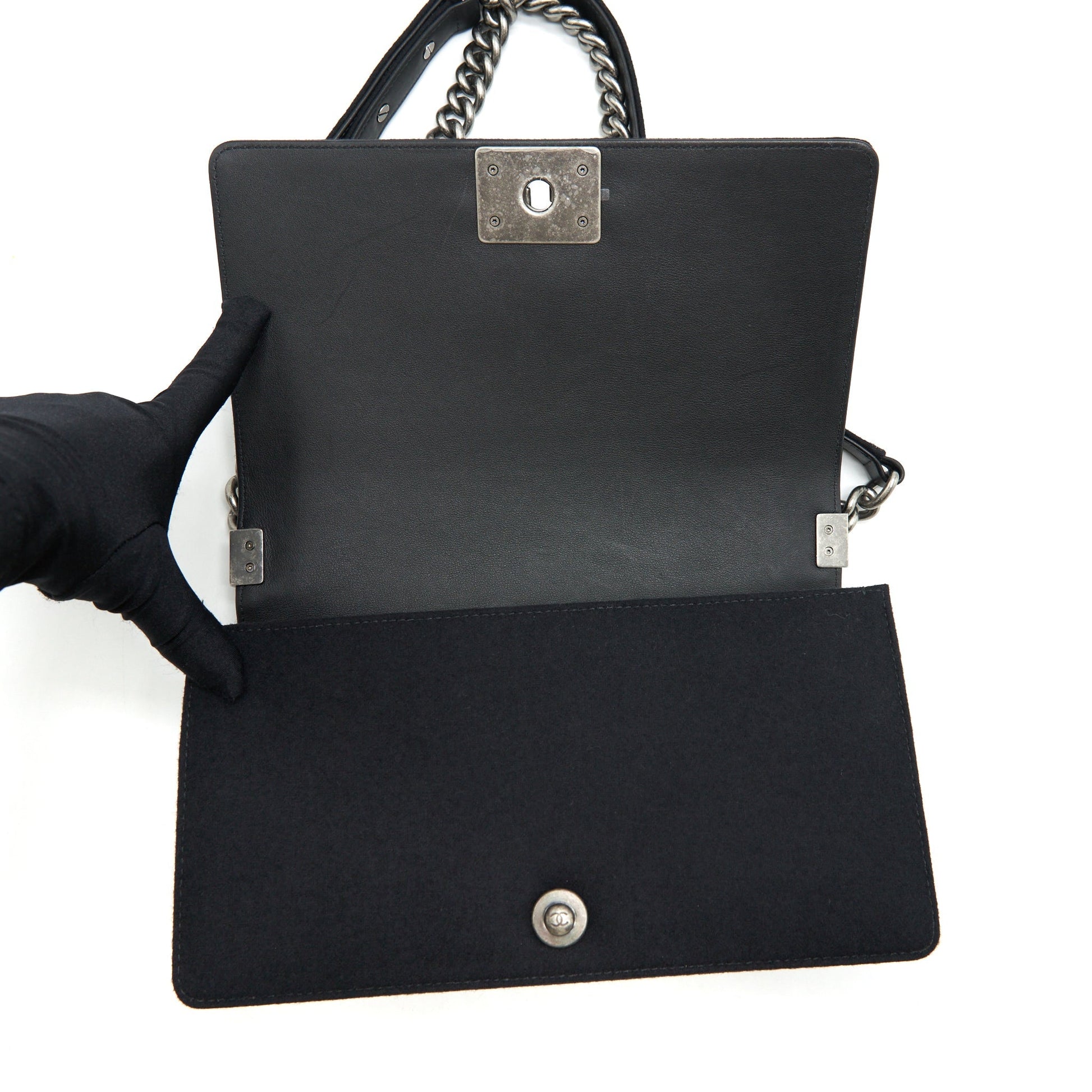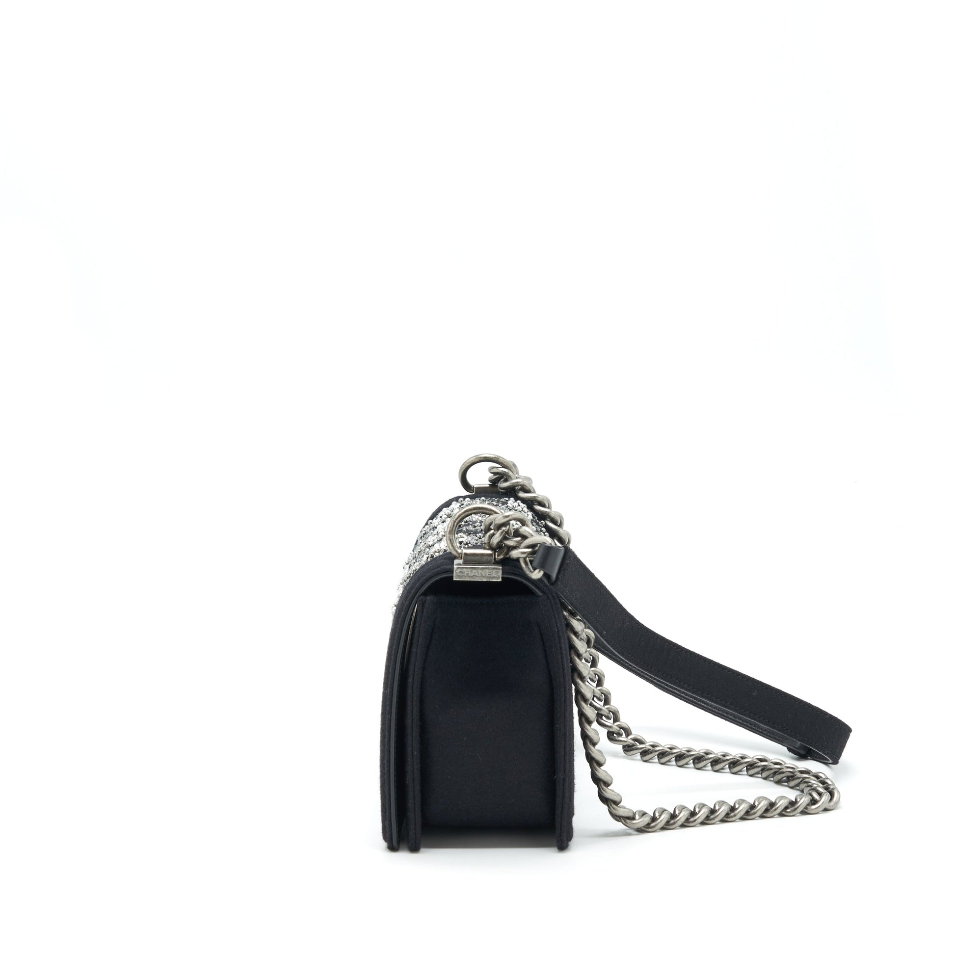 Chanel 19B Medium Boy Flap Bag Limited Edition Fabric Black Ruthenium Silver Hardware