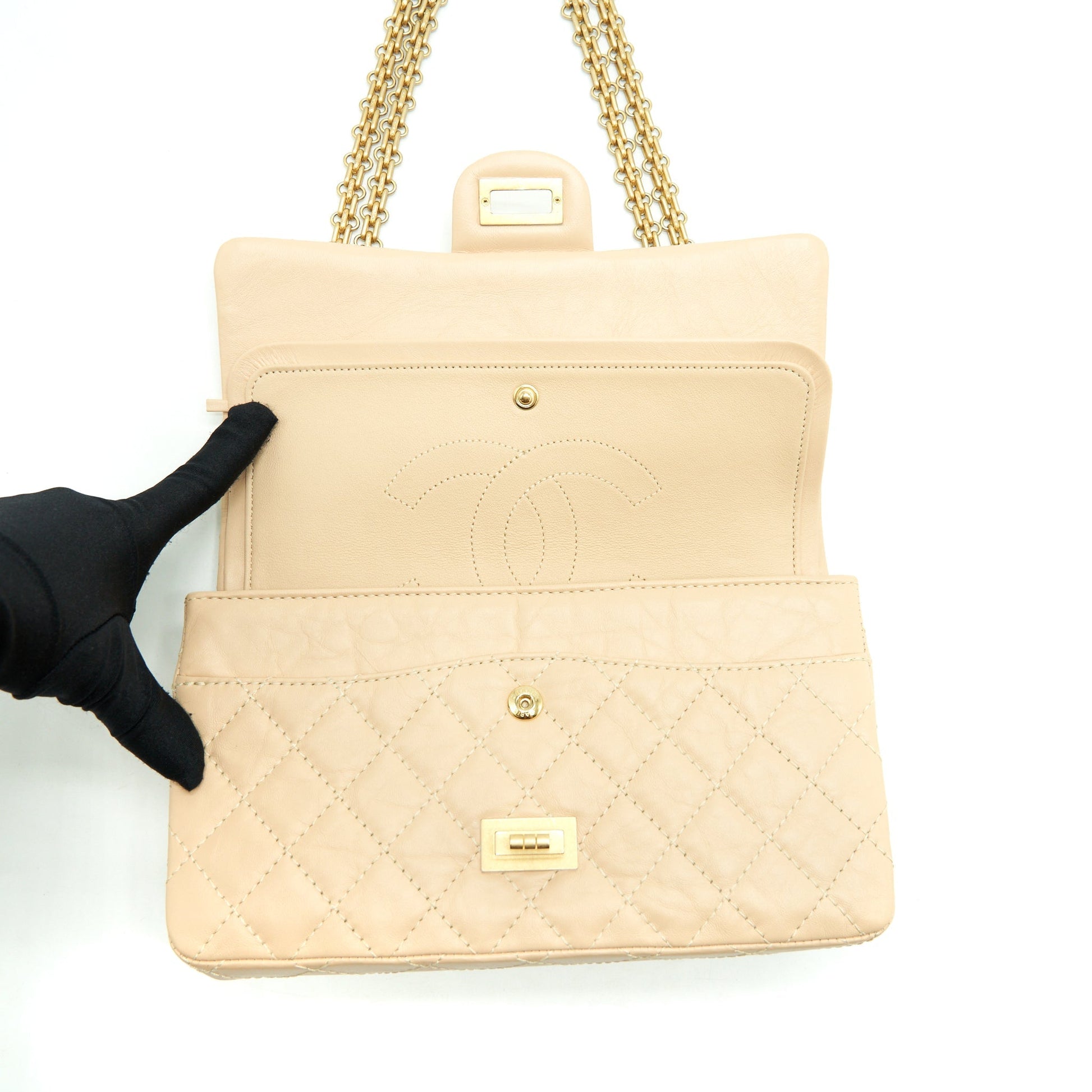 Chanel 2.55 225 Reissue Double Flap Bag Calfskin Light Beige GHW