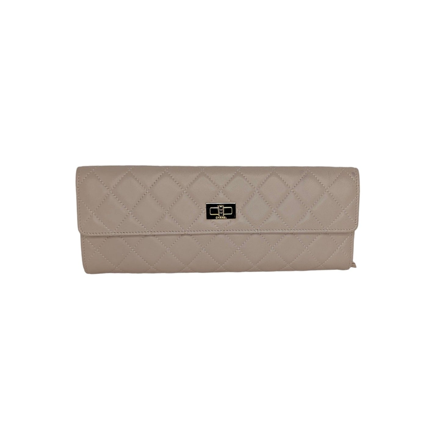 Chanel 2.55 Beige Lambskin Jewelry Case Clutch