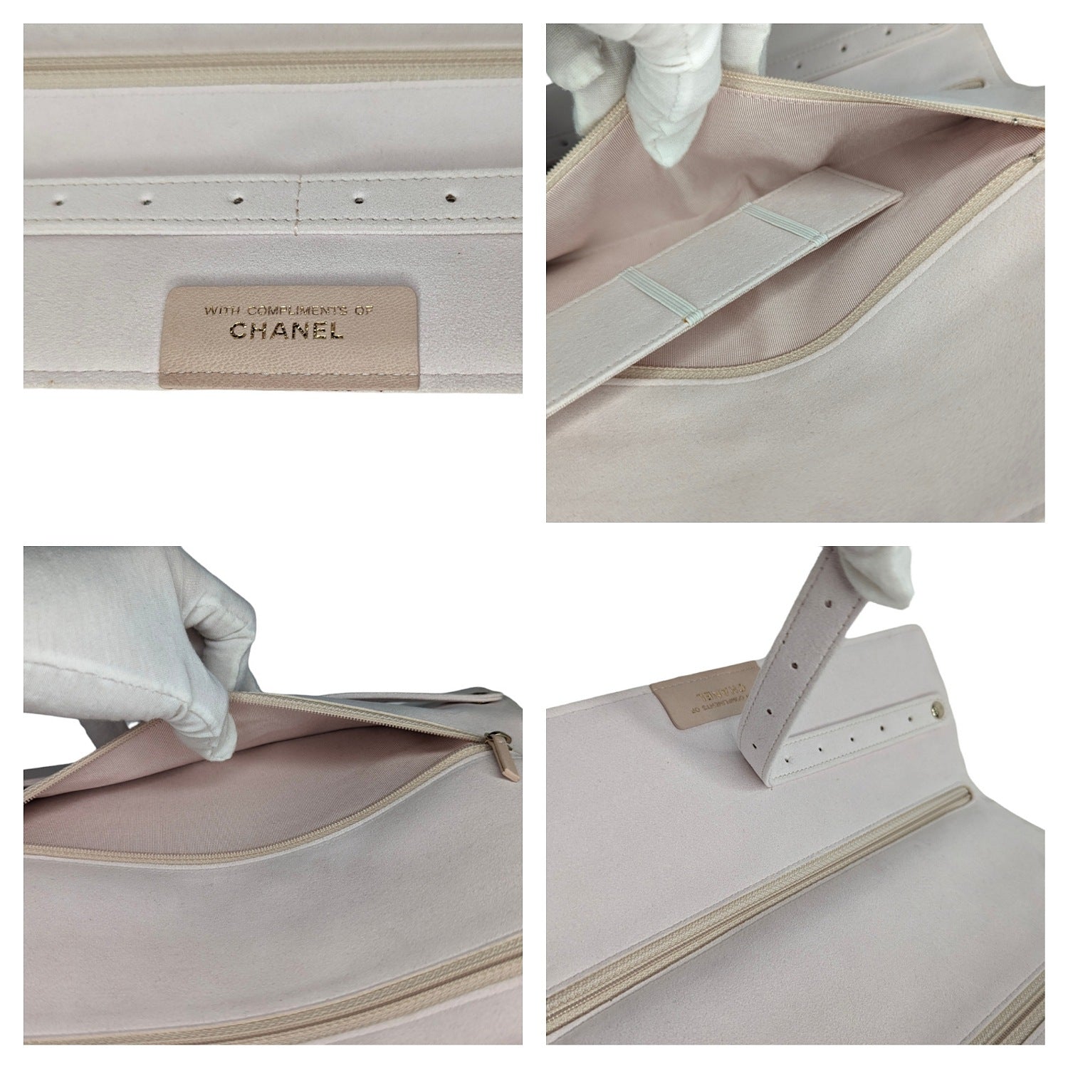 Crafted from luxurious light beige lambskin leather, this Chanel 2.55 jewelry case is a timeless piece for the discerning collector. The iconic quilted design and polished gold-tone hardware echo the classic elegance of the Chanel 2.55 clutch. This versatile piece can be used as a jewelry case or a clutch. The interior features a removable jewelry insert and a pink soft suede lining, perfect for protecting your treasured possessions while traveling.