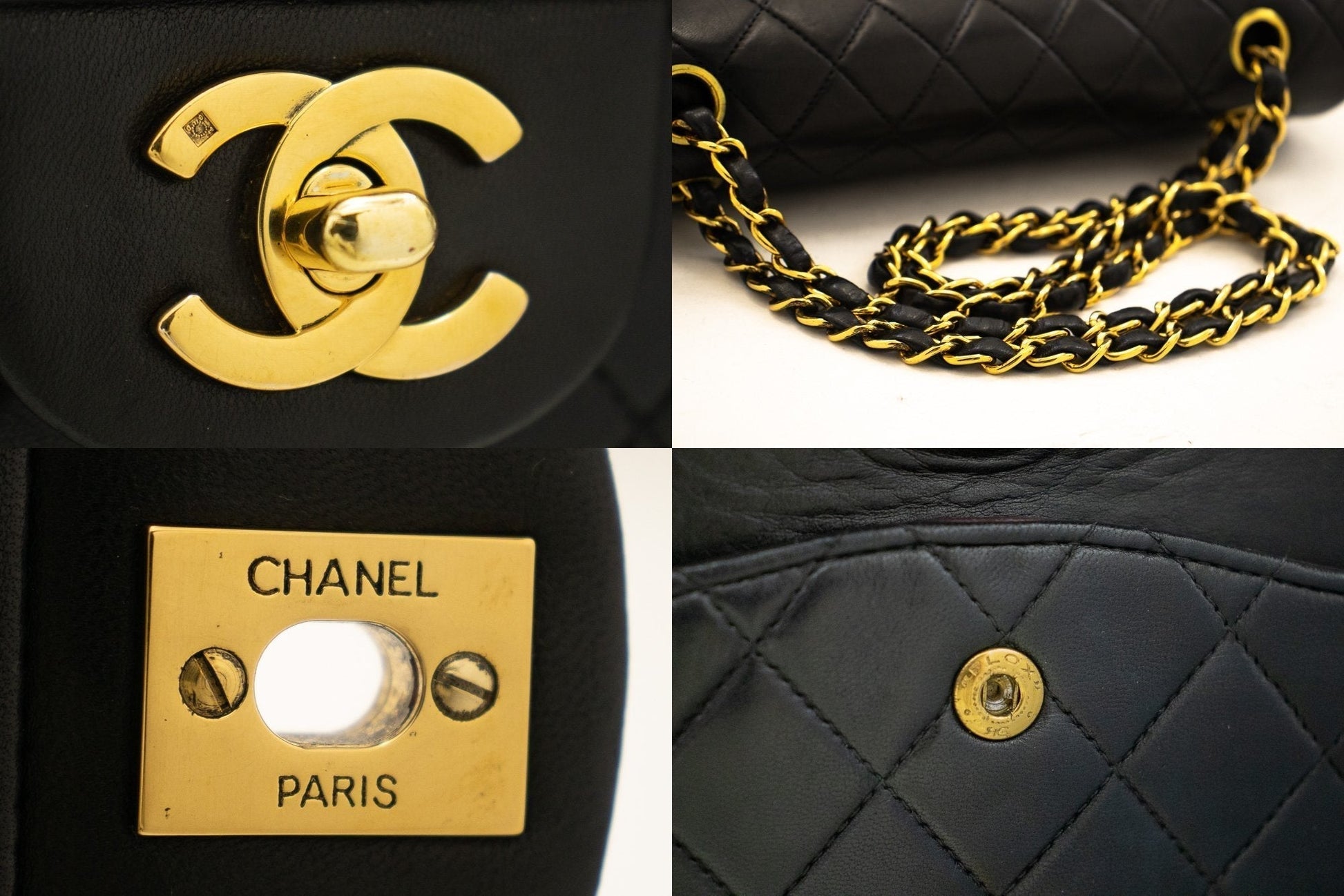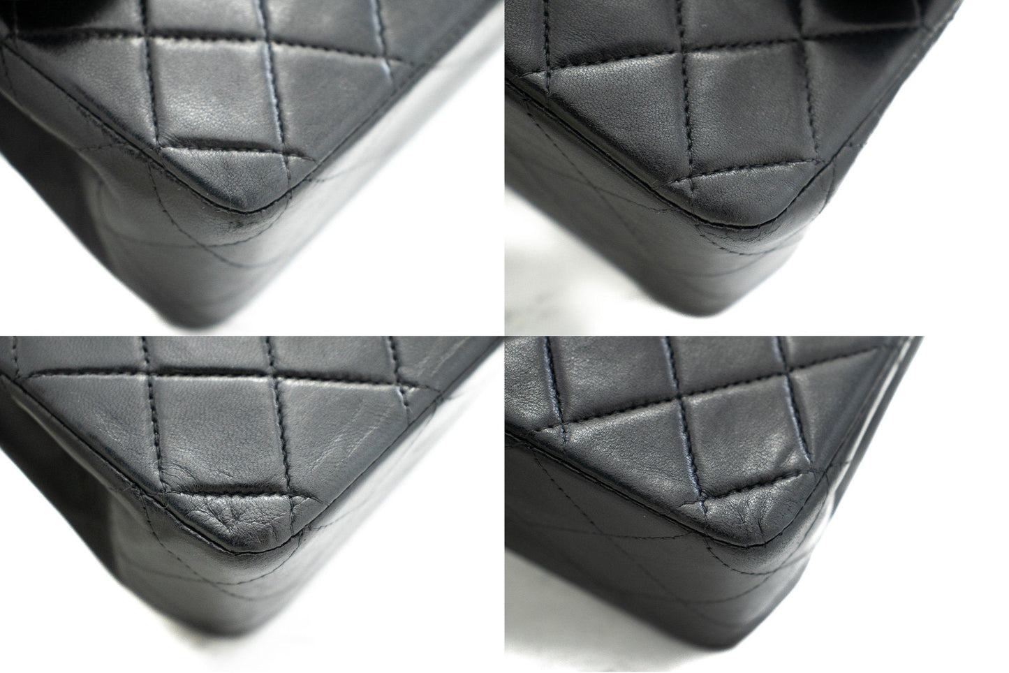 CHANEL 2.55 Double Flap Medium Chain Shoulder Bag Black Lambskin j94