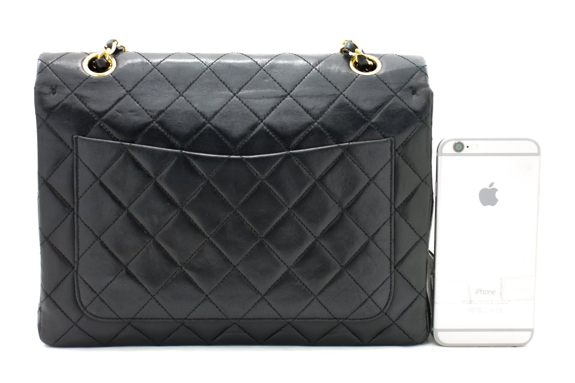 An CHANEL 2.55 Classic Double Flap Square Chain Shoulder Bag Black made of black Lambskin h72 This item is Vintage / Classic. The year of manufacture would be 1986-1988.