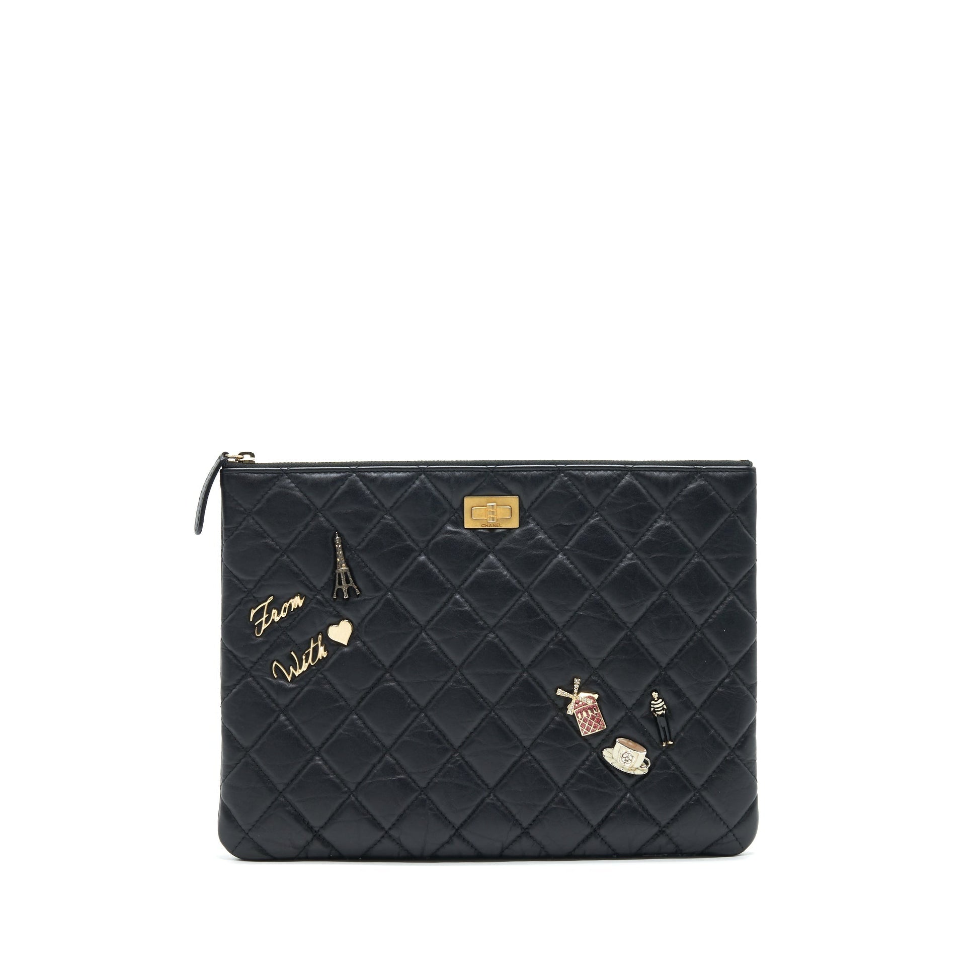 Chanel 2.55 Leather Clutch with Charm Black GHW