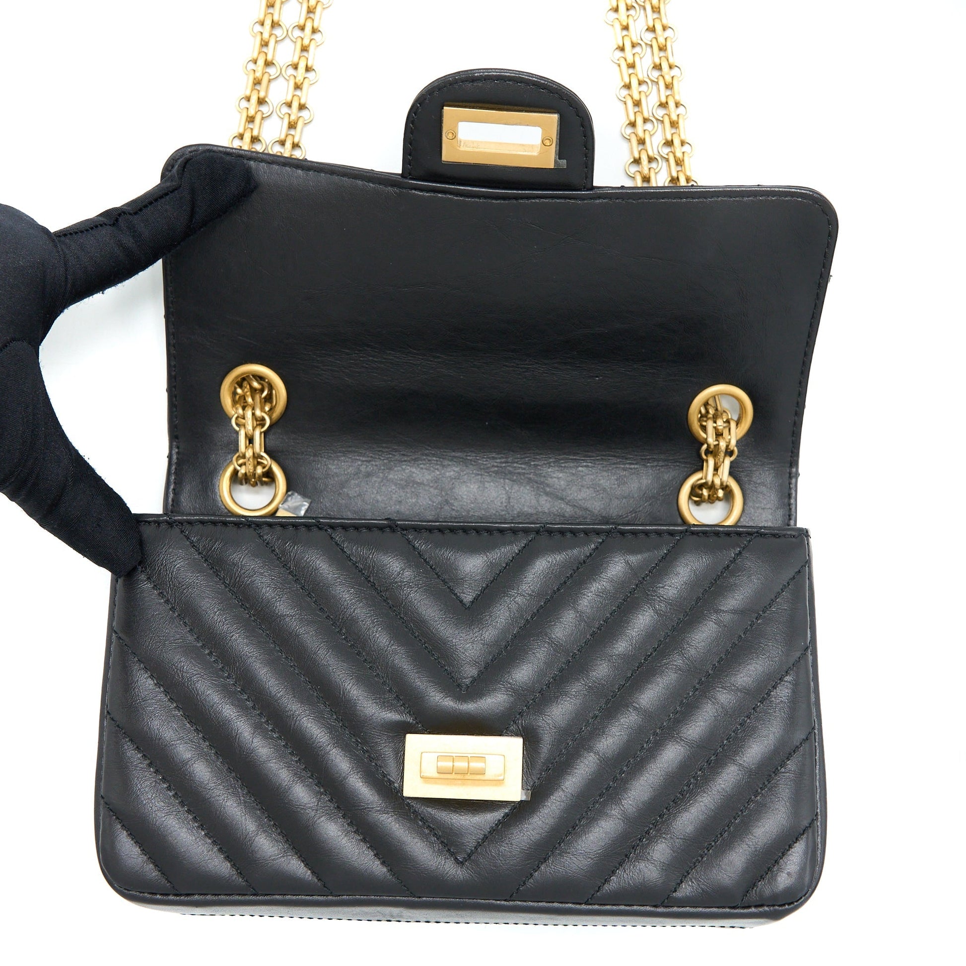 Chanel 2.55 Reissue Mini Chevron Flap Bag Aged Calfskin  Black GHW