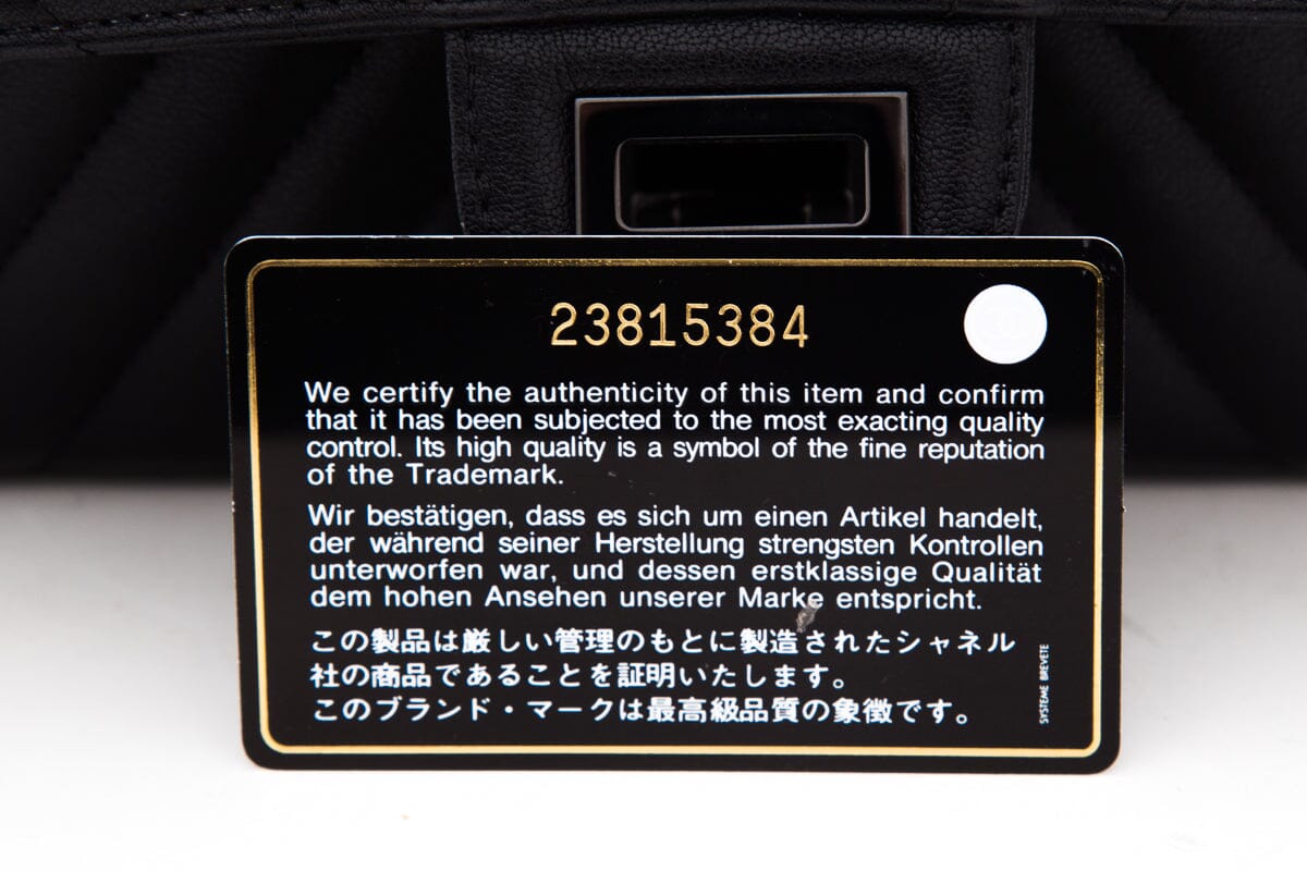 Chanel 2.55 Reissue 2016-2017 "SO Black" Chevron Handbag; Full set with cards, dustbag, and Box. This item is in excellent condition.