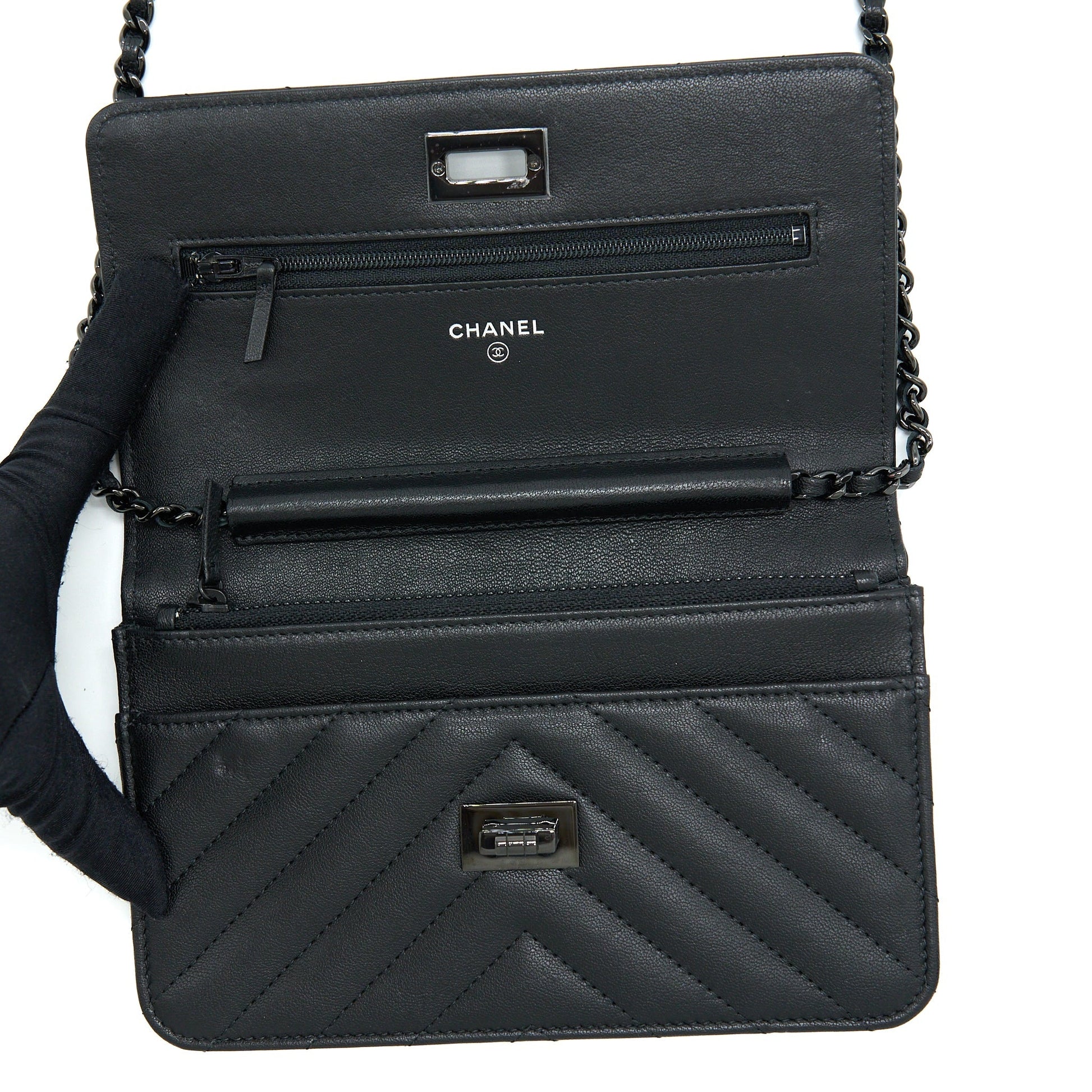 Chanel 2.55 So Black Wallet On Chain Calfskin With Black Hardware