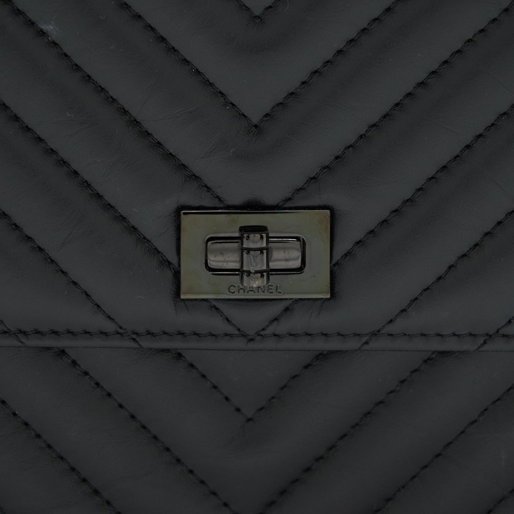 Chanel 2.55 Square Wallet On Chain Chevron Calfskin So Black