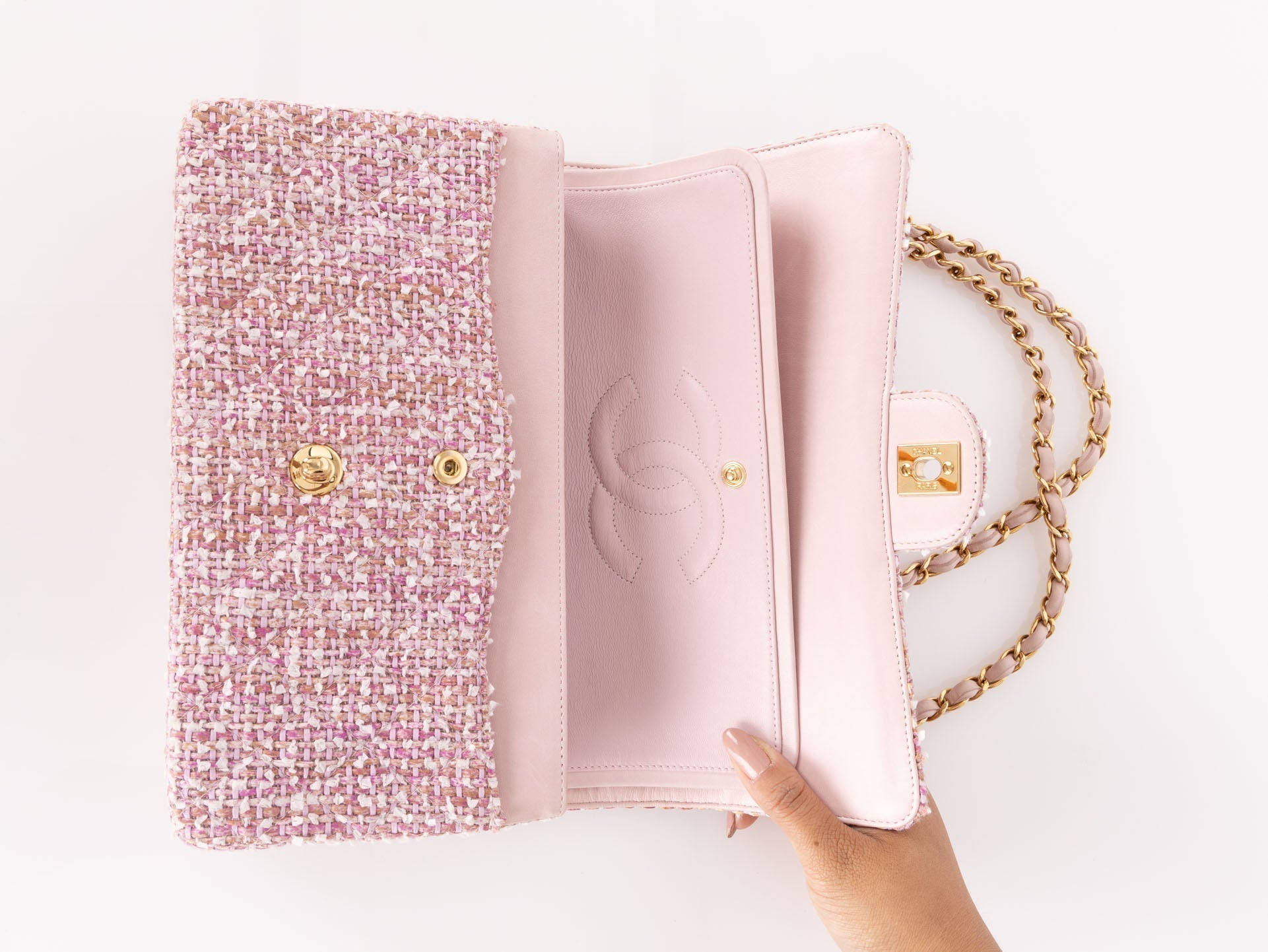 Dropping in the shop is a stunning and classic tweed Chanel with gold hardware! An New investment piece that can be loved for years to come. Don't miss out on this gorgeous find!