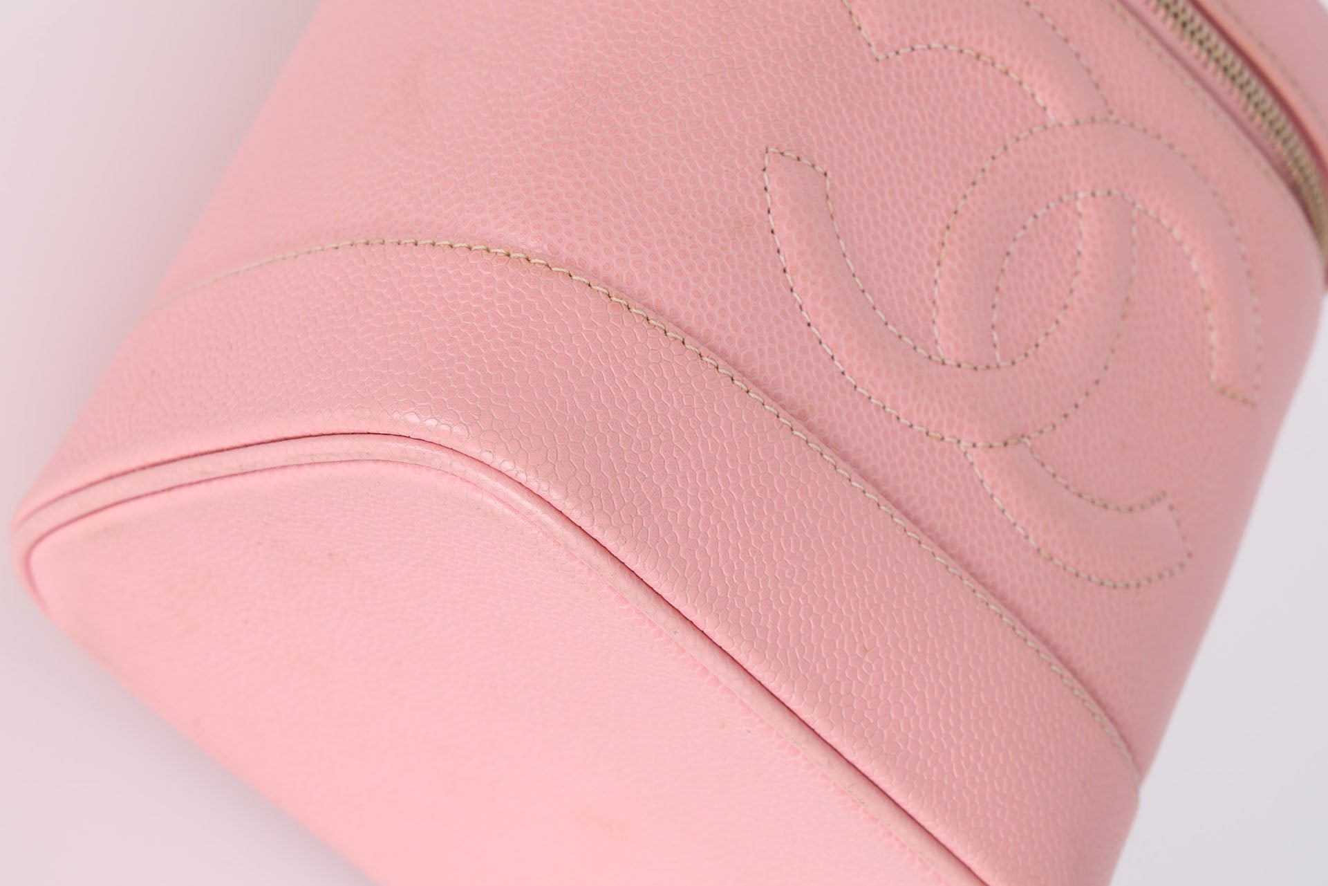 Dropping in the shop is a pretty pink Chanel Caviar Vanity Bag w/ Chain with gold hardware! This vanity is such a unique and rare piece that can be on multiple special occasions, as a makeup case, or even a super chic bento box.