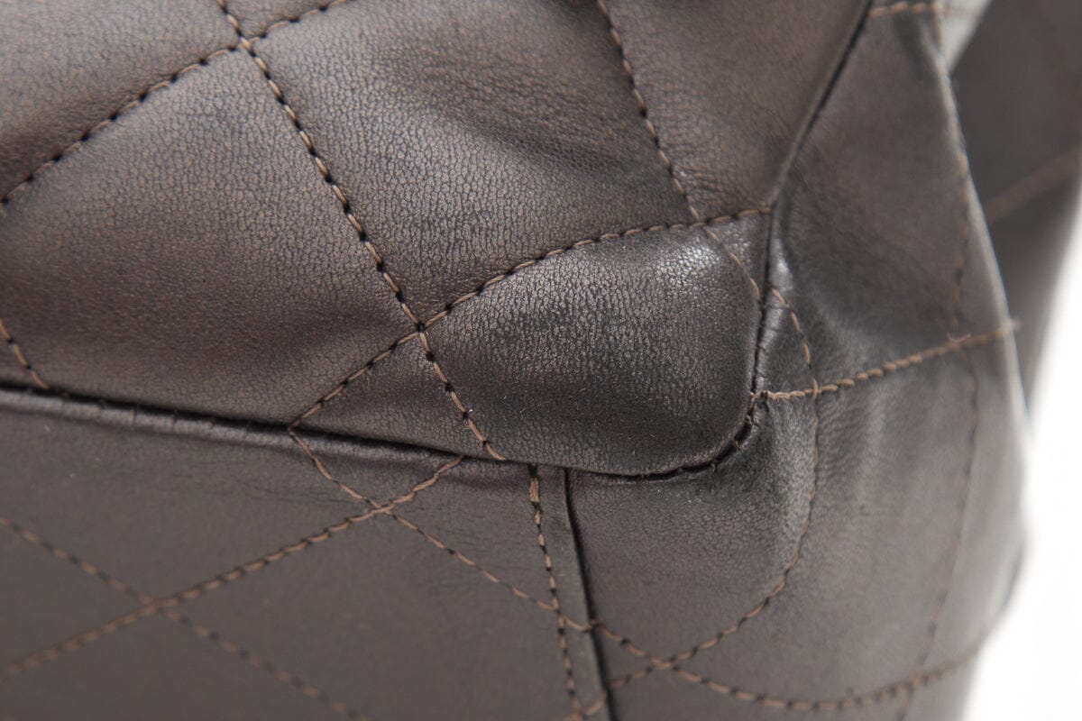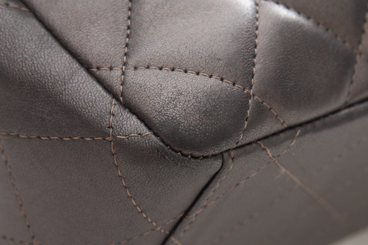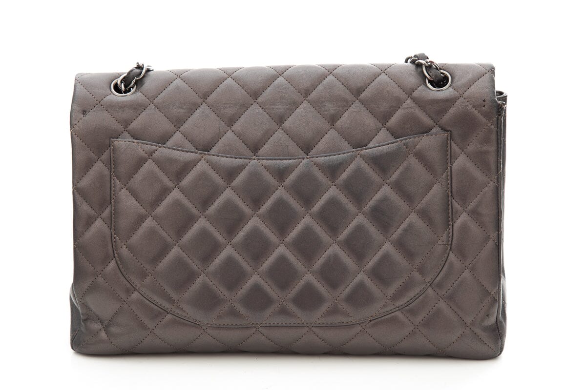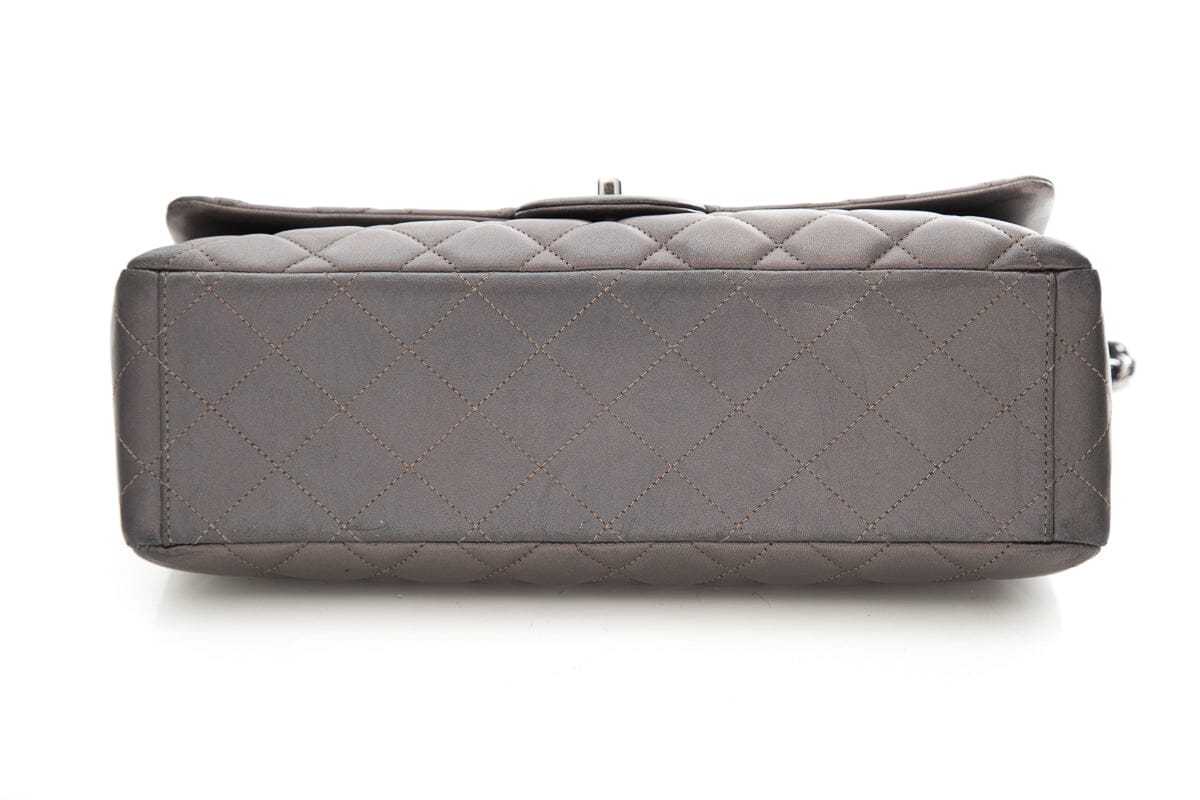 Chanel 2009-2010 Maxi Classic Flap Gunmetal Quilted Lambskin Handbag W Silver HW