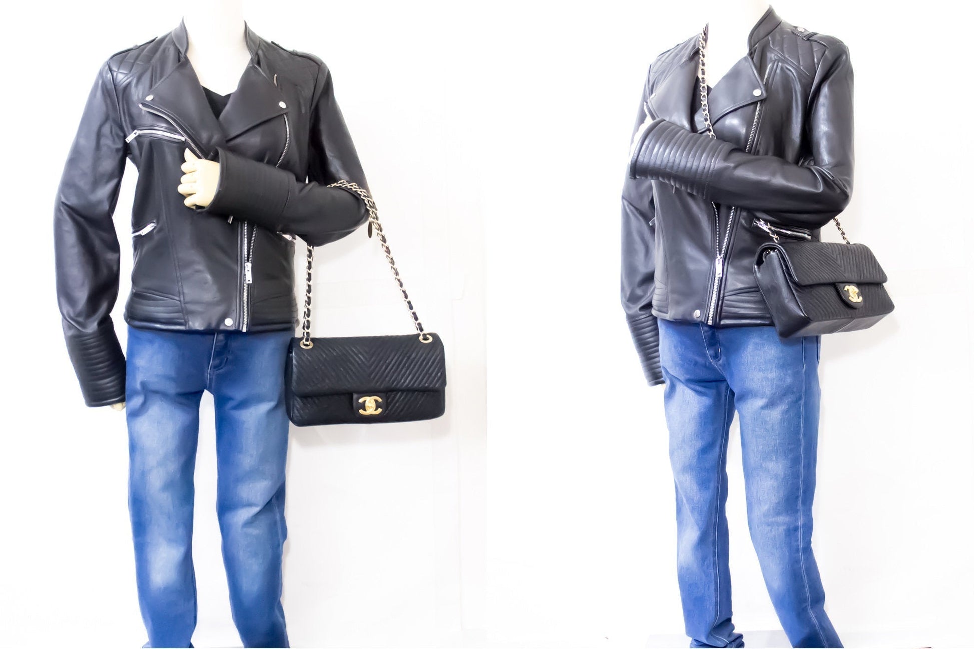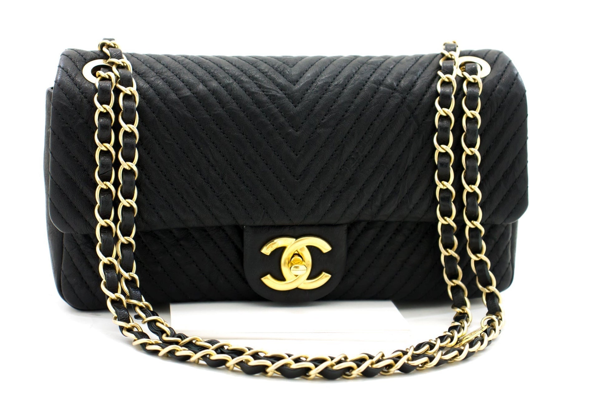 An Chanel 2015 Chevron V-Stitch Leather Chain Flap Shoulder Bag i80 This item is Contemporary. The year of manufacture would be 2015.