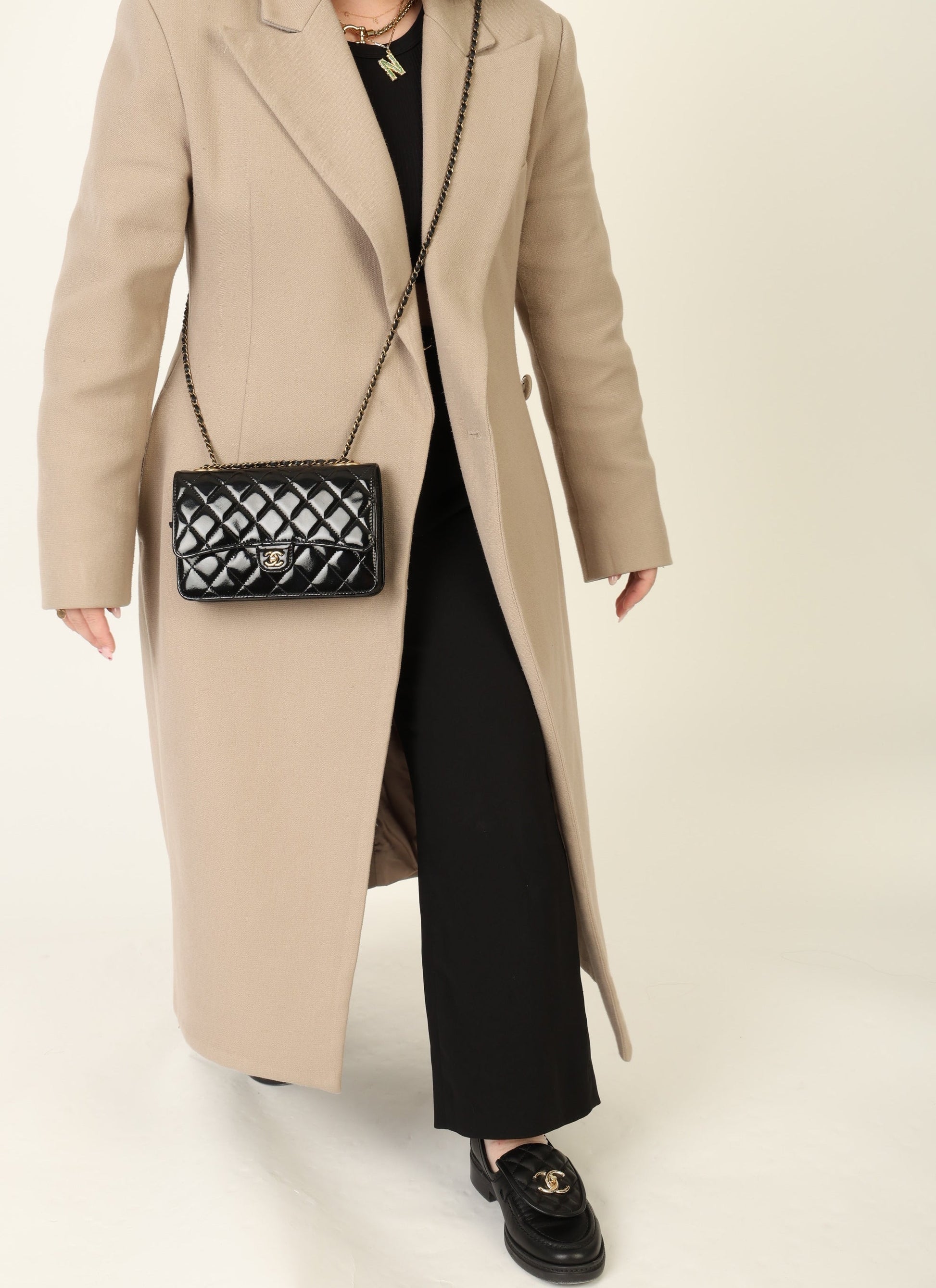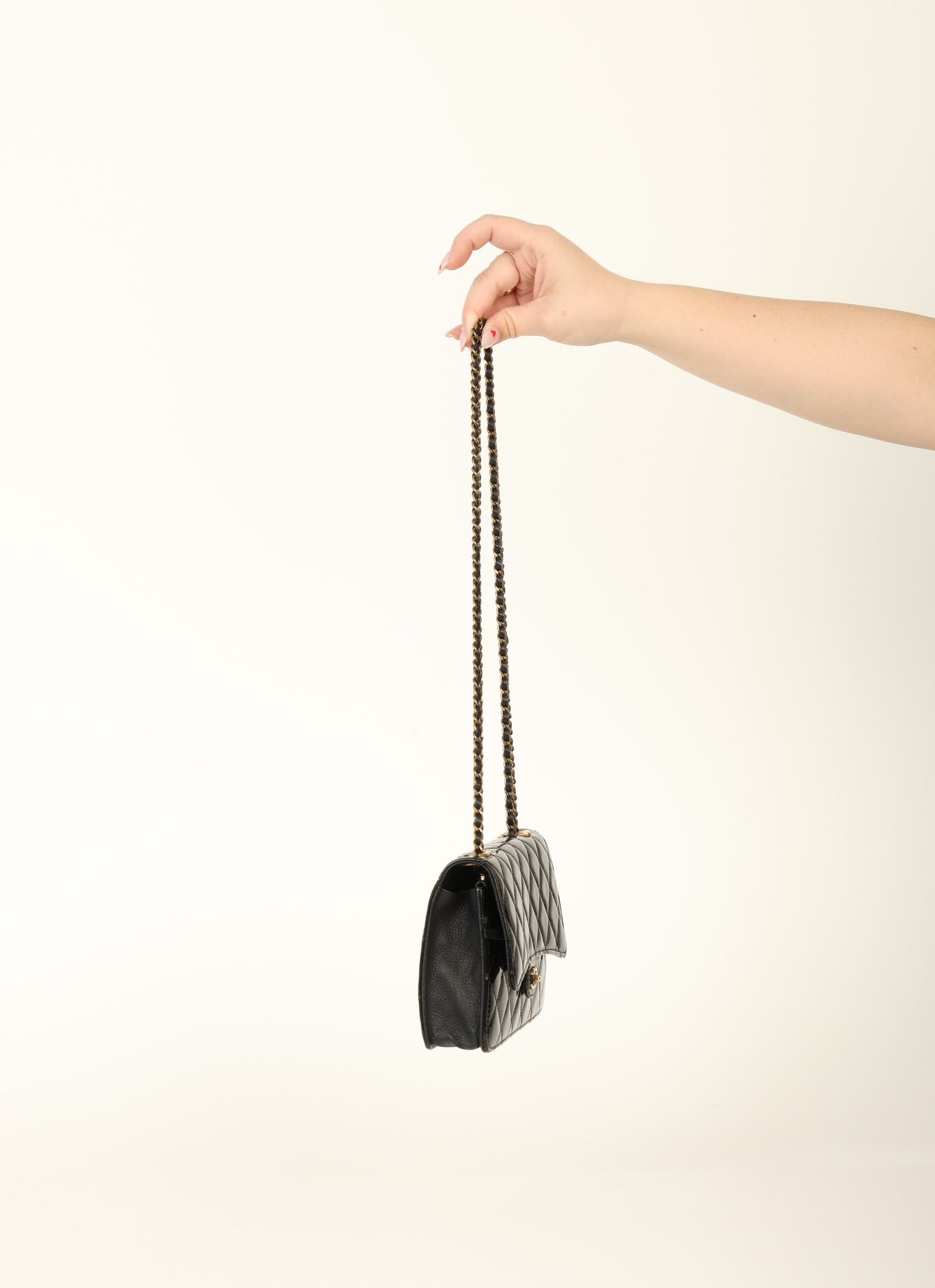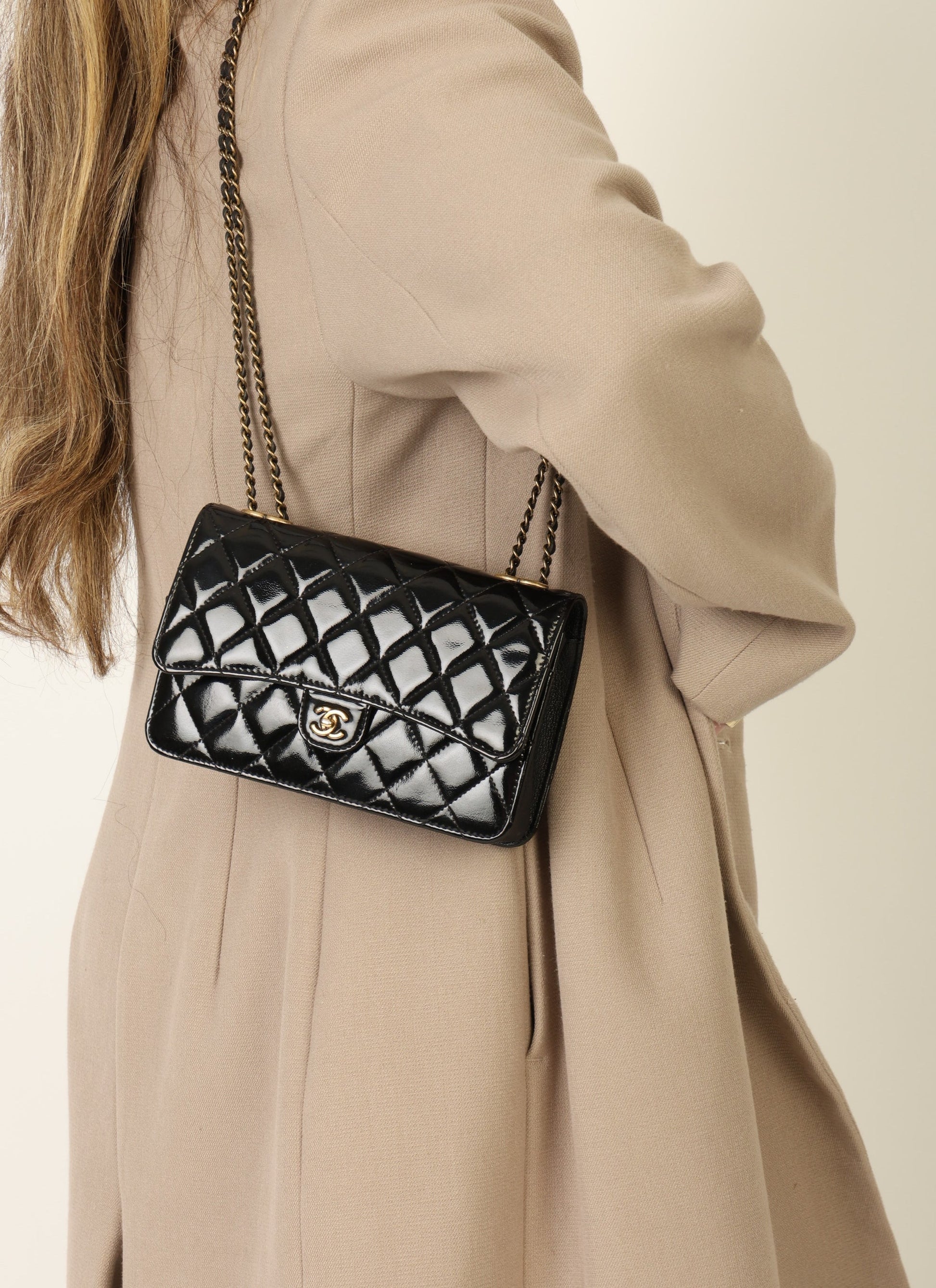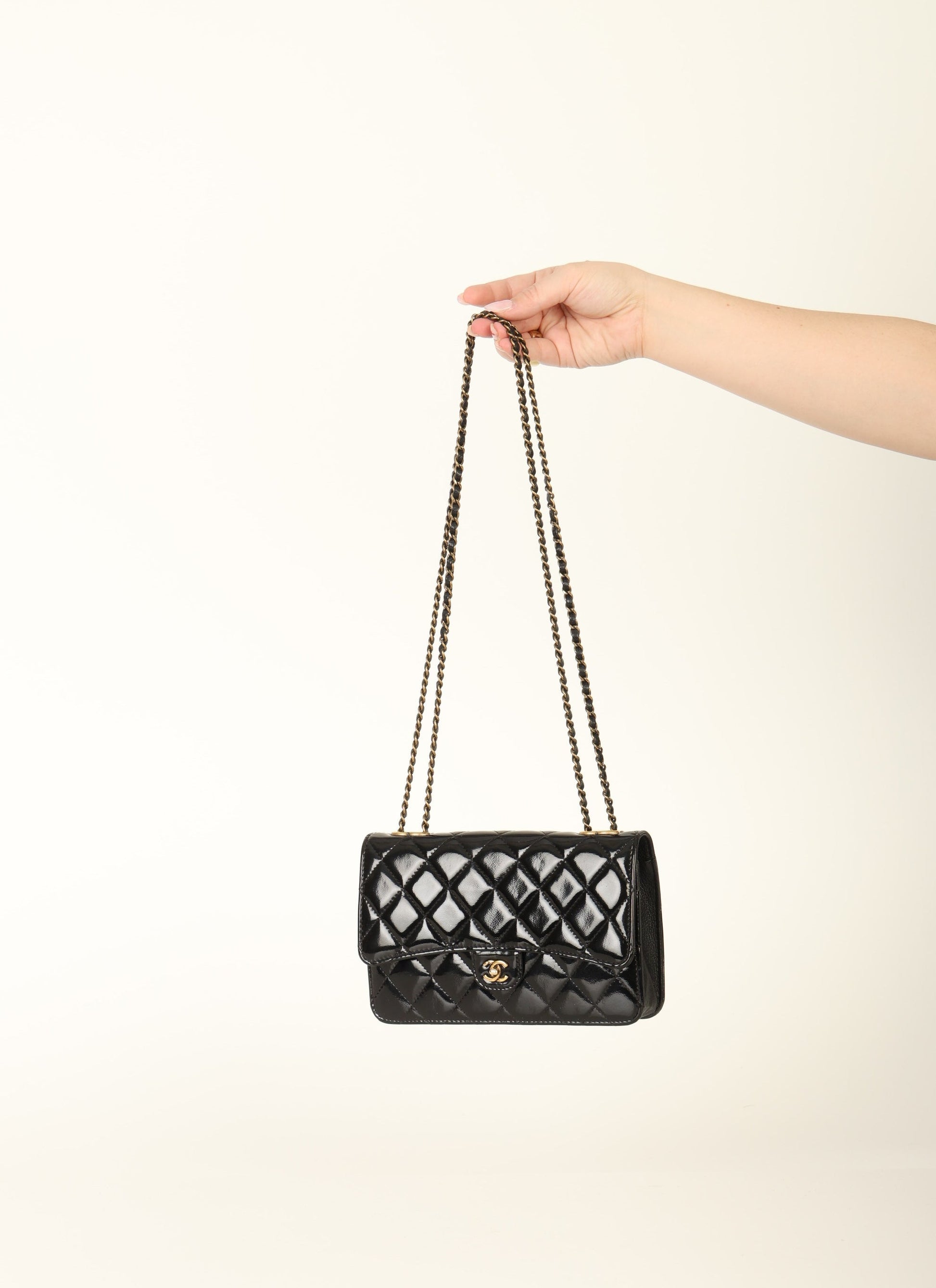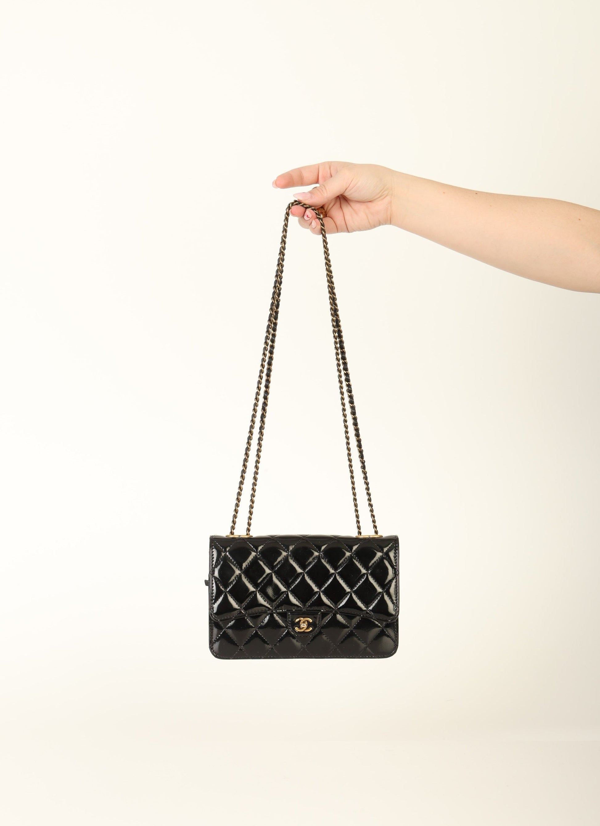Dropping in the shop is a stunning 2005 Chanel Patent Wallet on Chain in black with antique gold hardware! This gorgeous piece will be the bag that you grab on your night out! The top of the bag features two CC logos where the chains can be adjusted to turn into a long or short-shoulder bag. The interior features multiple card slots so you can ditch your wallet and multiple compartments to keep your items organized. You can fit your phone, card holder, keys, and a few other smaller essentials.?