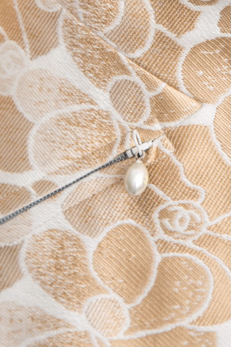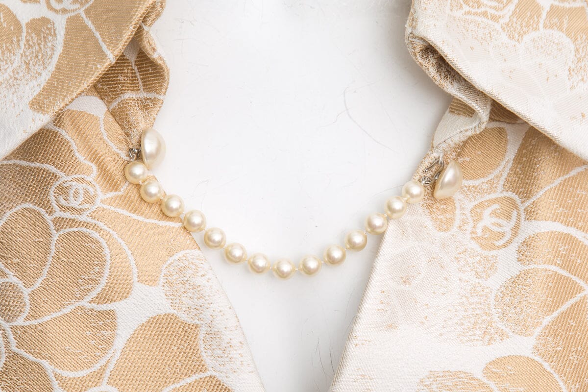 Chanel 2017 Cream/Gold Floral Print Jacket with Pearl Strand Detail. This item is in very New condition.