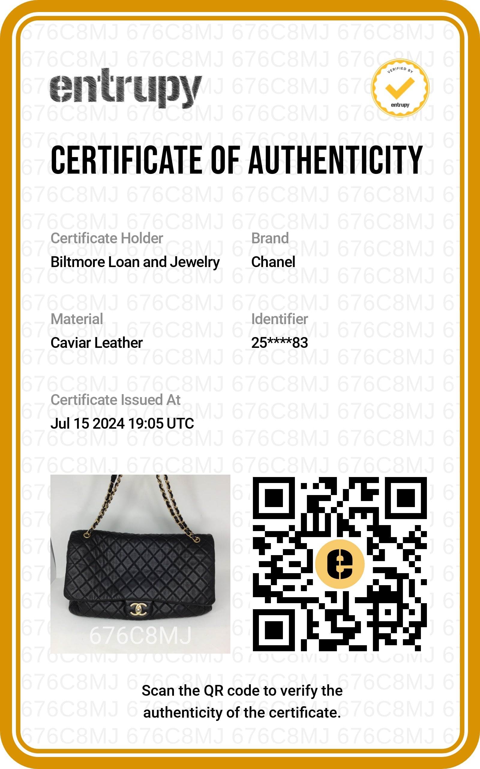 Includes: Original dust bag, ribbon, care booklet, and card