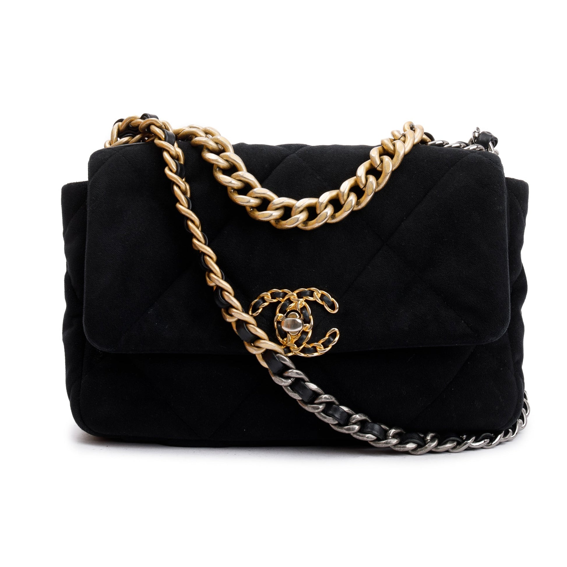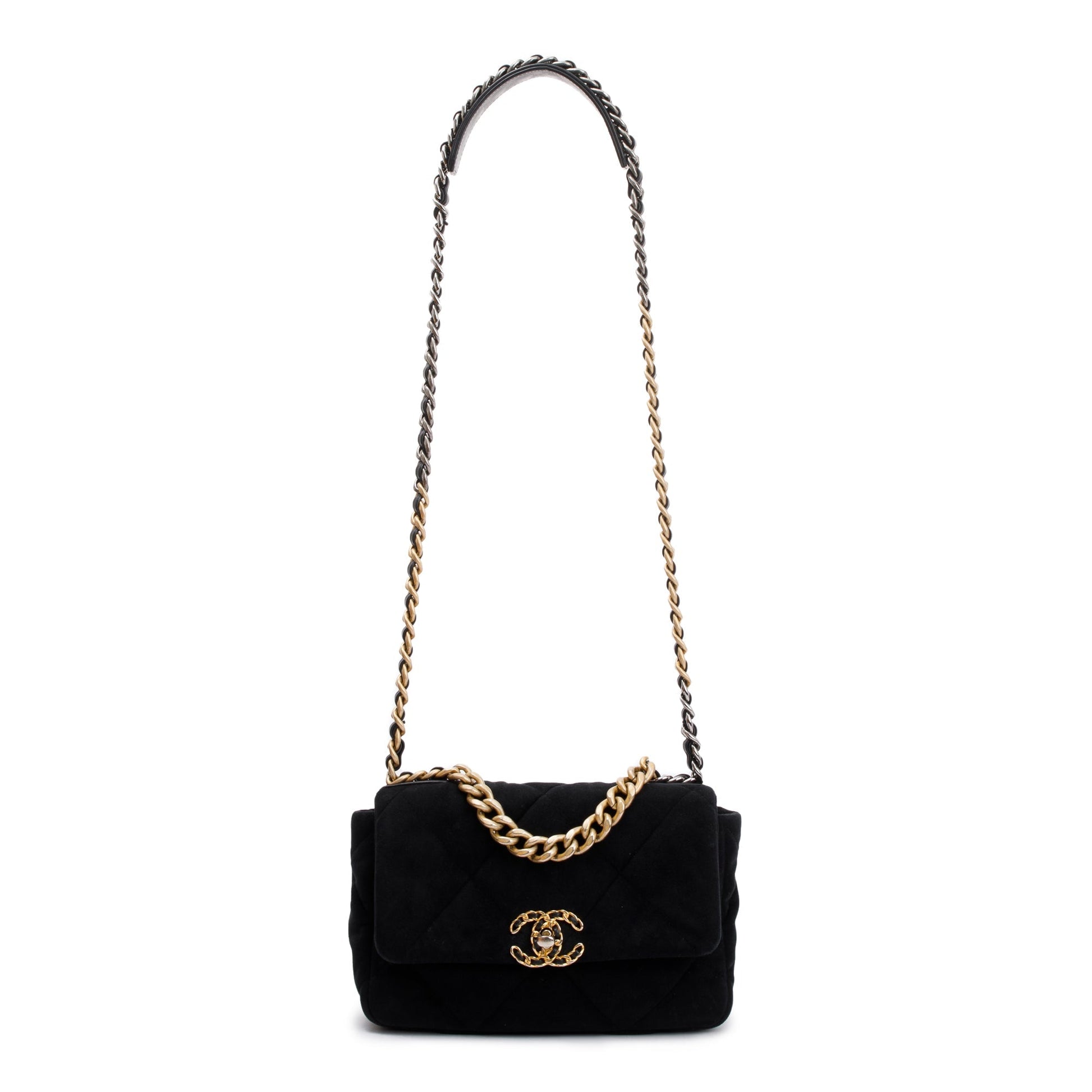 Chanel 2020 Black Velvet Medium 19 Flap Bag w/ Box & Authenticity Card