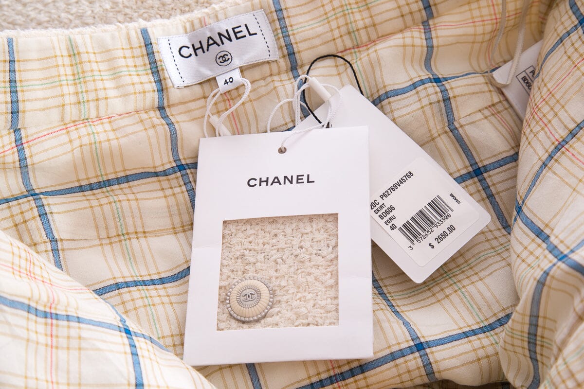 NWT Chanel 2020 Cruise Ivory Fantasy Tweed Skirt Zip Detail Skirt. This item is new with tags.