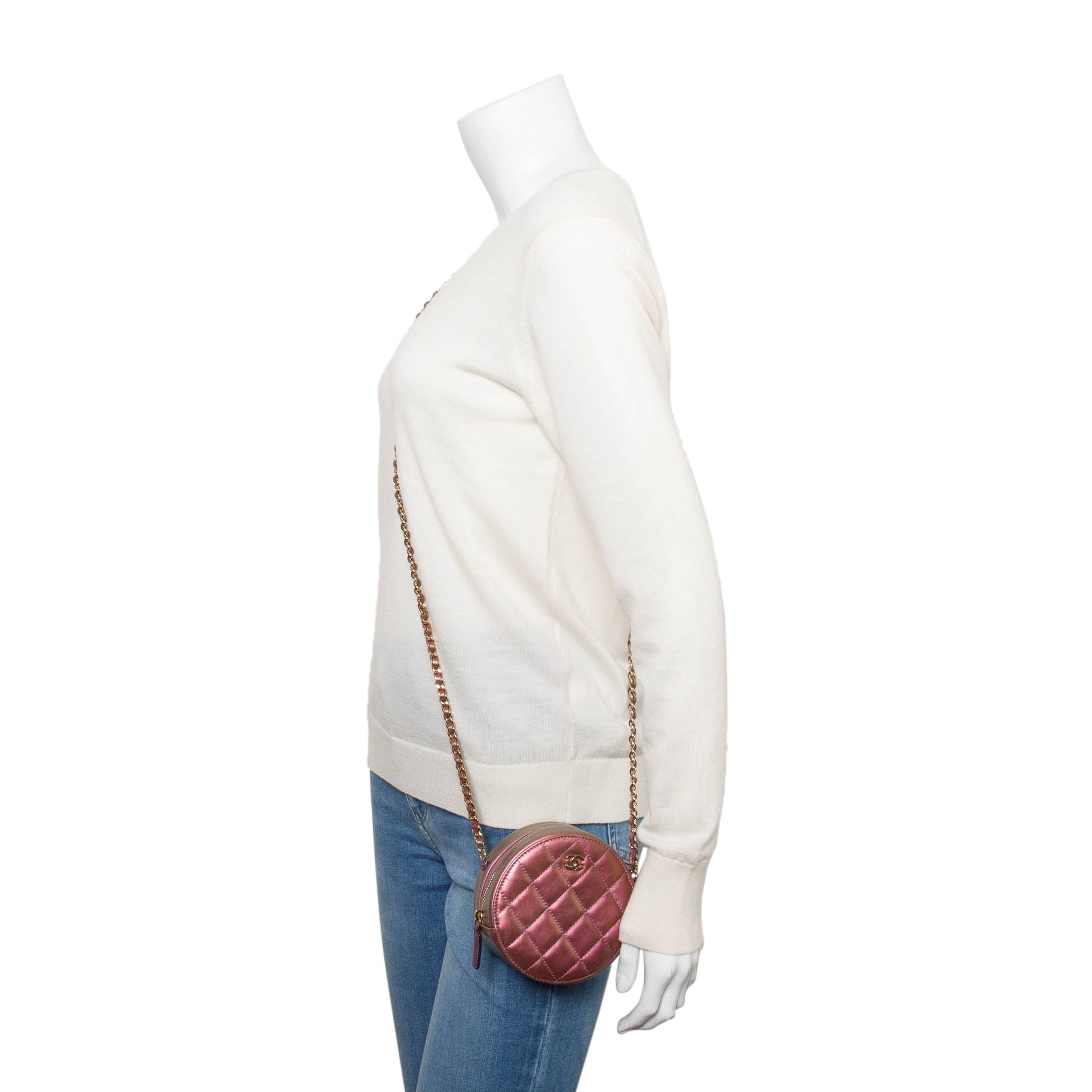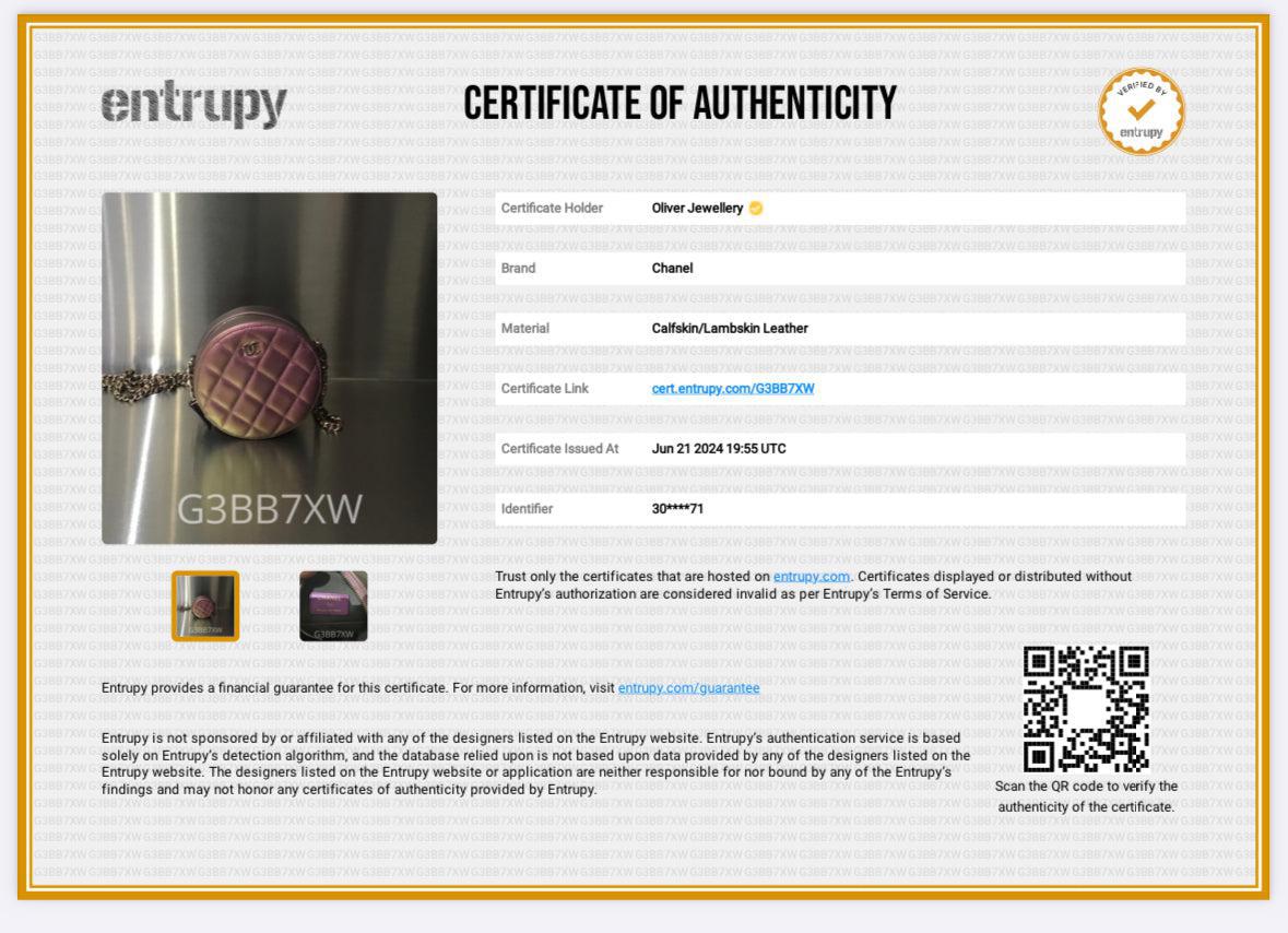 Chanel 2020 Purple Iridescent Calfskin Leather Round CC Chain Crossbody Bag w/ Authenticity Card