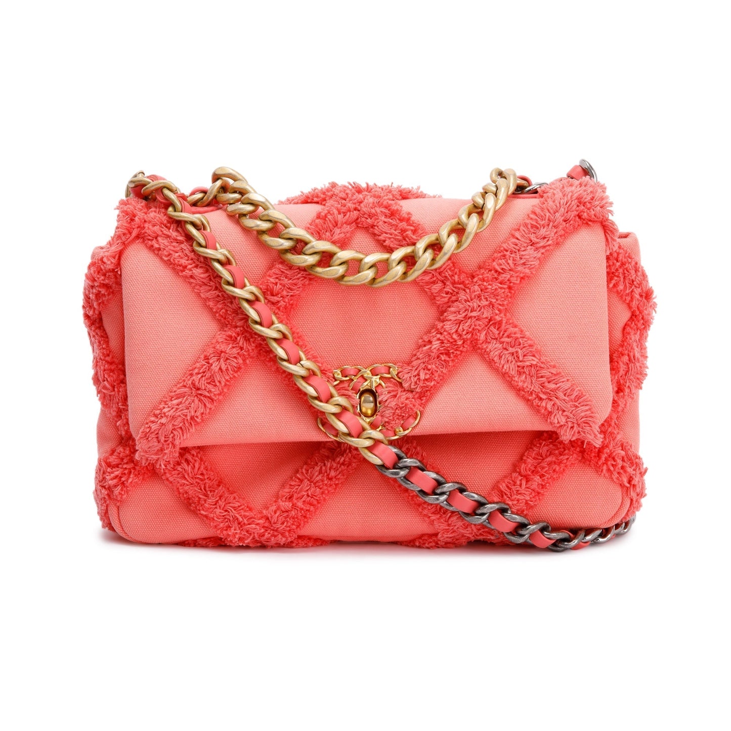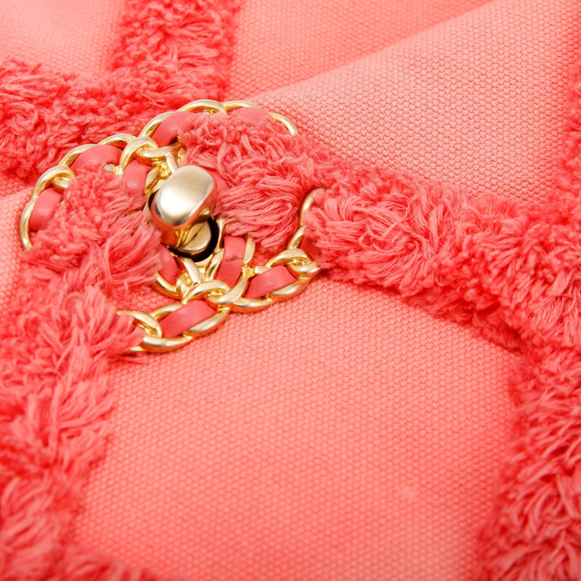 Chanel 2020 Coral Quilted Cotton Canvas Medium 19 Flap Bag w/ Box, Receipt & Authenticity Card