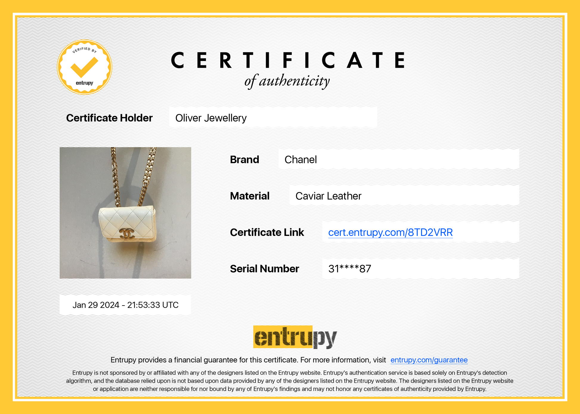 Chanel 2021 White Caviar Leather CC Flap Card Holder Belt Bag w/ Authenticity Card