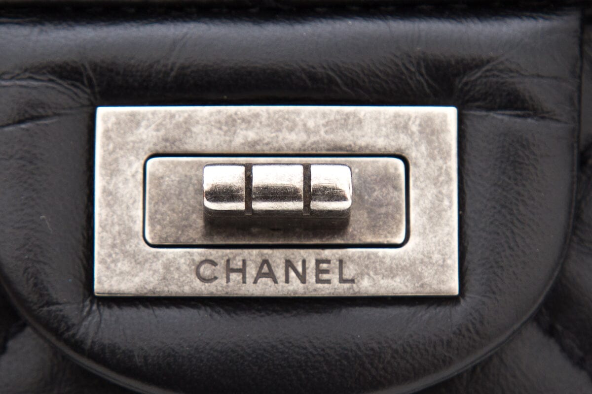 Chanel 2022 2.55 Reissue Jumbo Flapbag with Aged Black Calfskin. This item is in New condition; some staning on interior.
