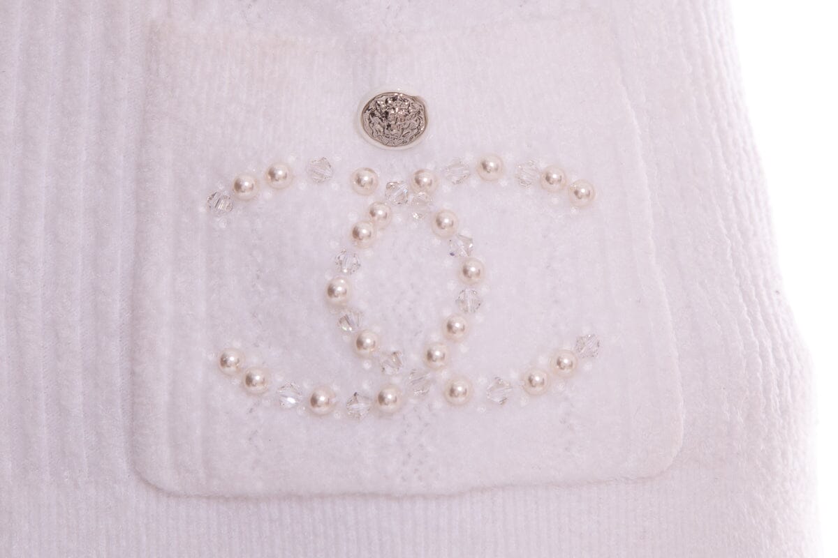Chanel 2022/2023 CC Pearl Logo Pocket White Cardigan. This item is in New condition.