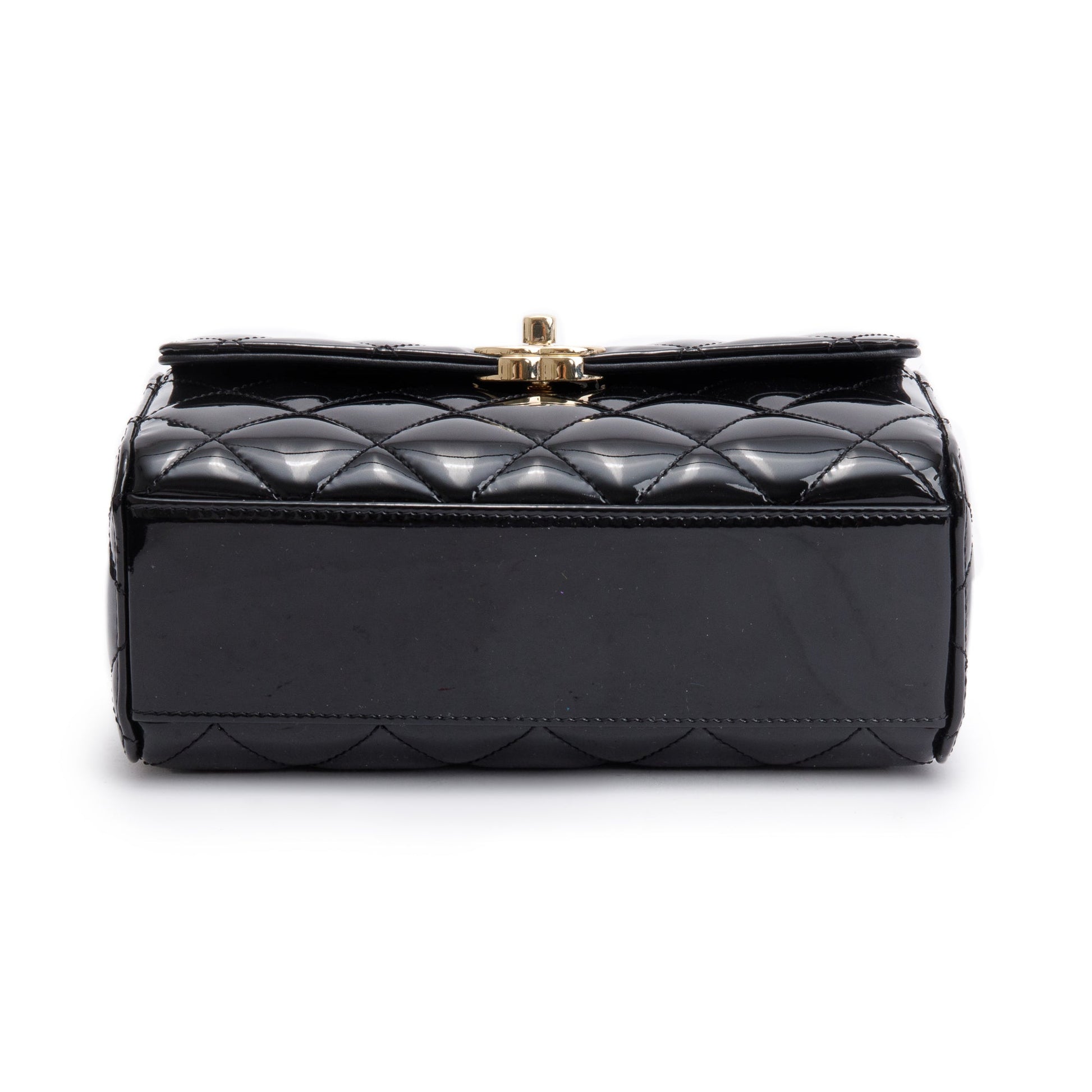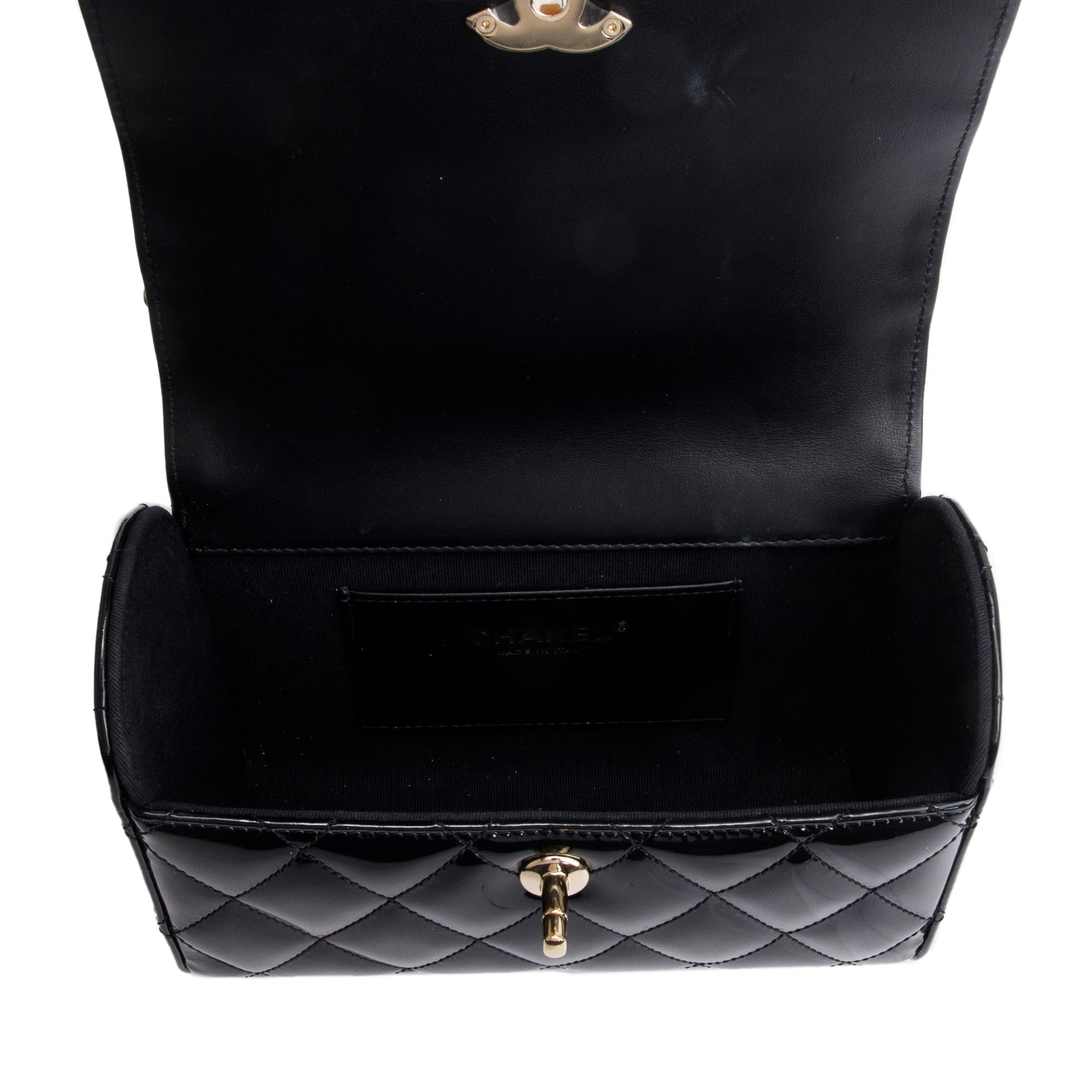 Chanel 2022 Black Quilted Patent Leather Mini Top Handle Flap Bag w/ Receipt