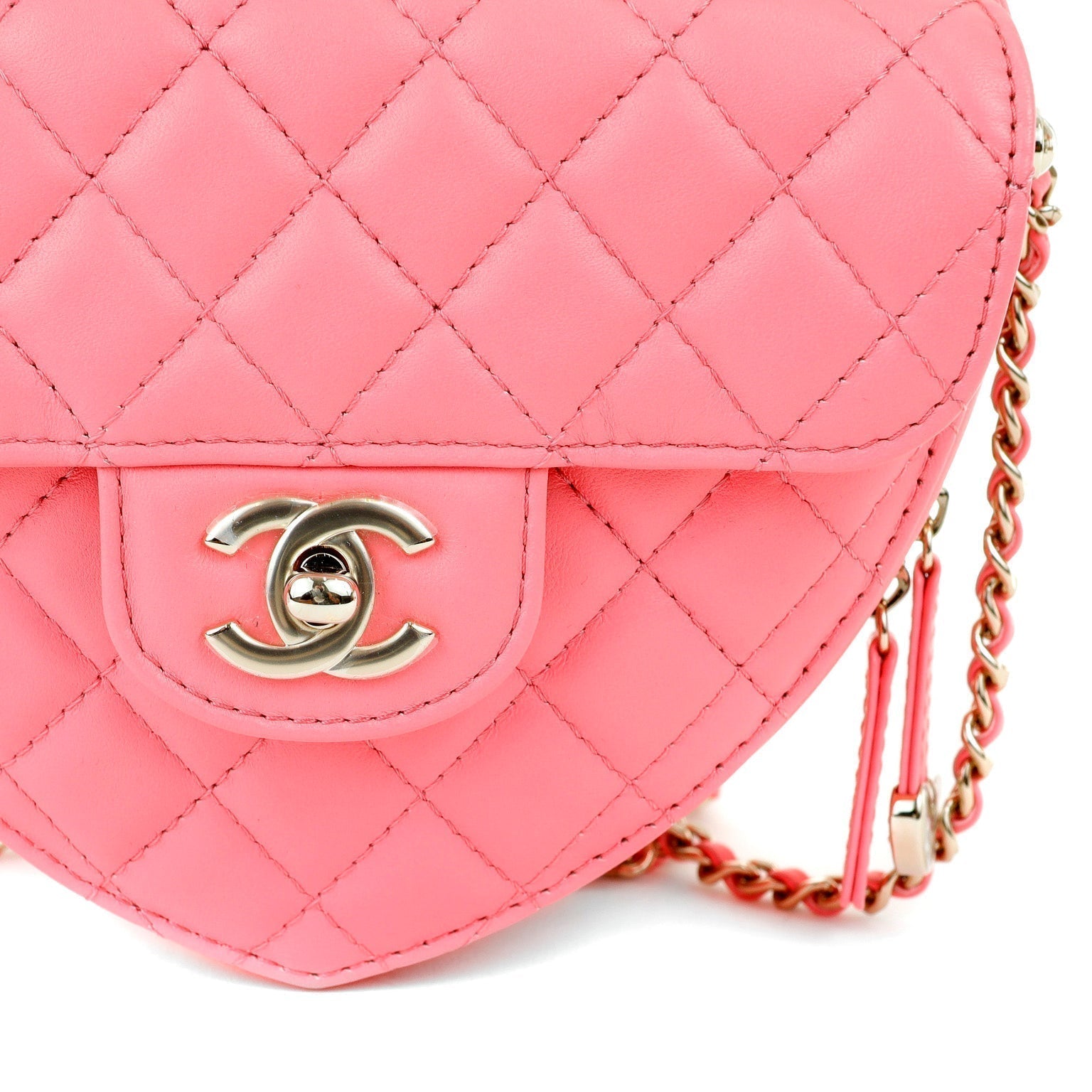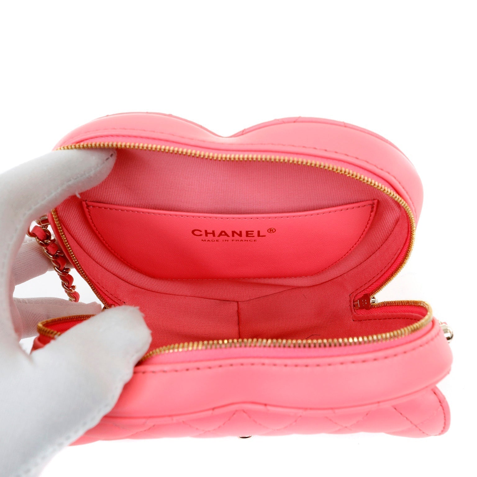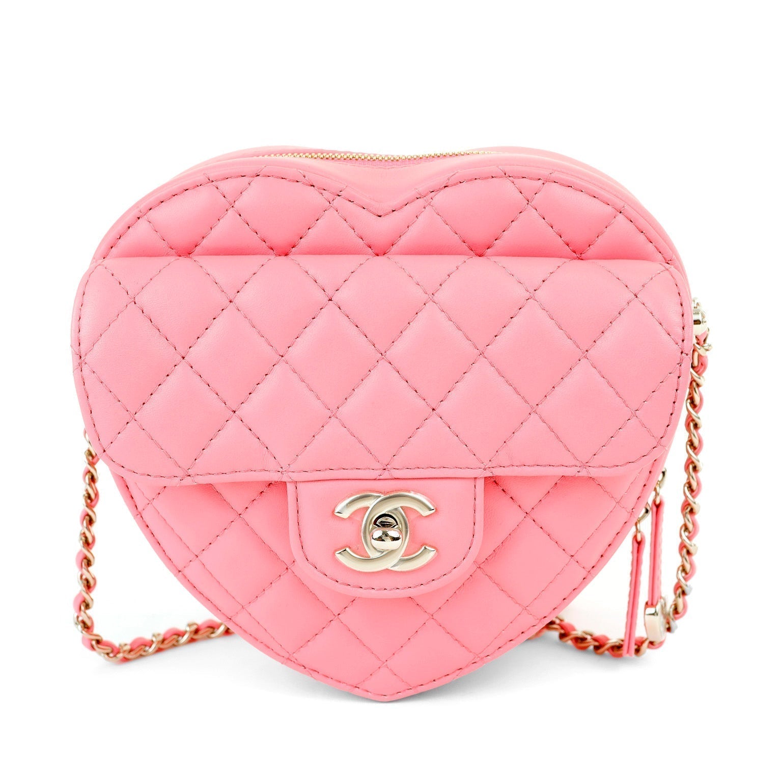Chanel 2022 Pink Lambskin Heart Bag w/ Gold Hardware