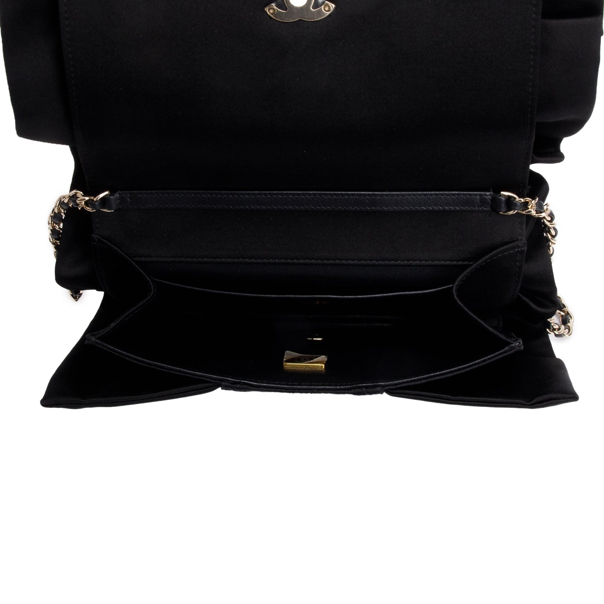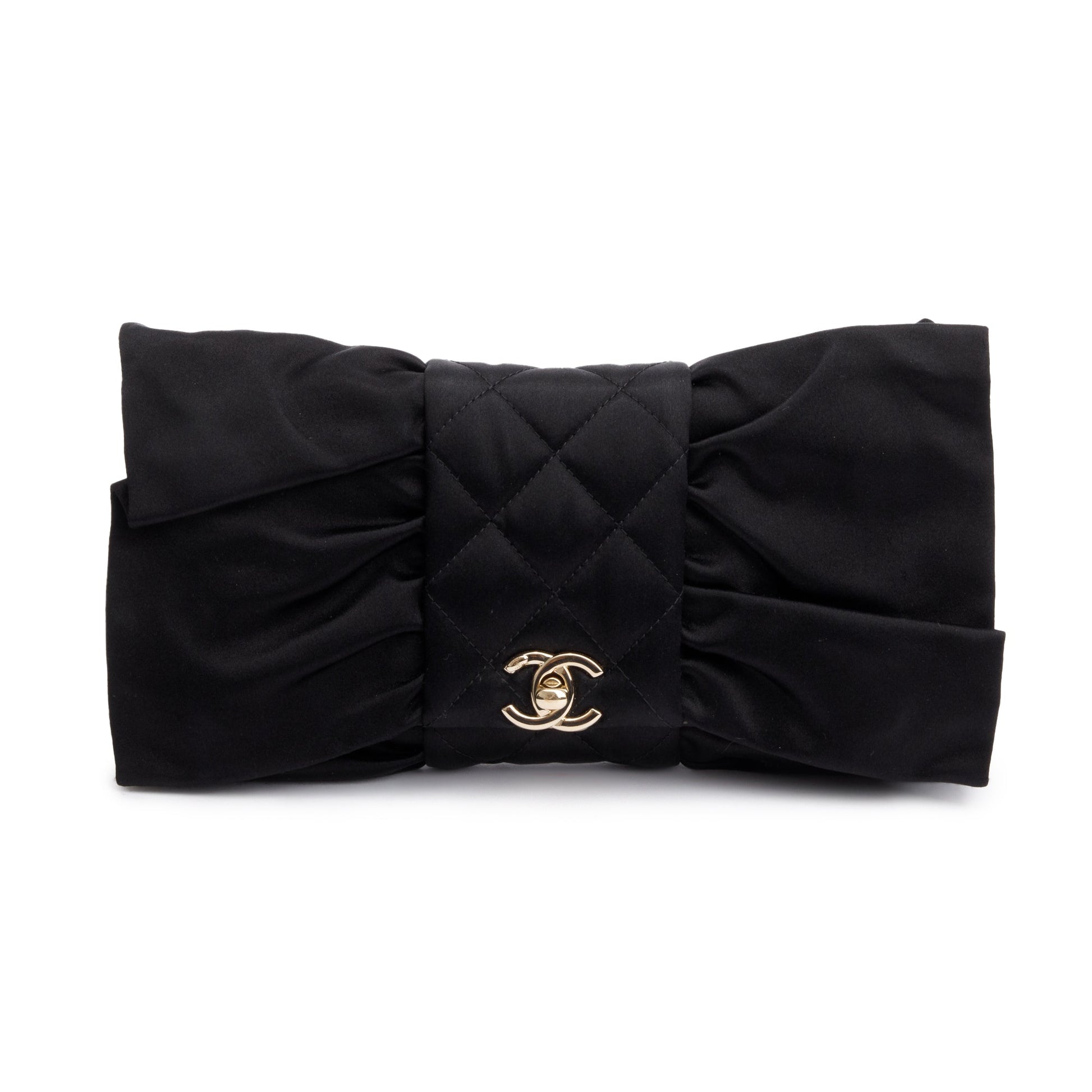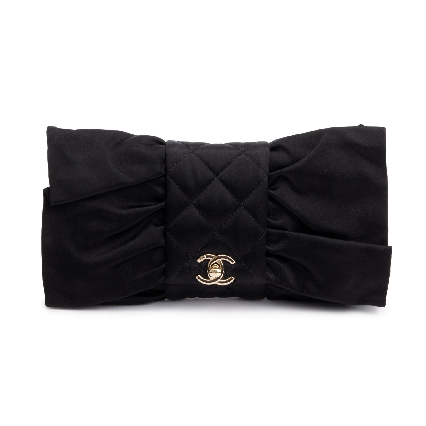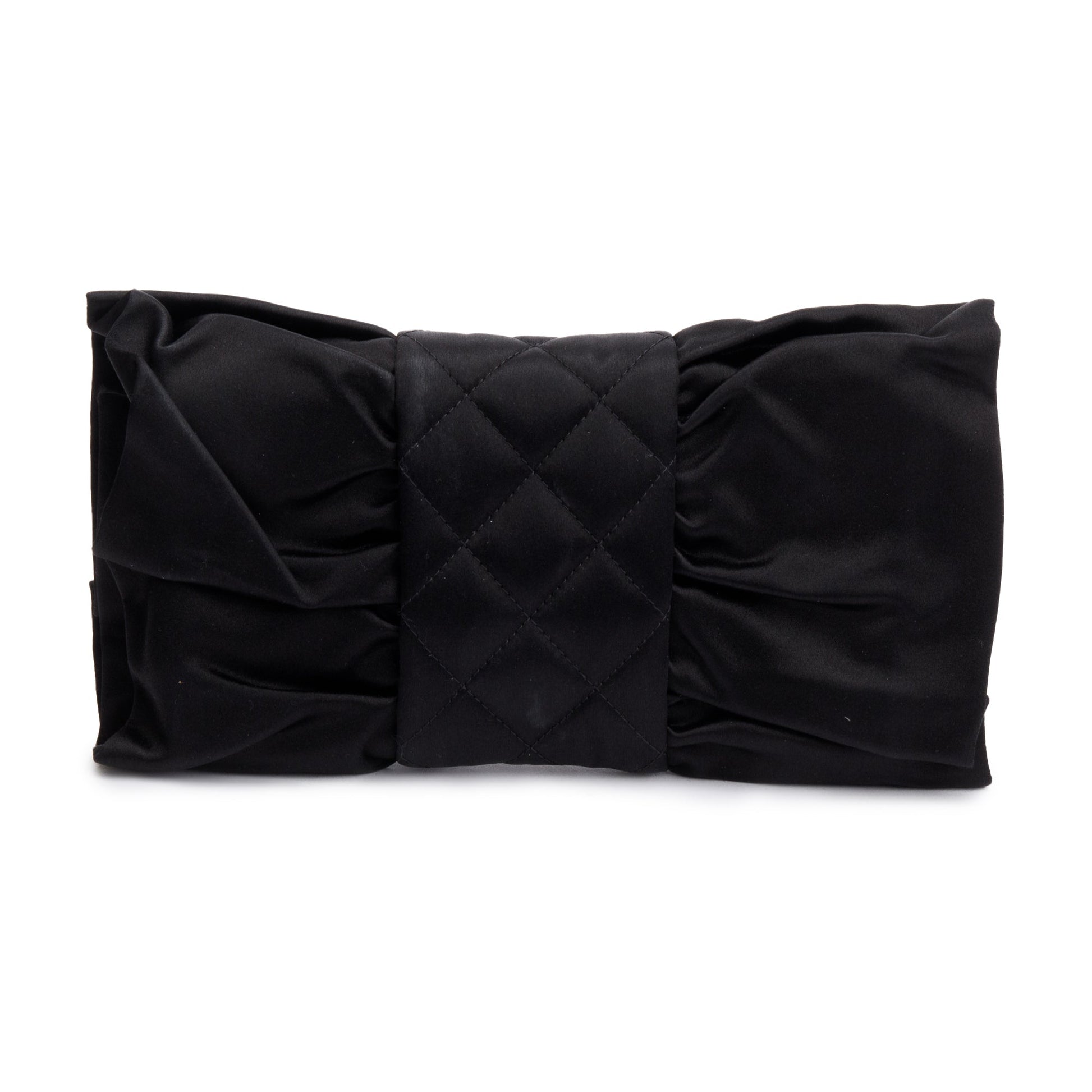 Chanel 2023 Black Quilted Satin Bow Clutch Crossbody