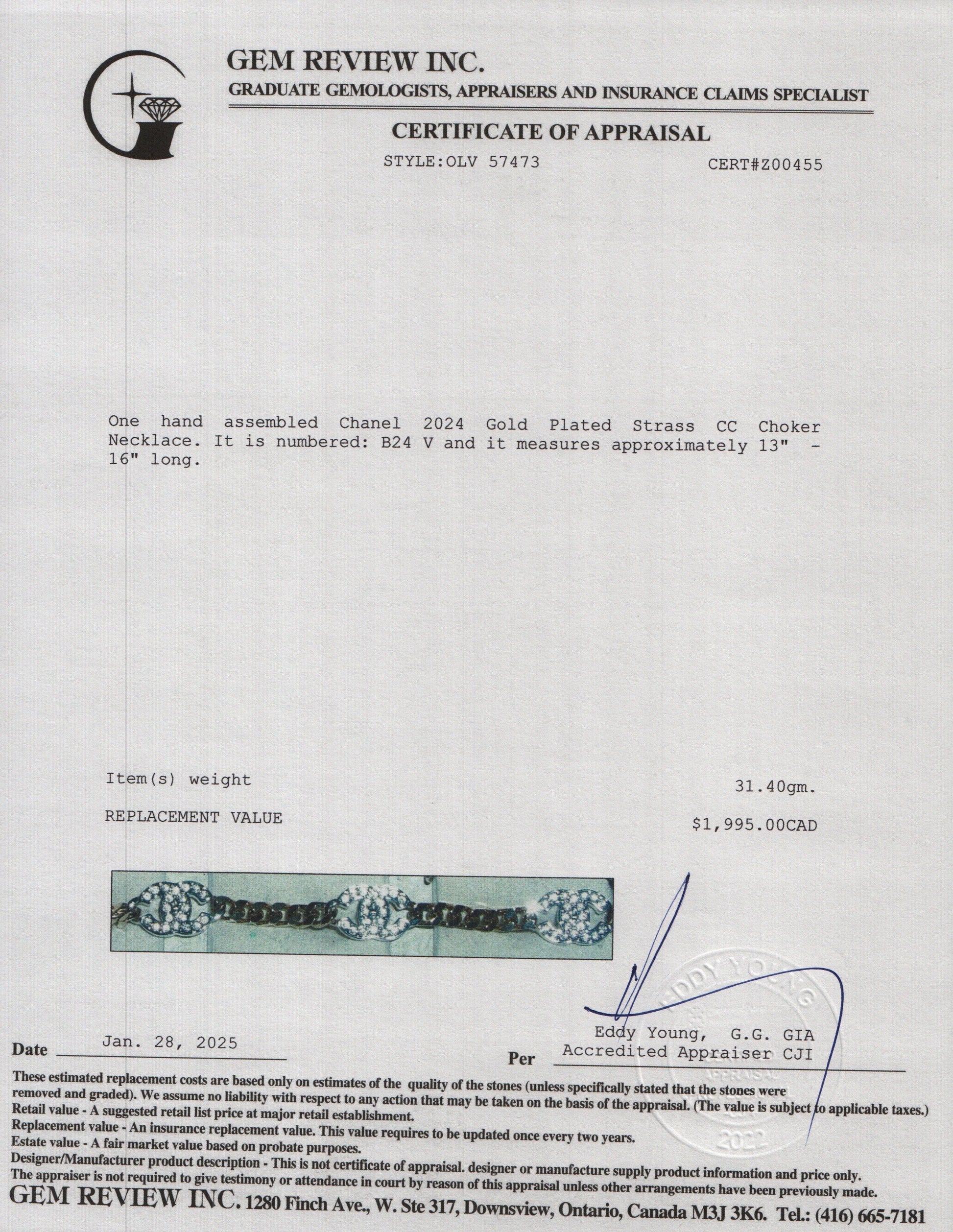 Chanel 2024 Gold Plated  Strass CC Choker Necklace w/ Box