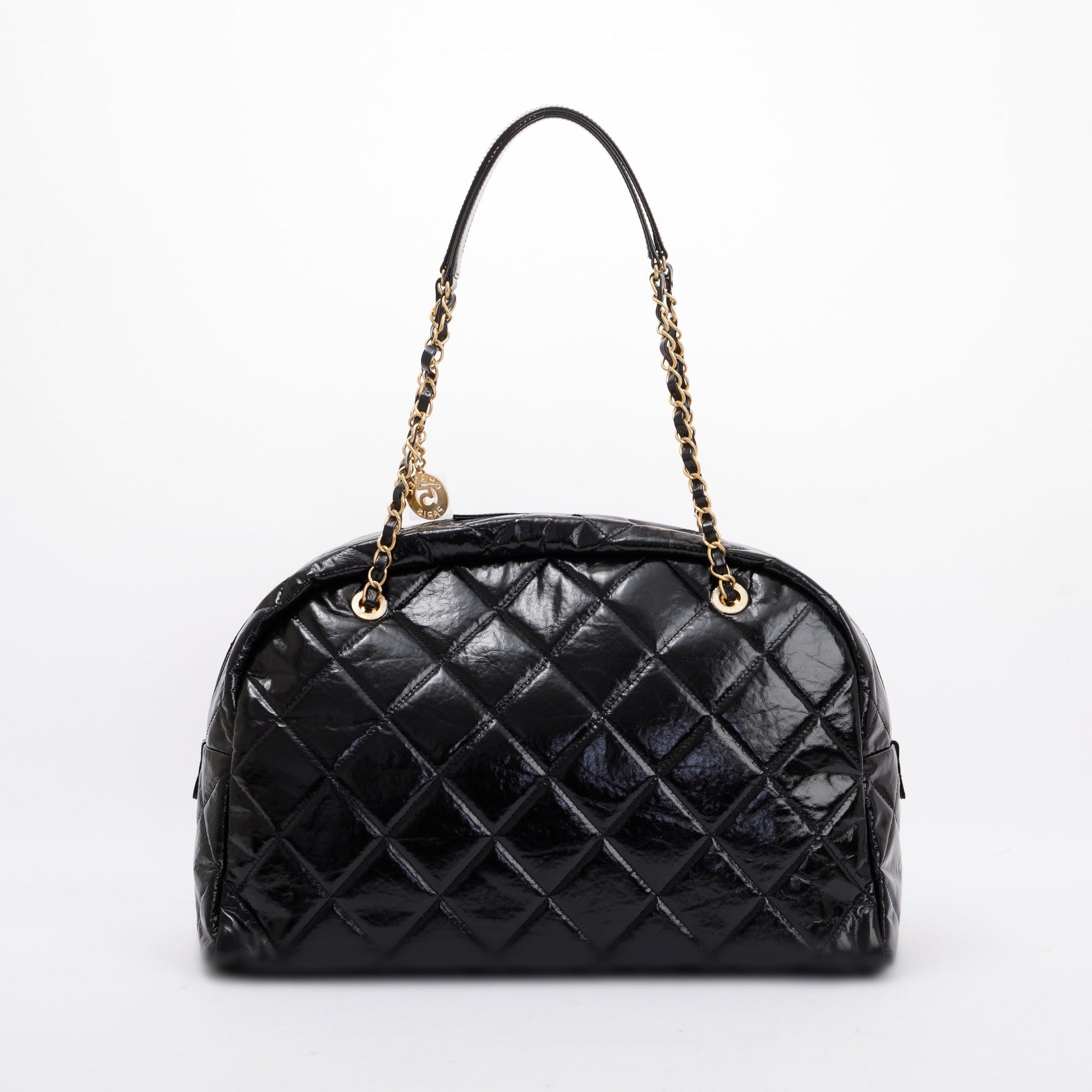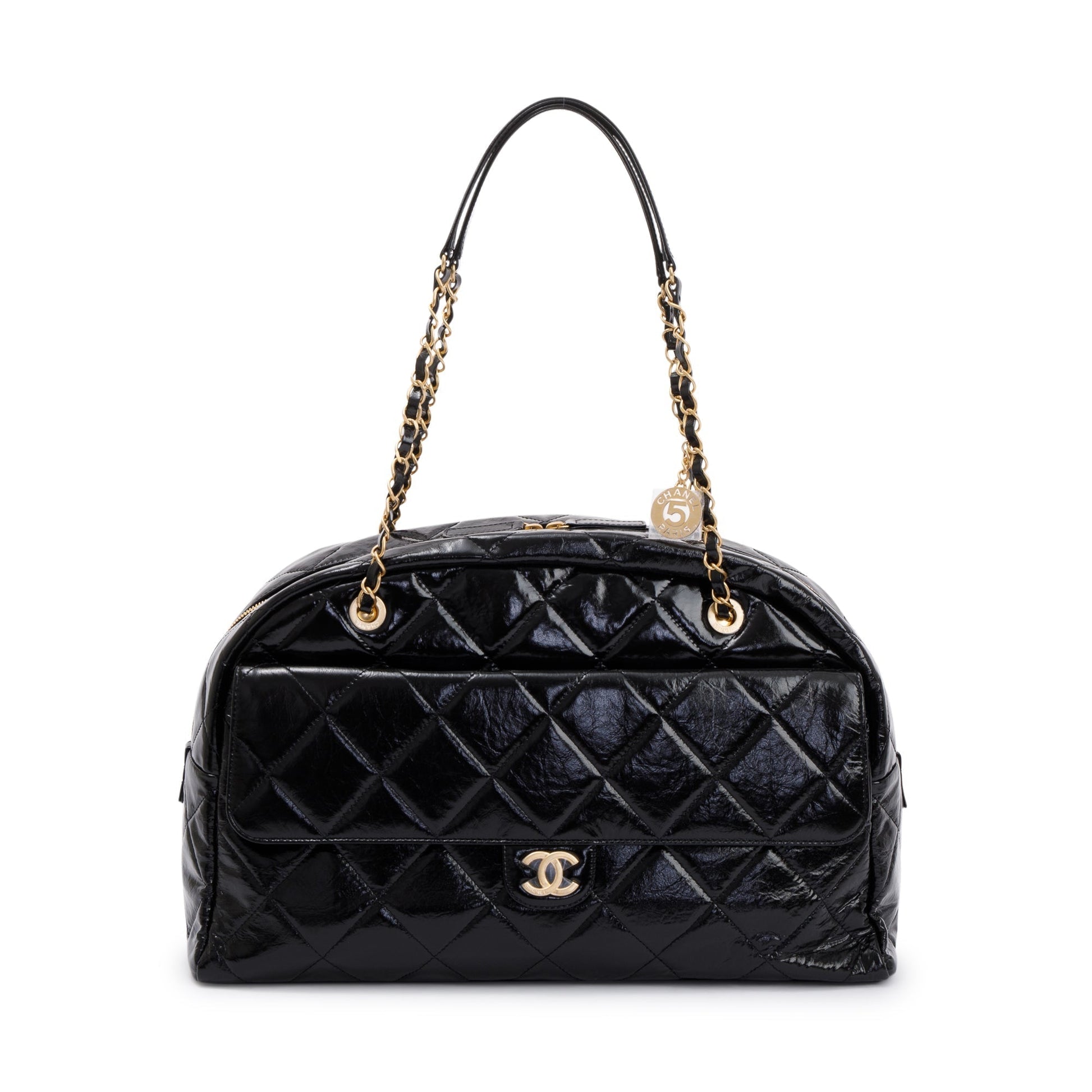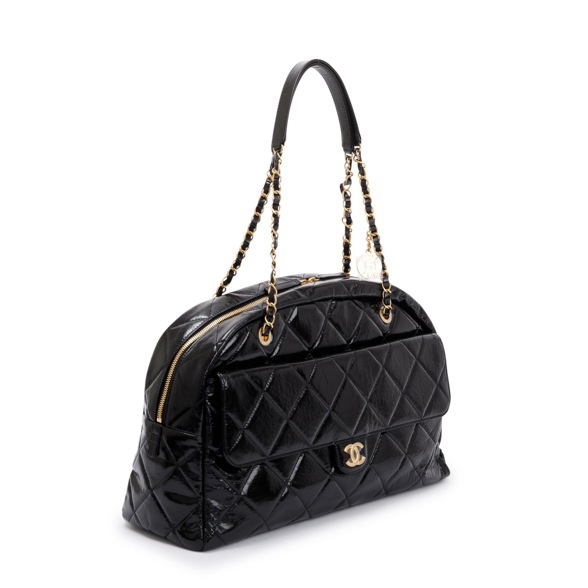 Chanel 2023 Black Patent Leather Maxi Bowling Bag