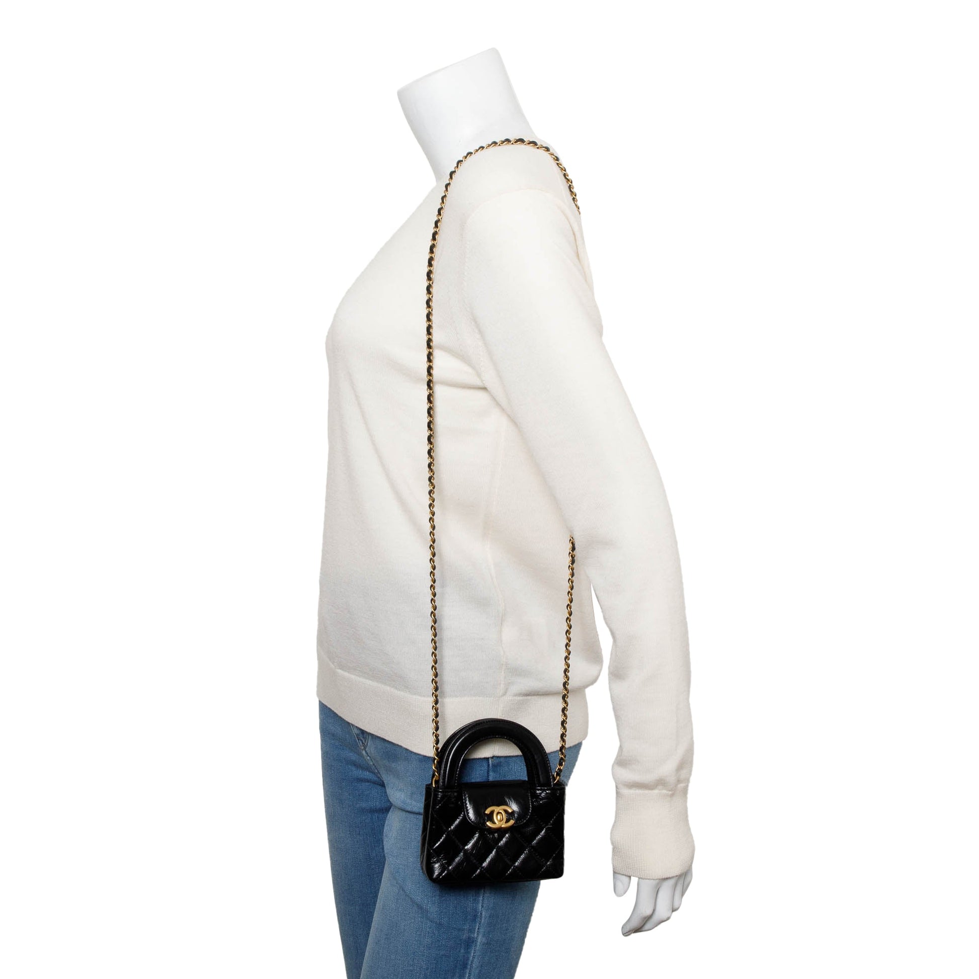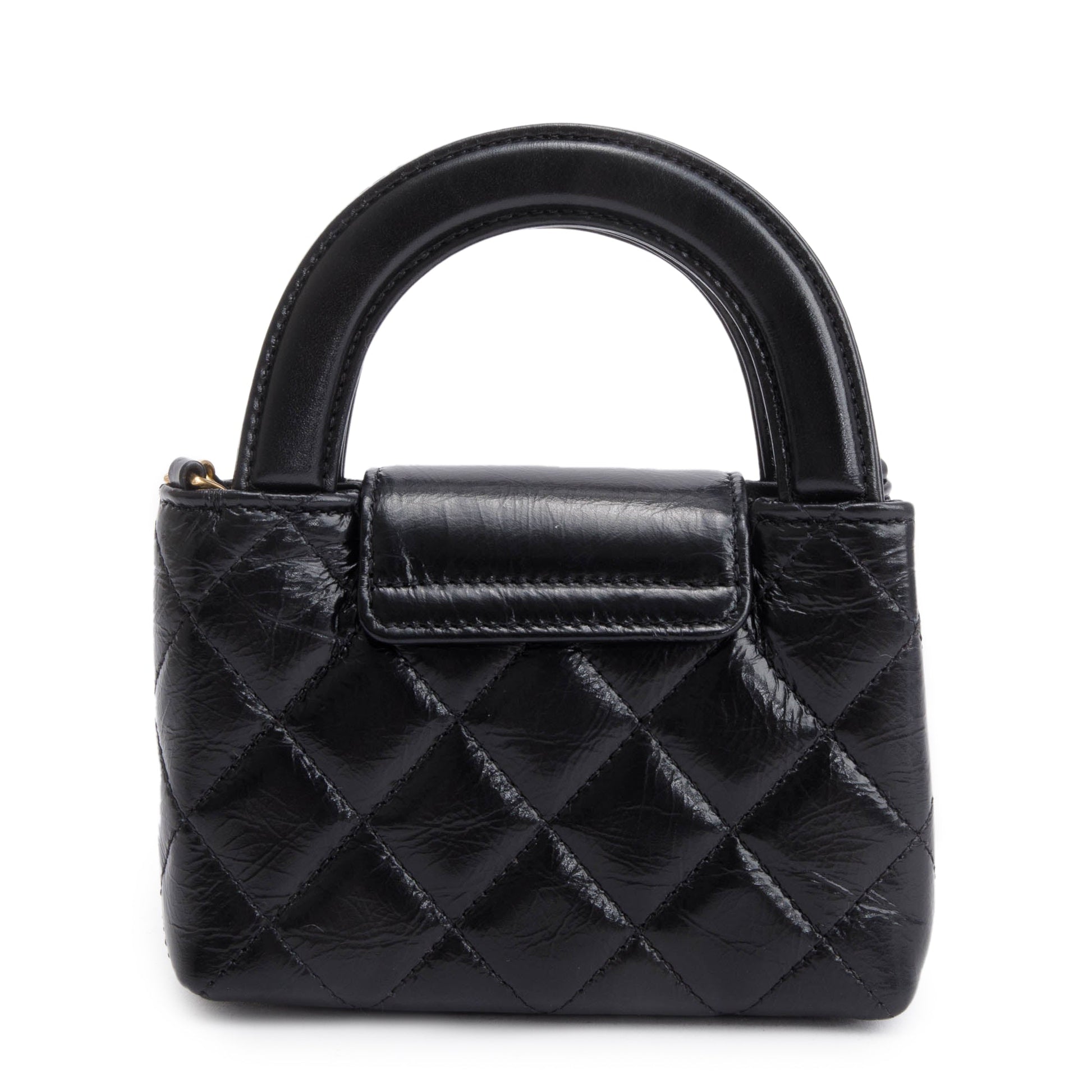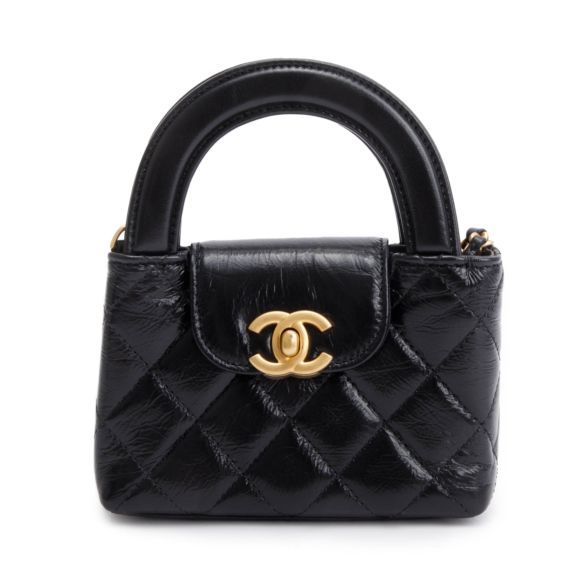 Chanel 2024 Black Shiny Aged Calfskin Leather Nano Kelly Crossbody Bag w/ Box & Receipt