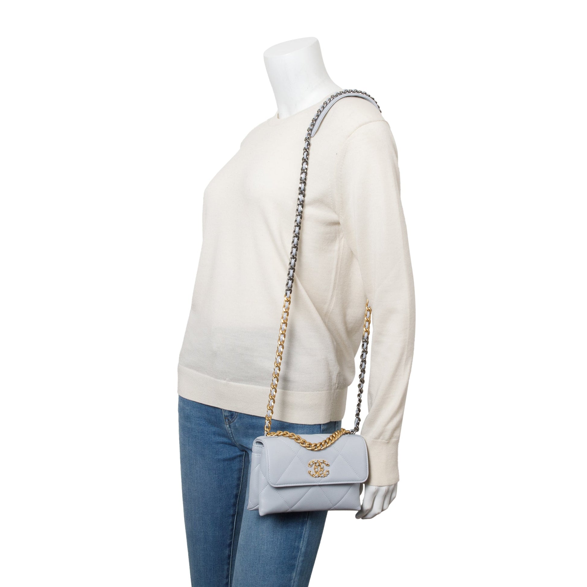 Chanel 2024 Grey Lambskin Leather 19 Wallet On Chain w/ Box & Receipt